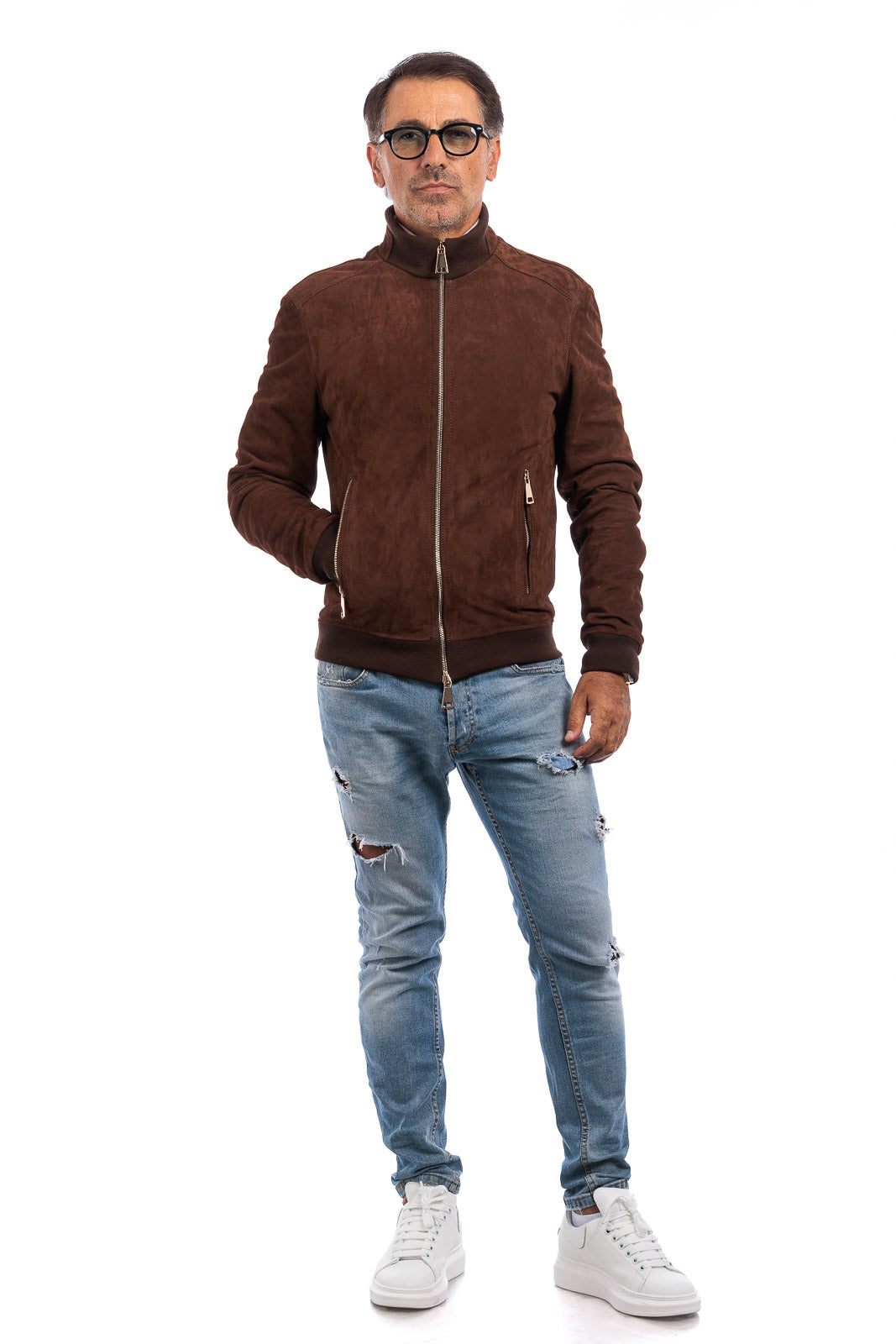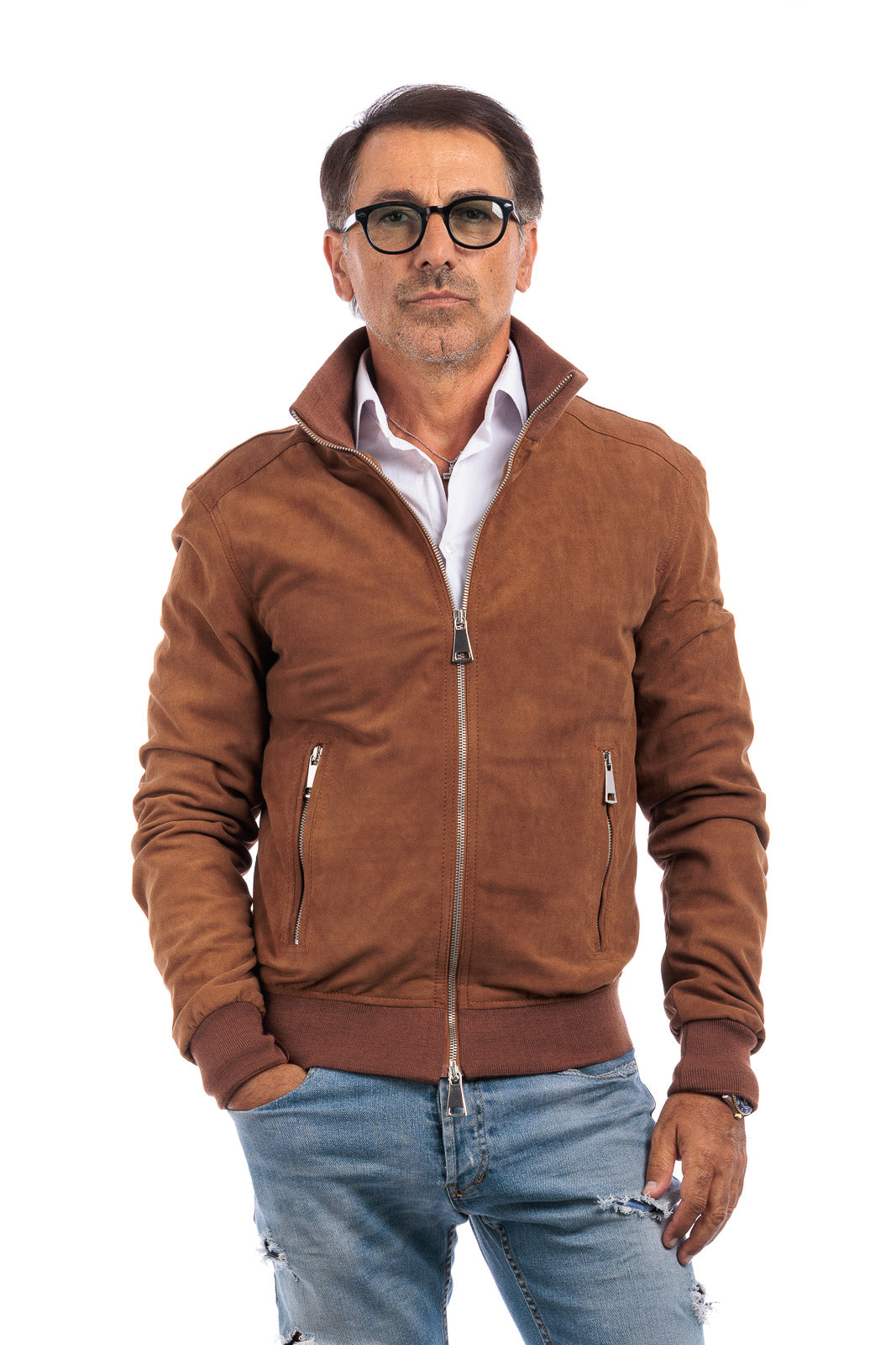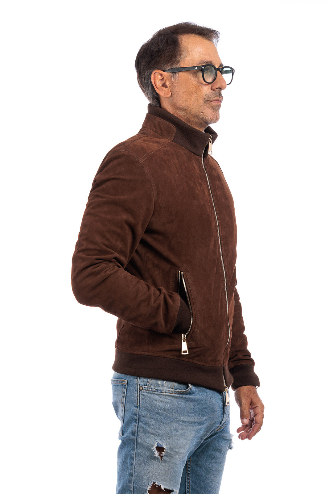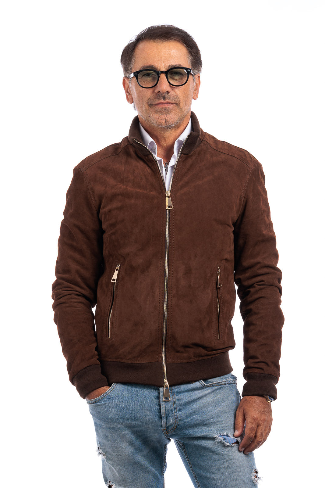 Bomber Gold Bunn marrone in camoscio di renna con zip