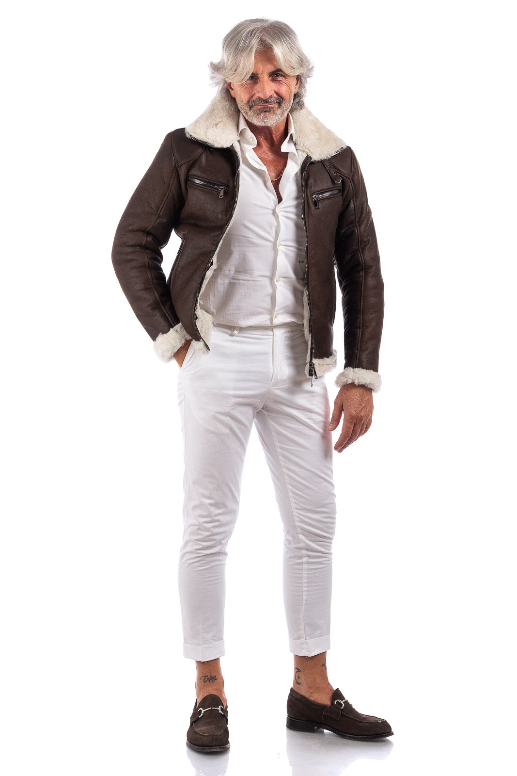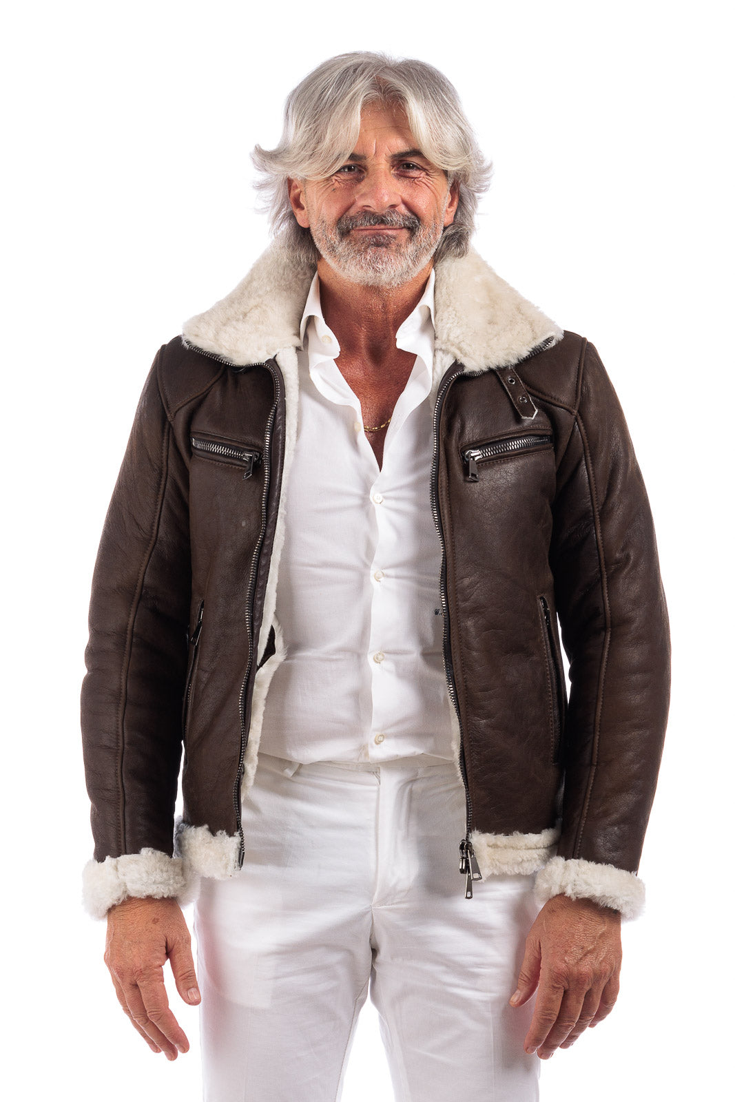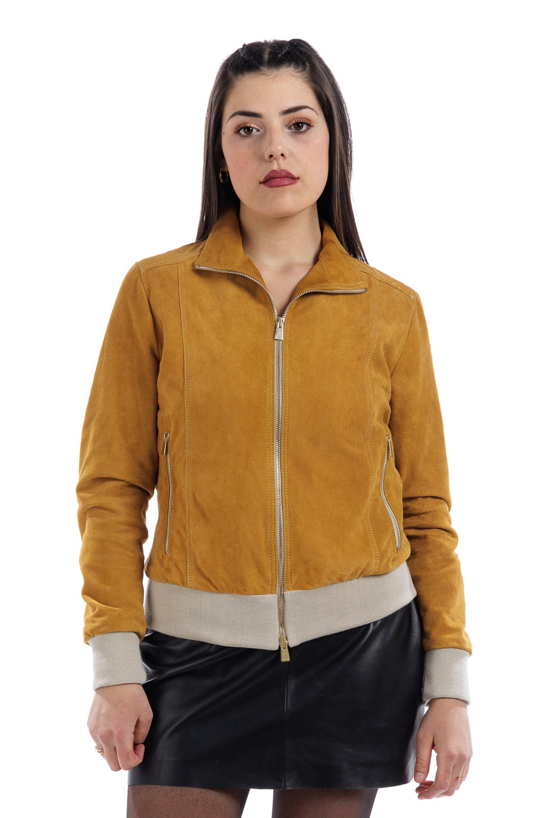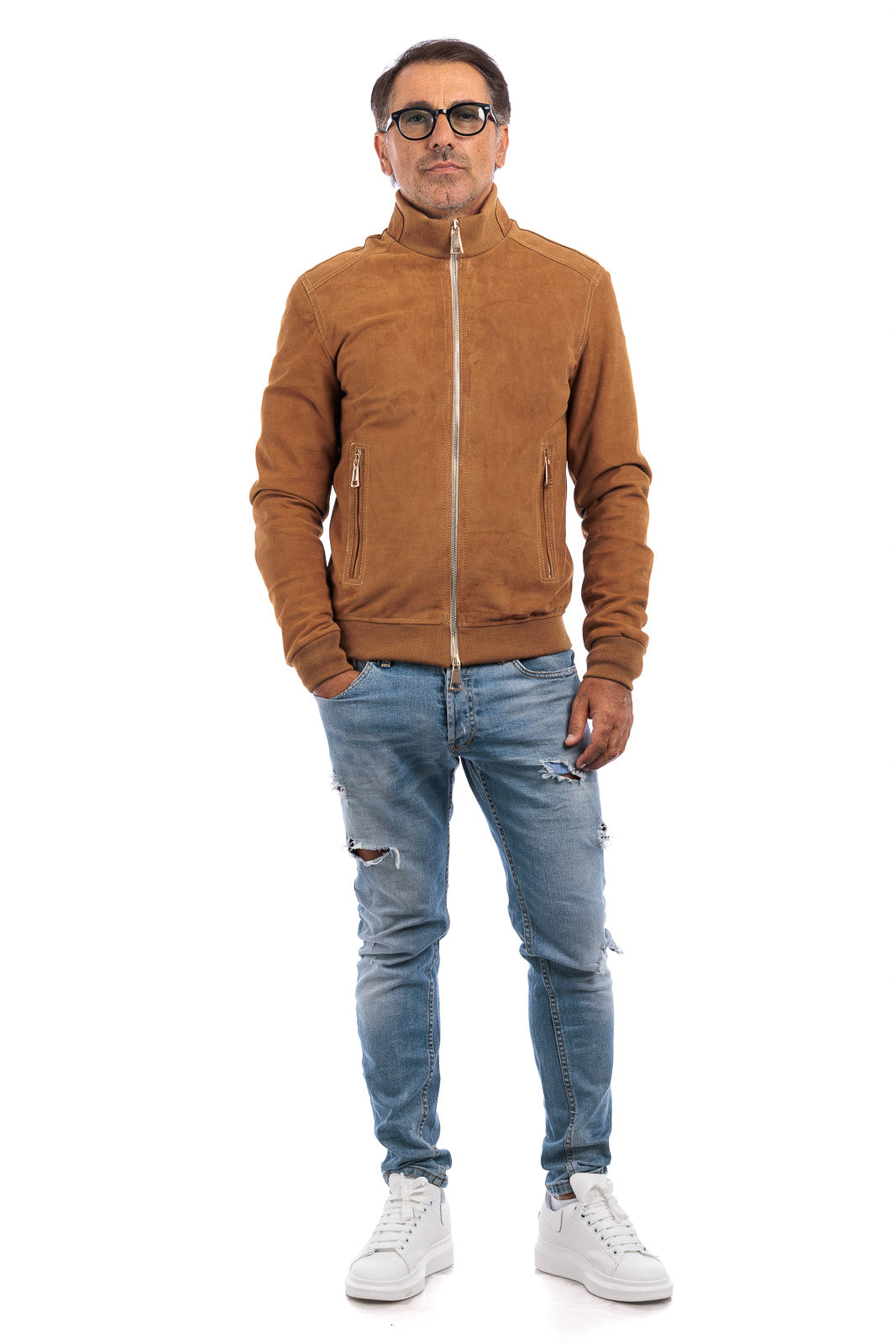 Bomber Gold Bunn marrone in camoscio di renna con zip
