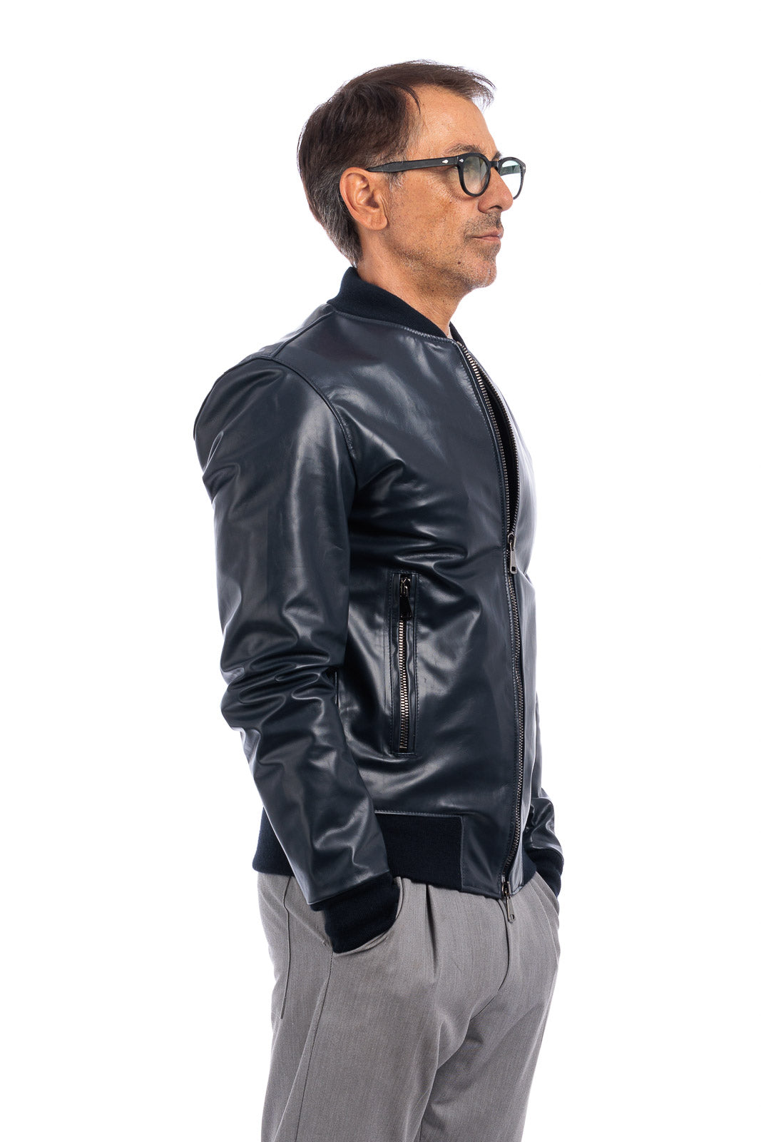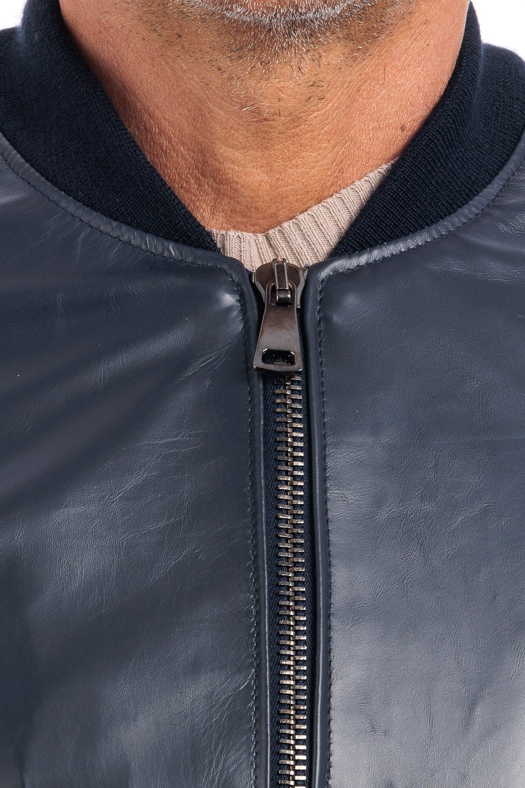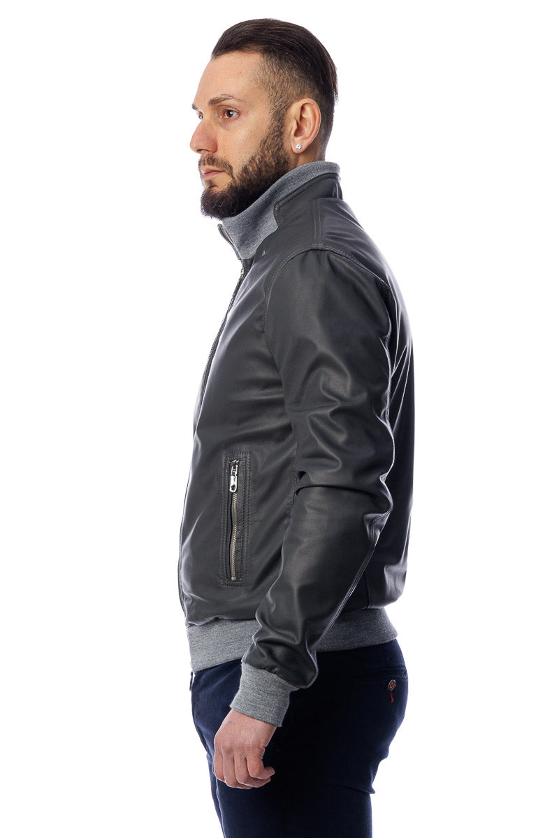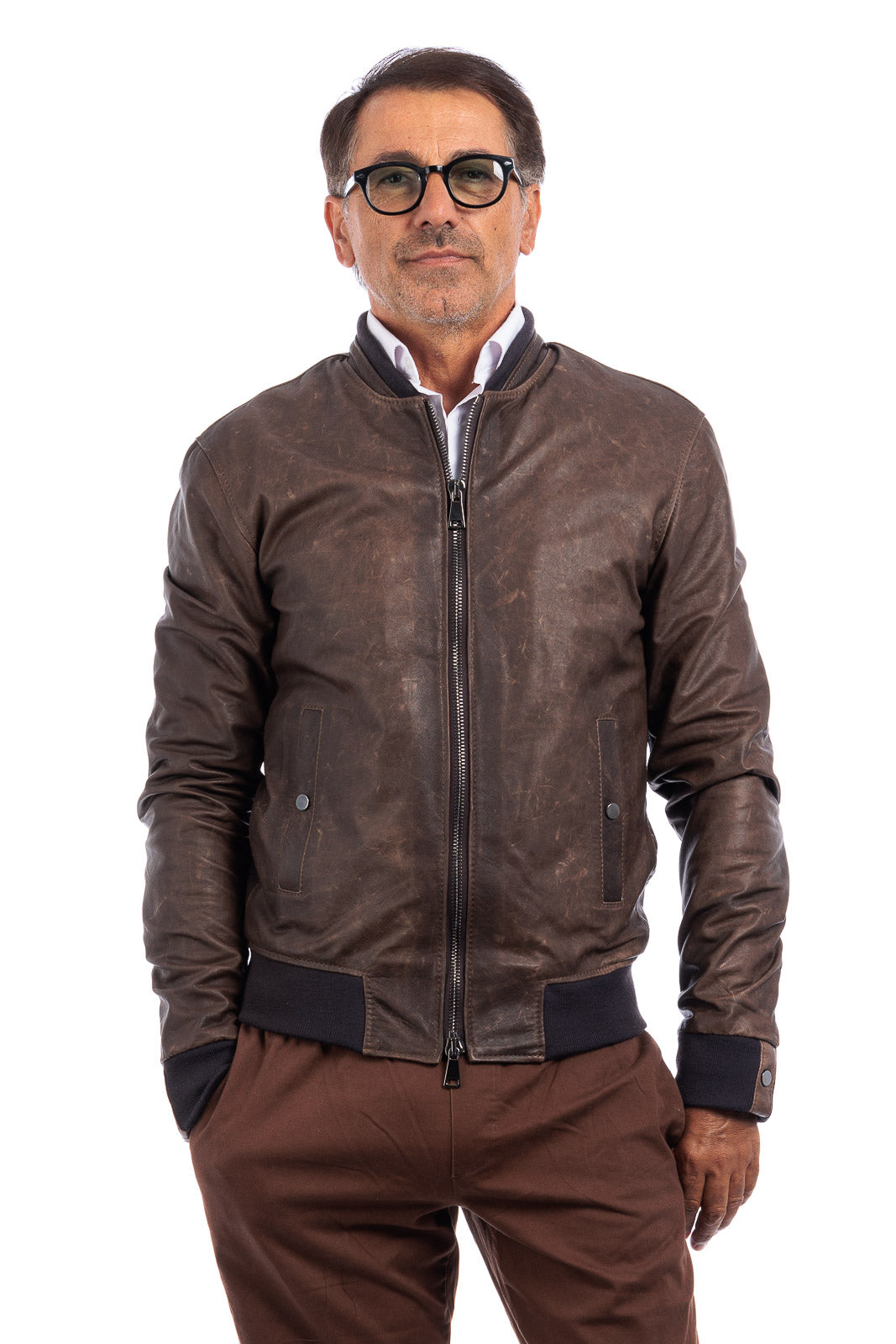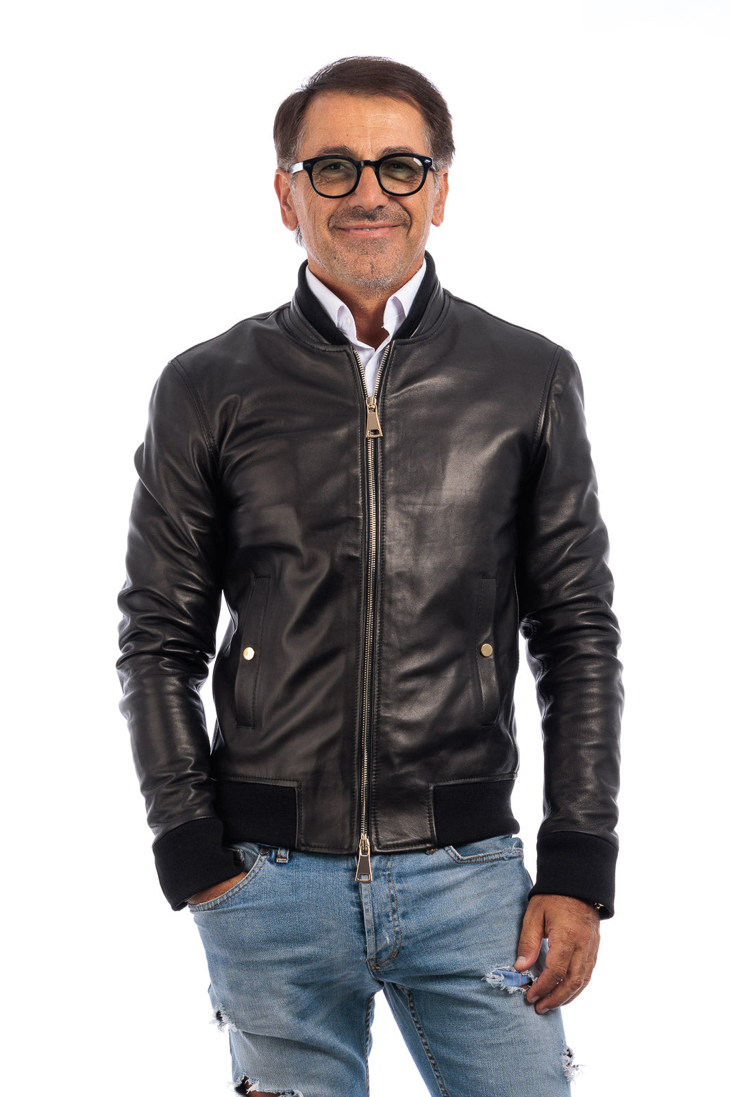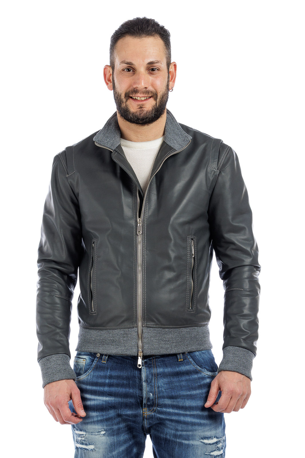 Bomber in pelle uomo con bottoni e zip VAST elasticizzato testa di moro