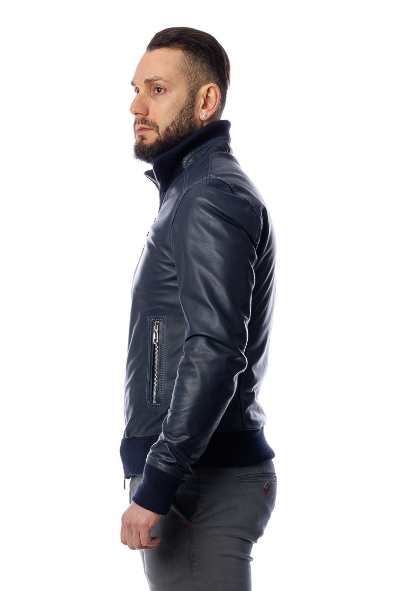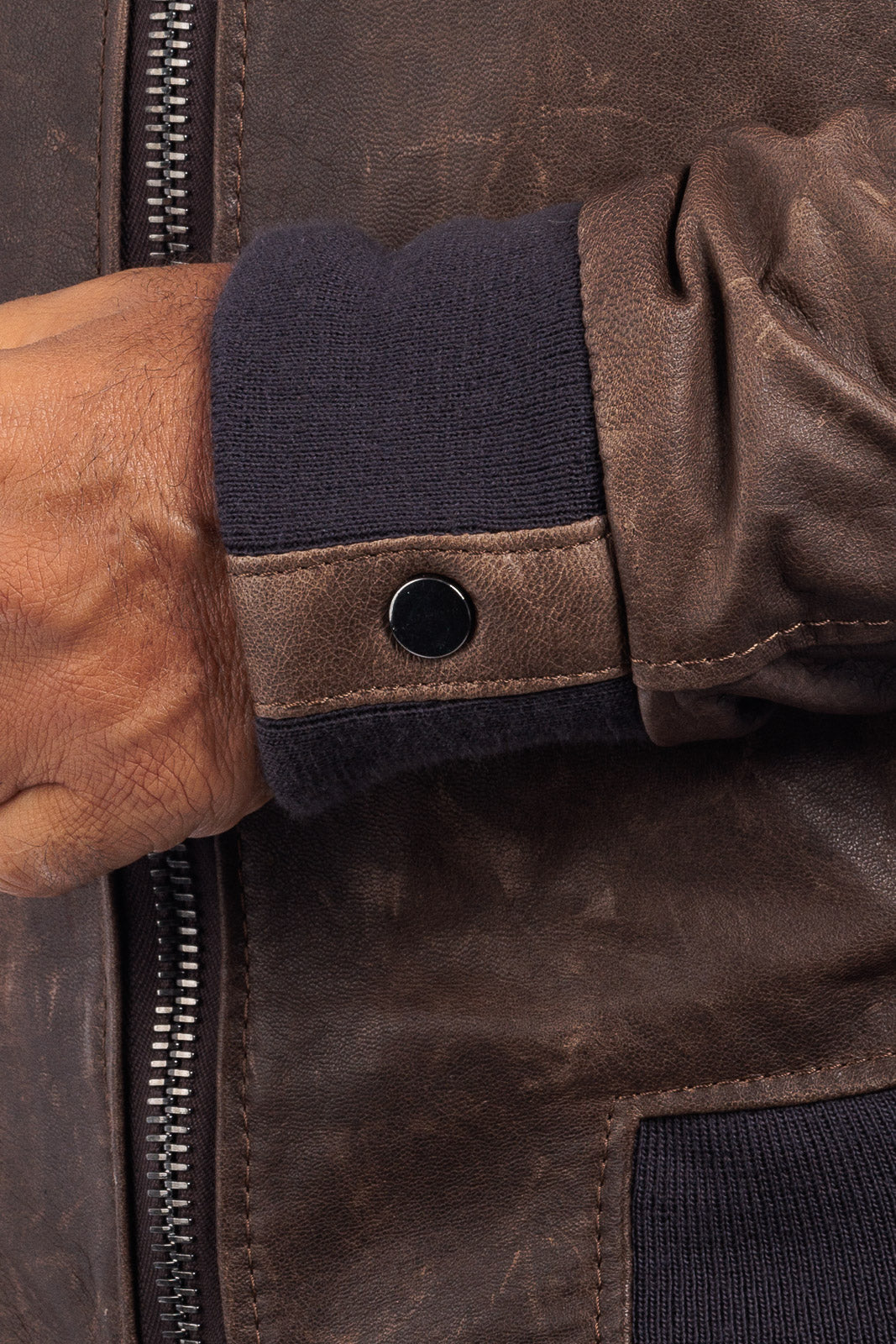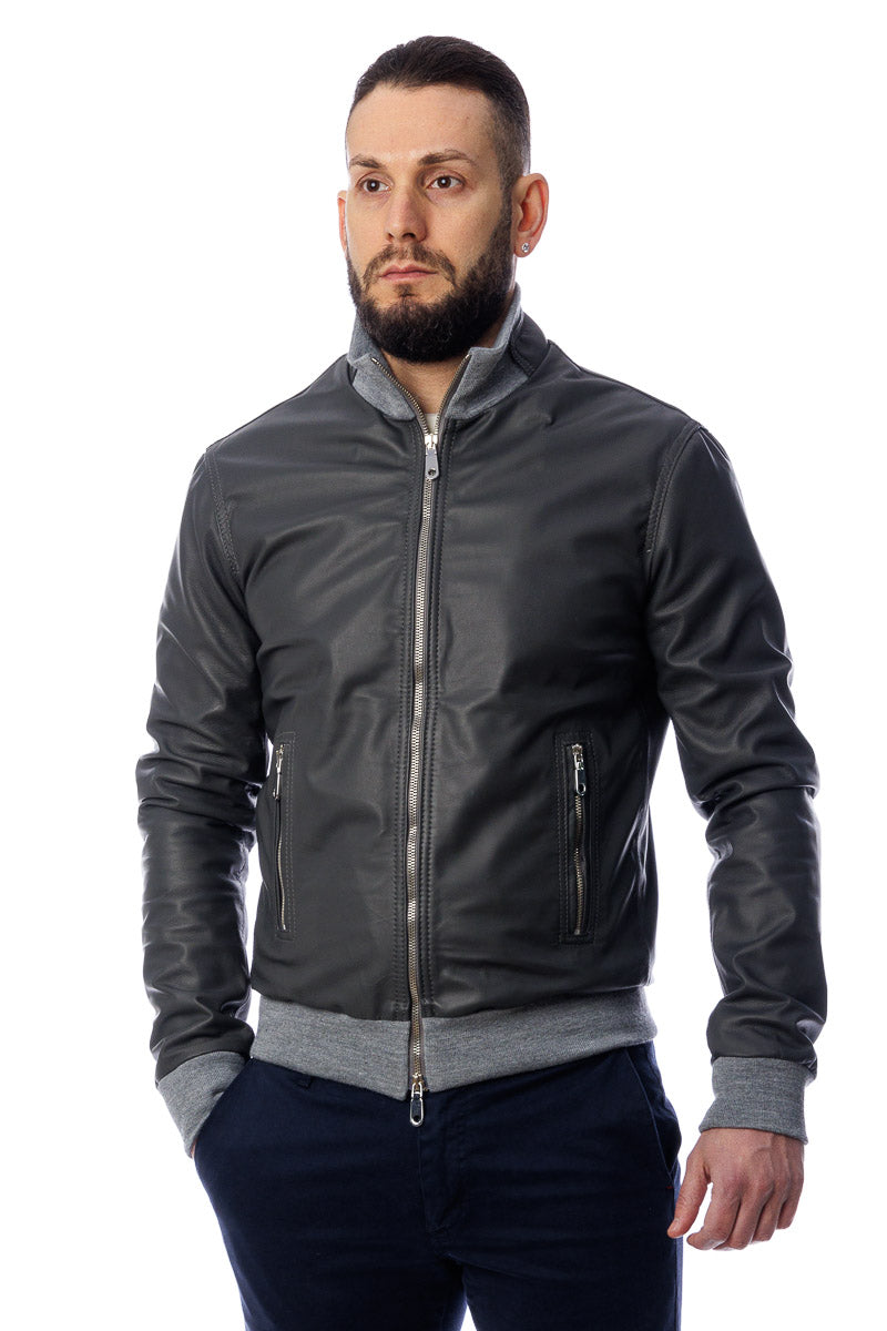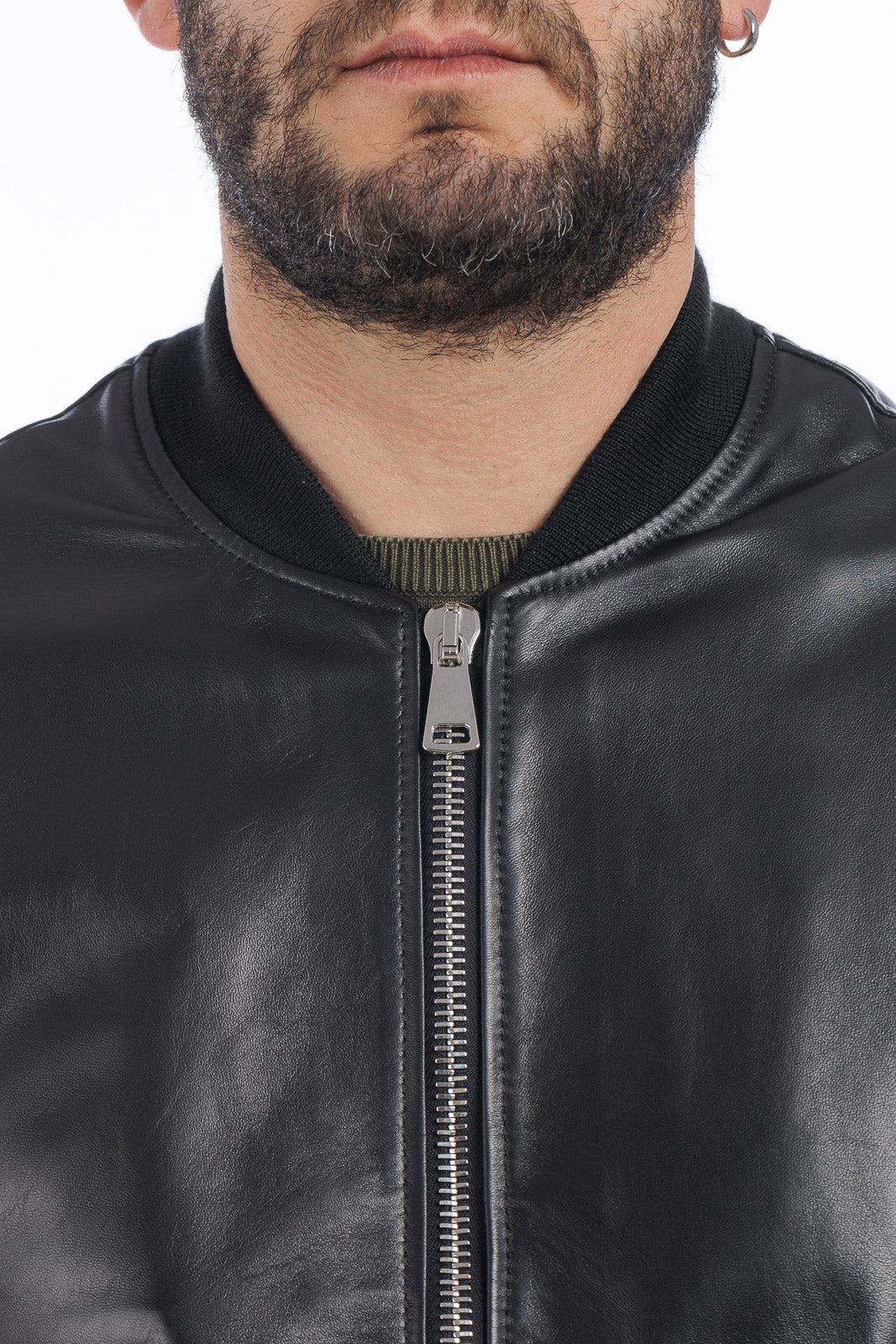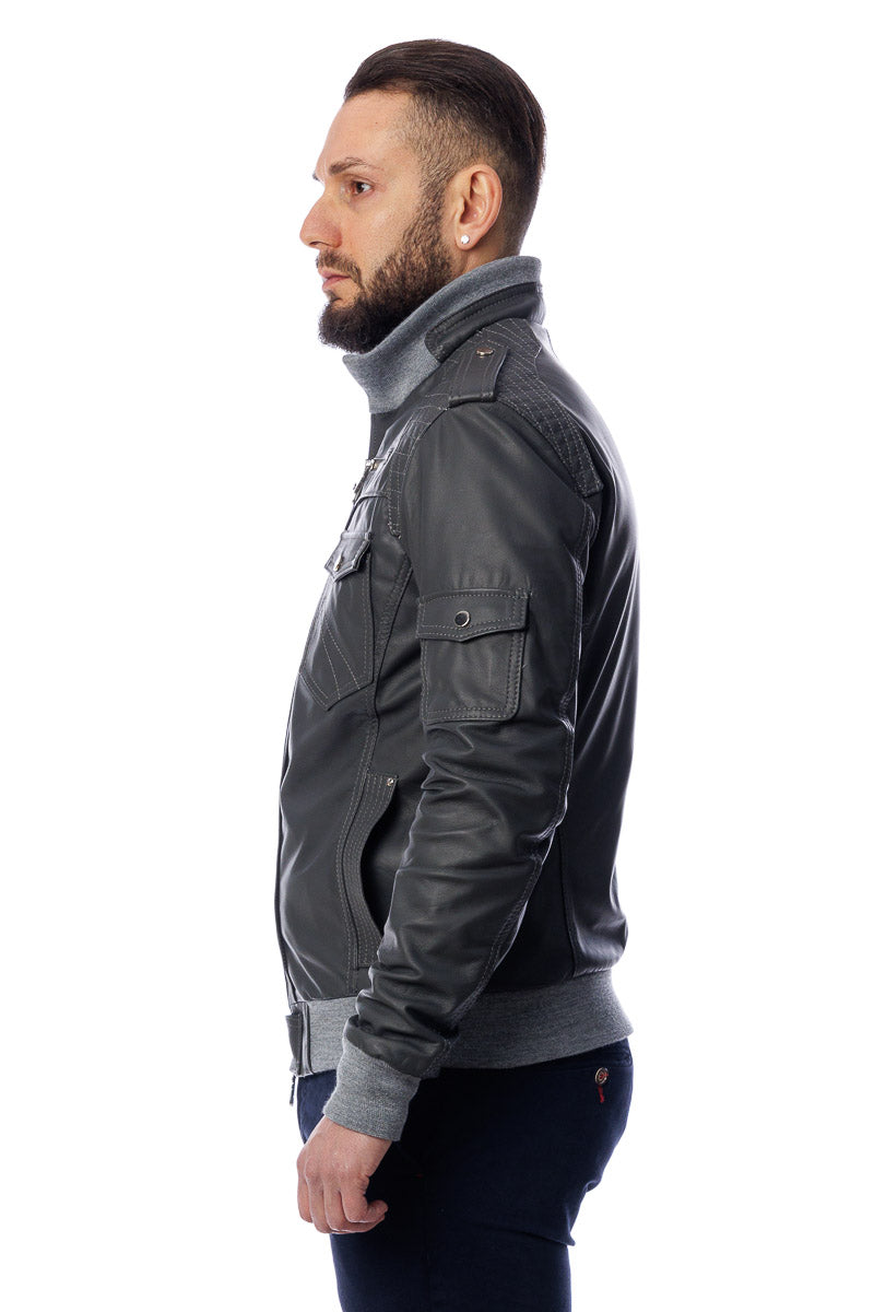 Bomber in pelle uomo con bottoni e zip VAST elasticizzato testa di moro