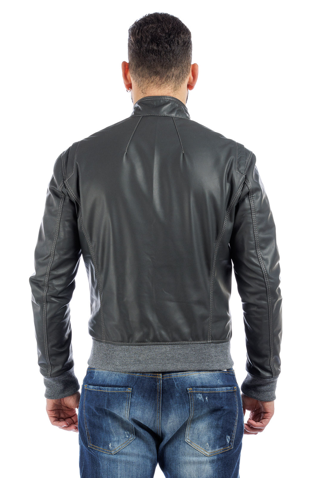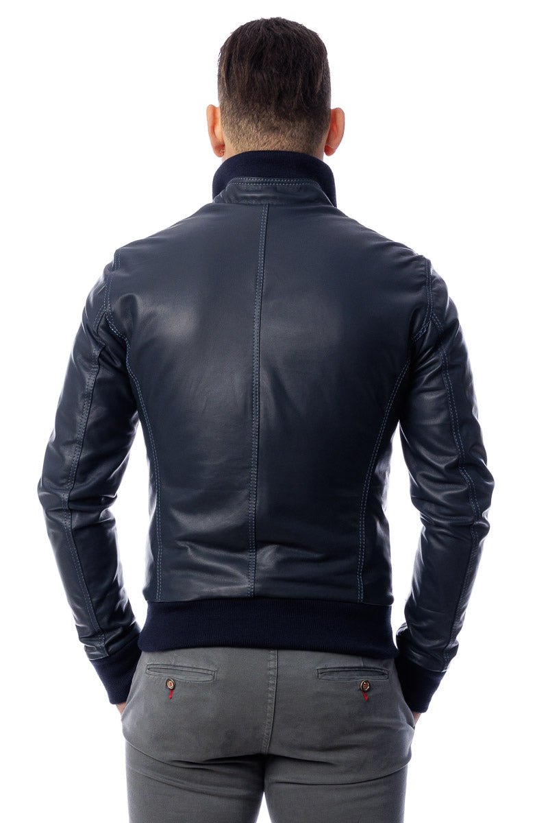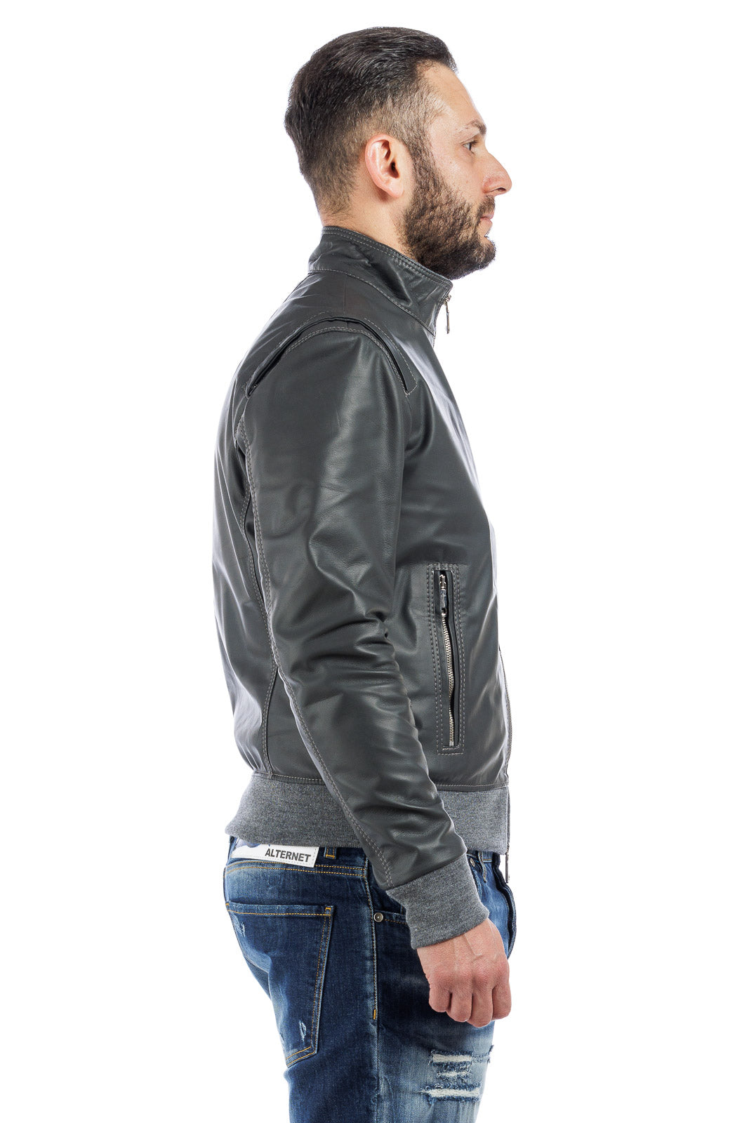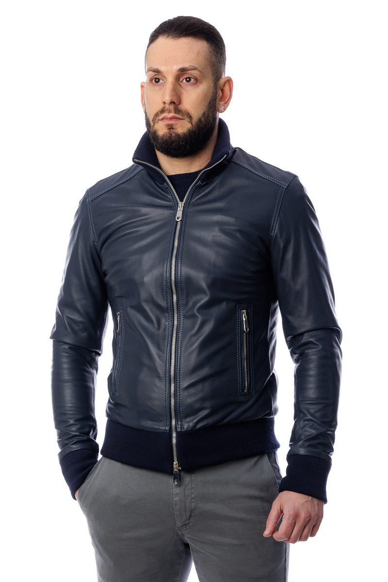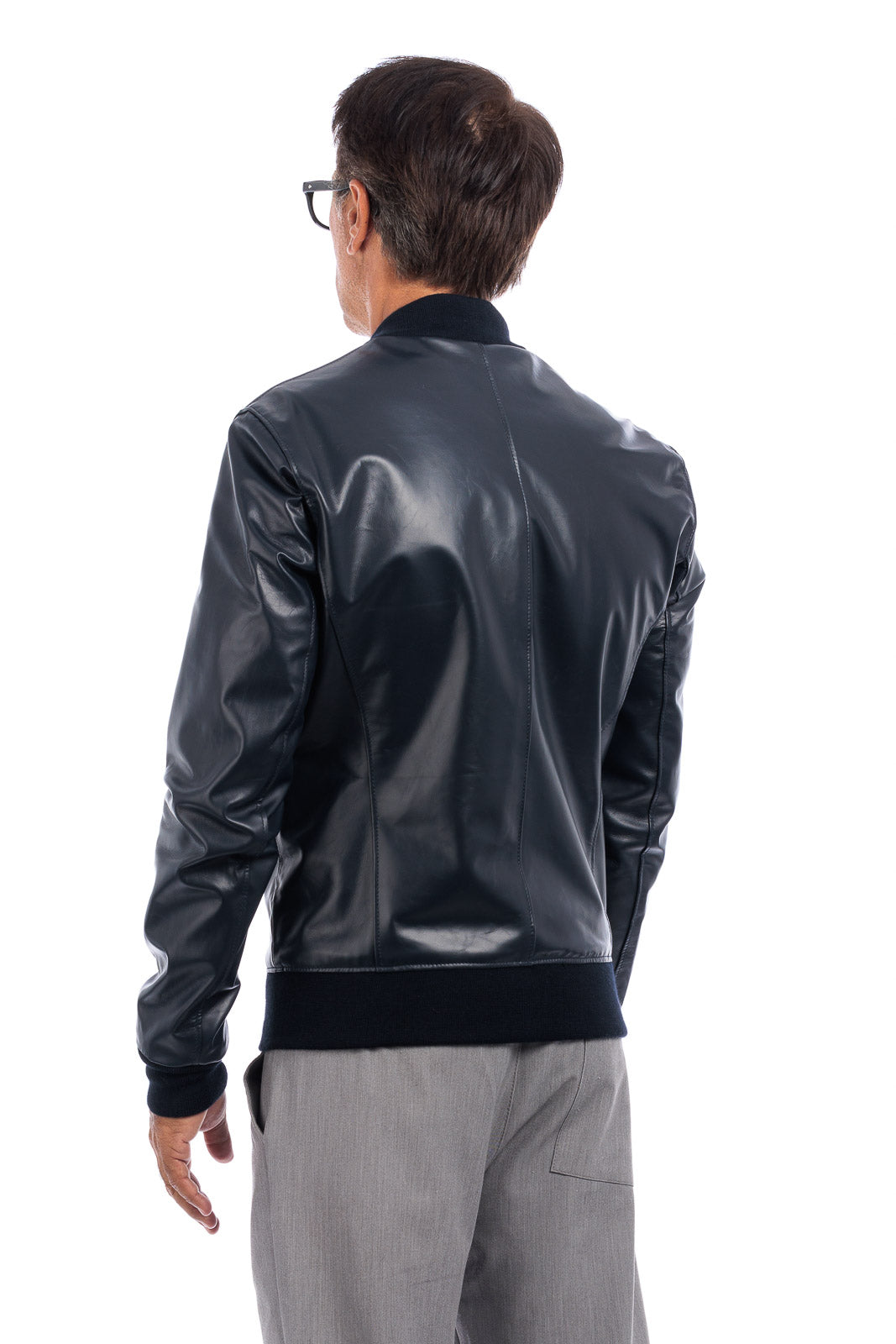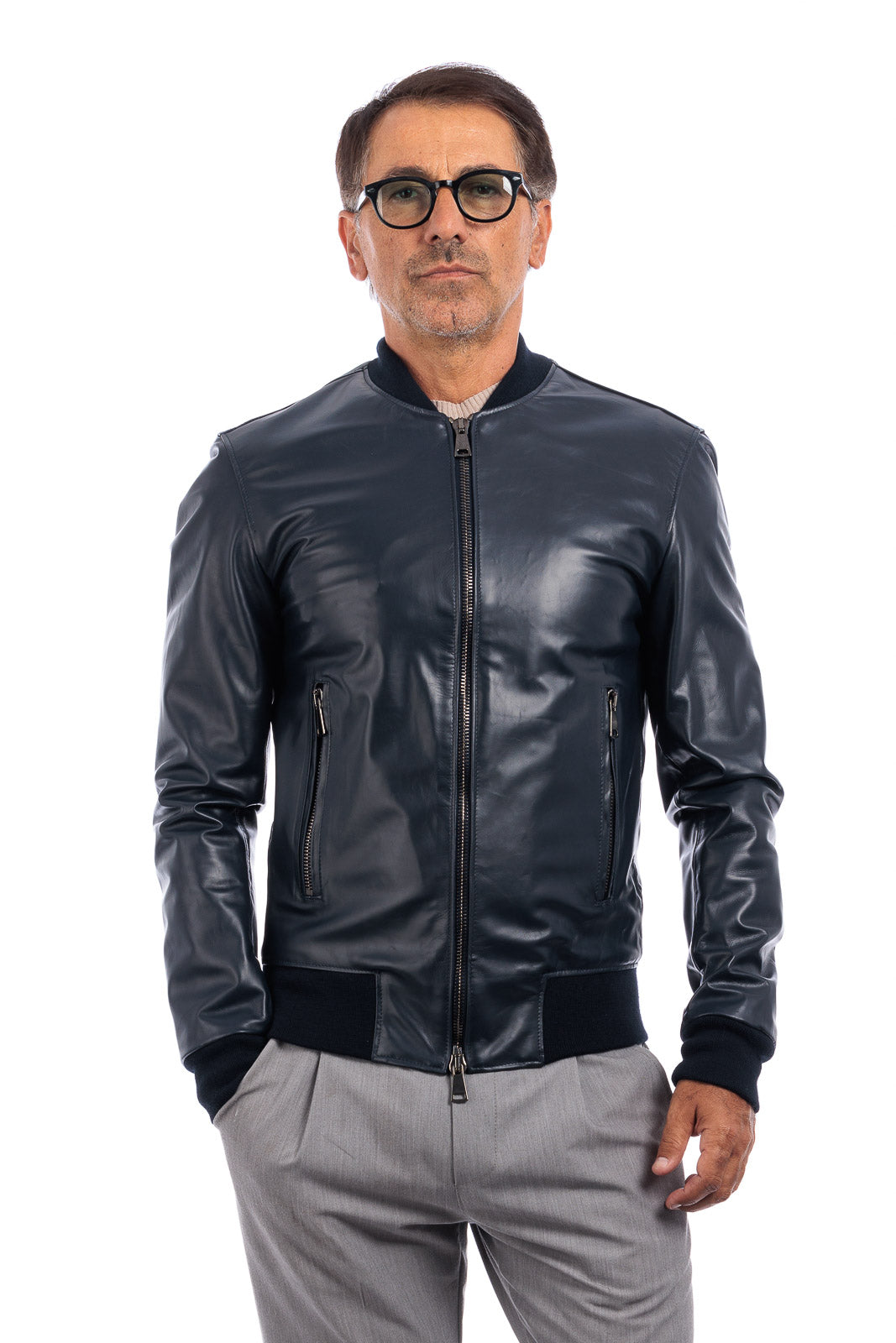 Bomber in pelle uomo con bottoni e zip VAST elasticizzato testa di moro