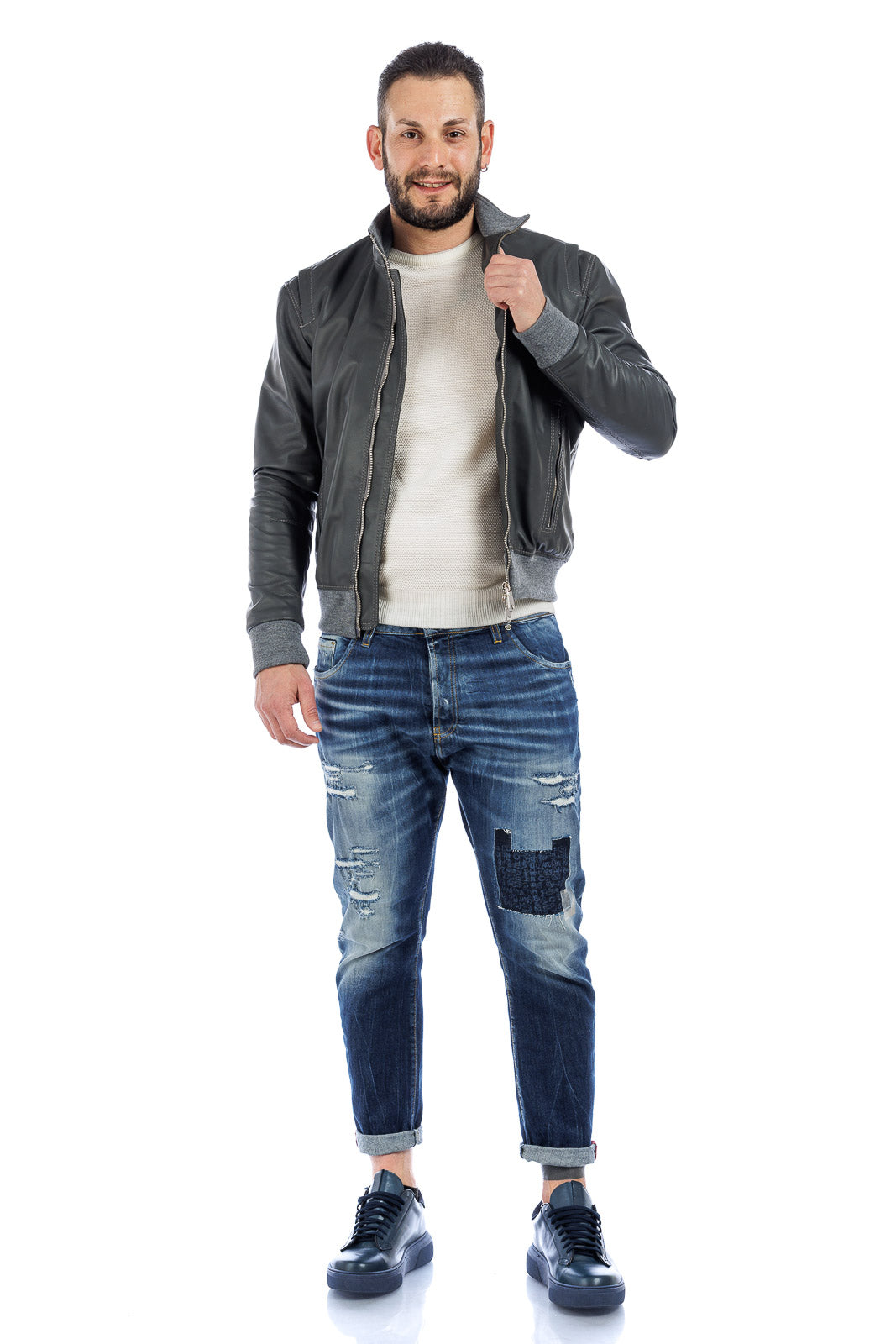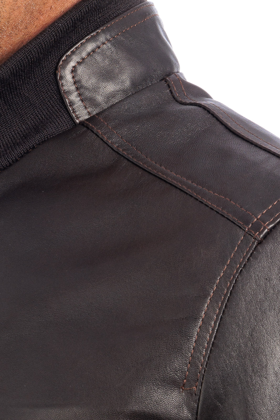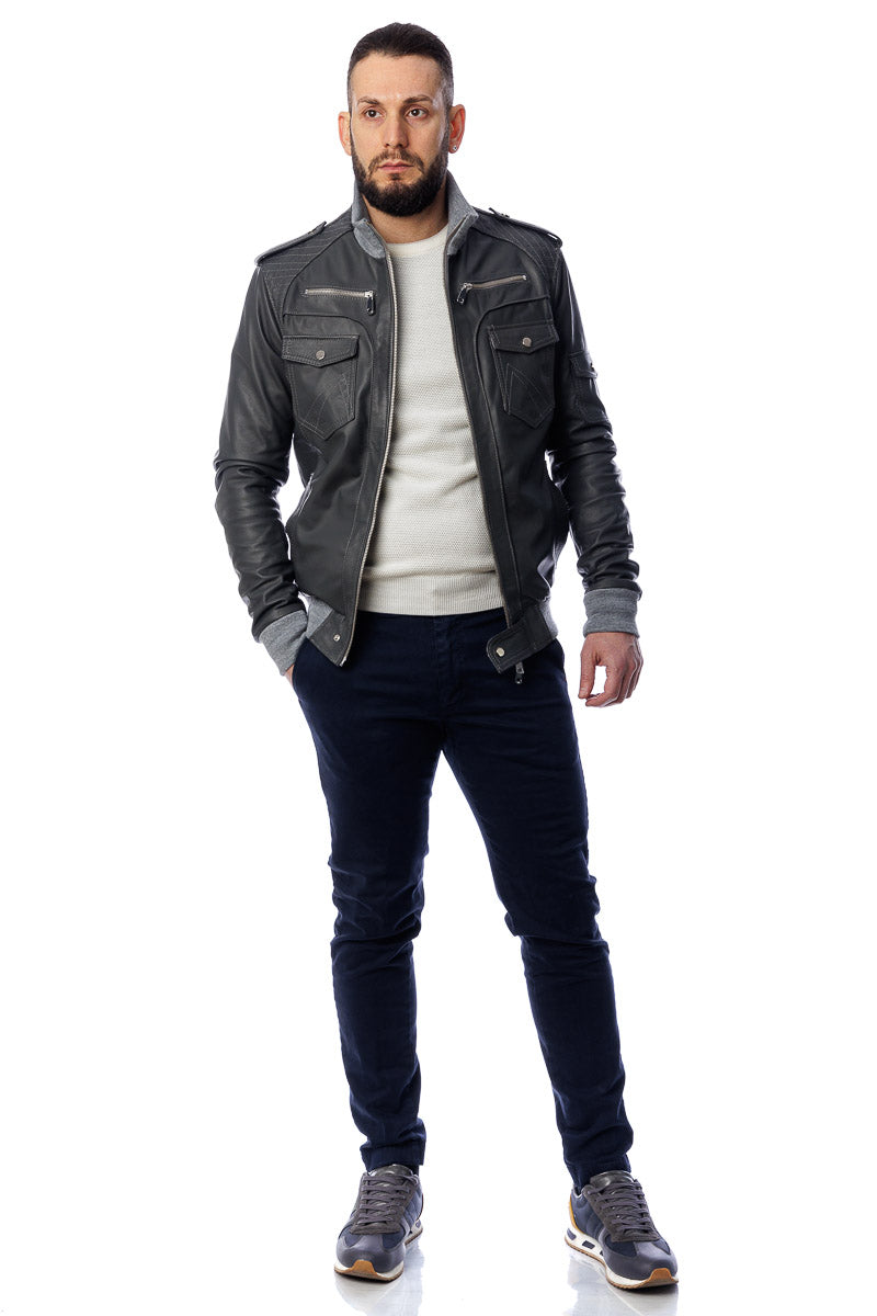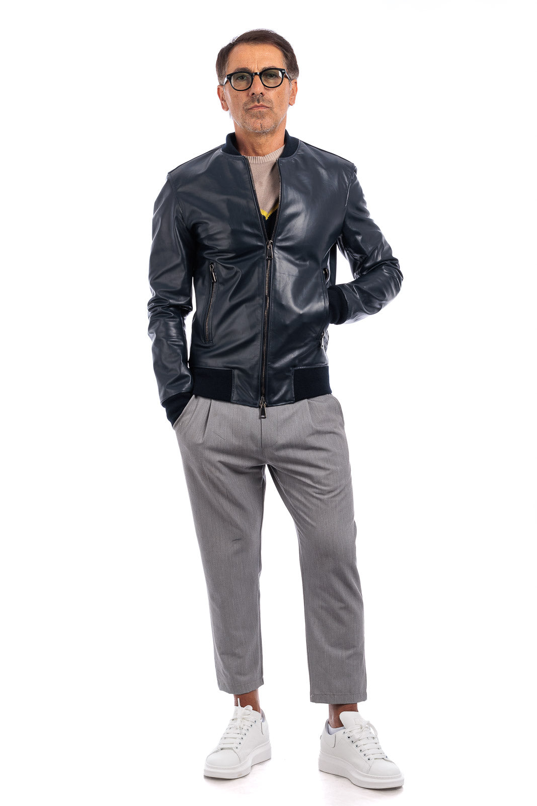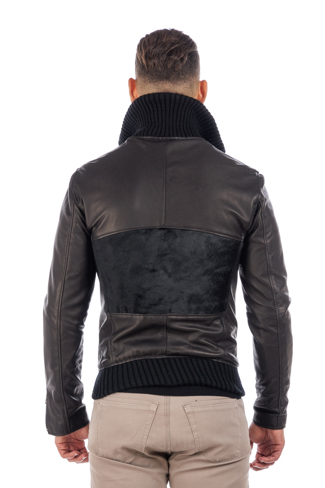 Bomber in pelle uomo con bottoni e zip VAST elasticizzato testa di moro