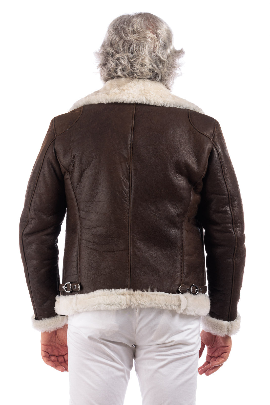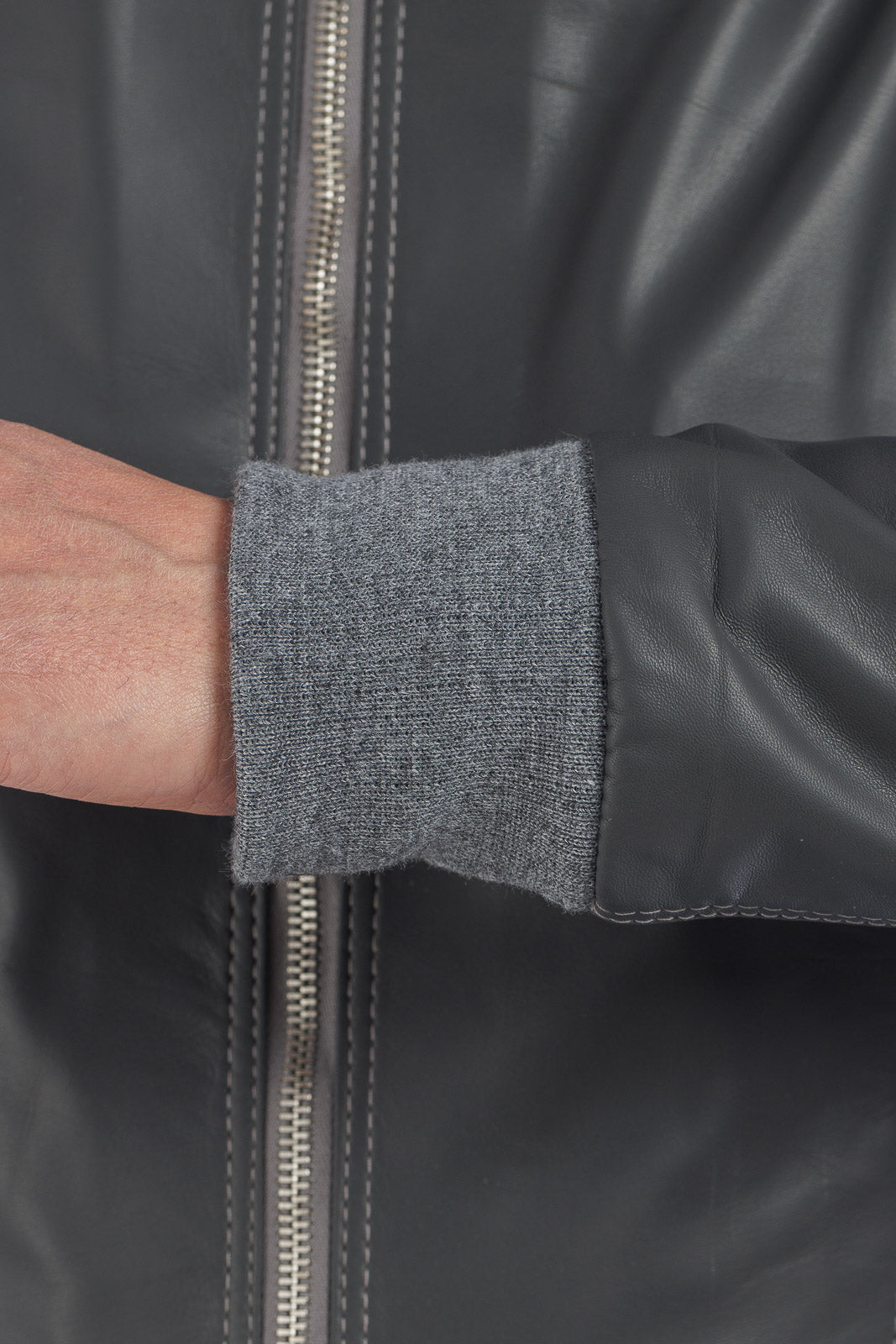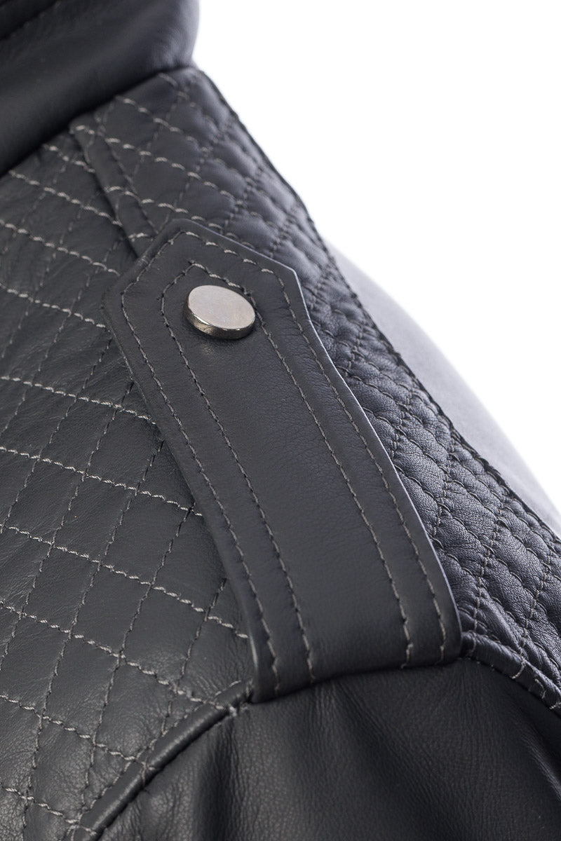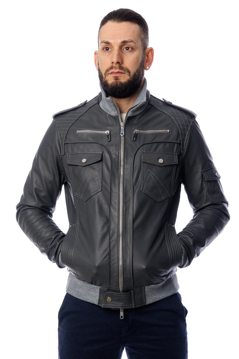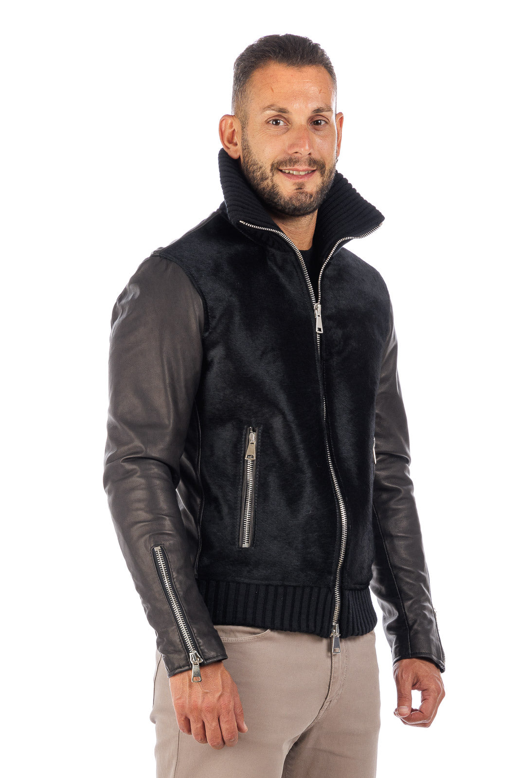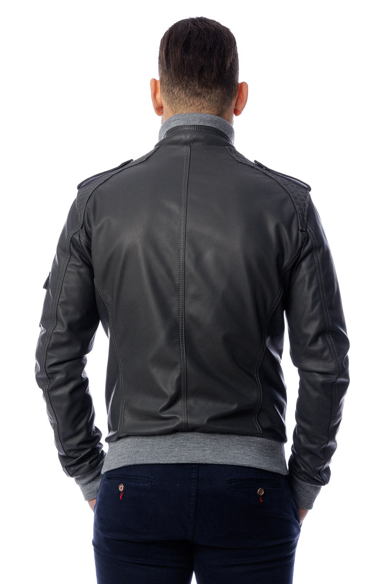 Bomber in pelle uomo con bottoni e zip VAST elasticizzato testa di moro
