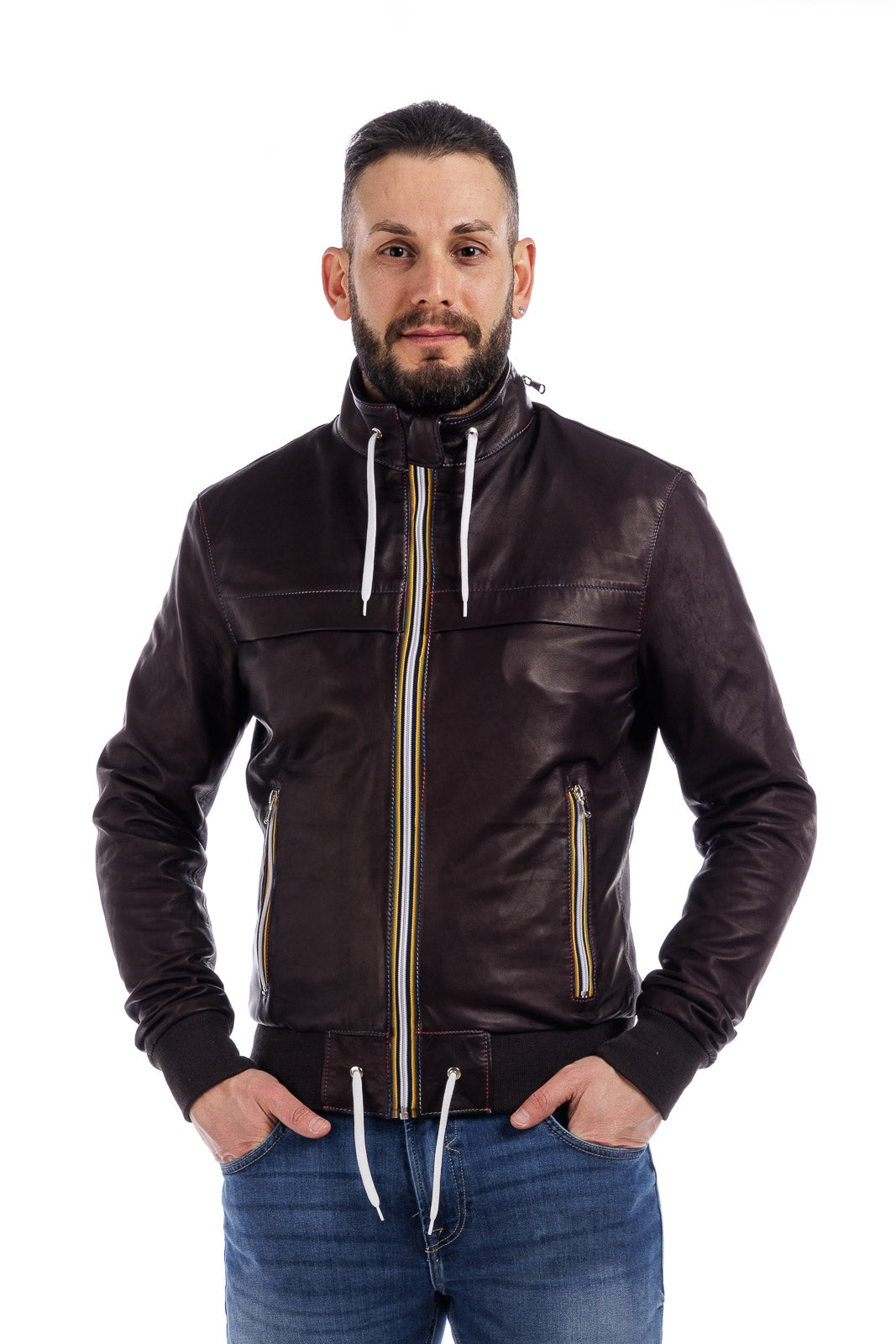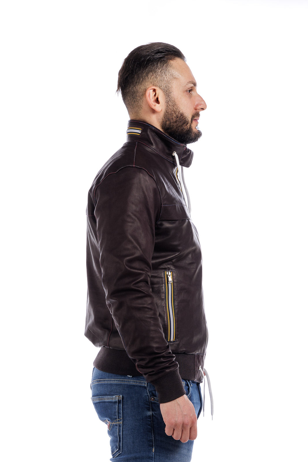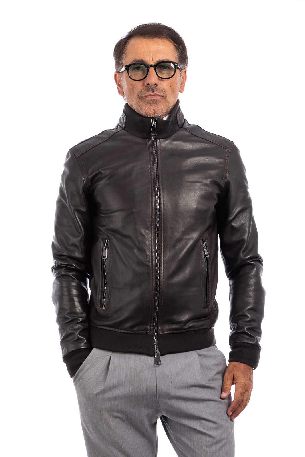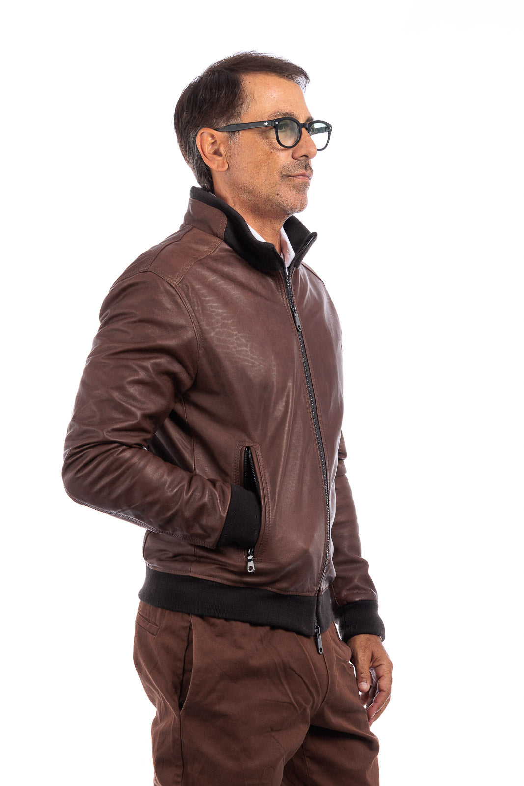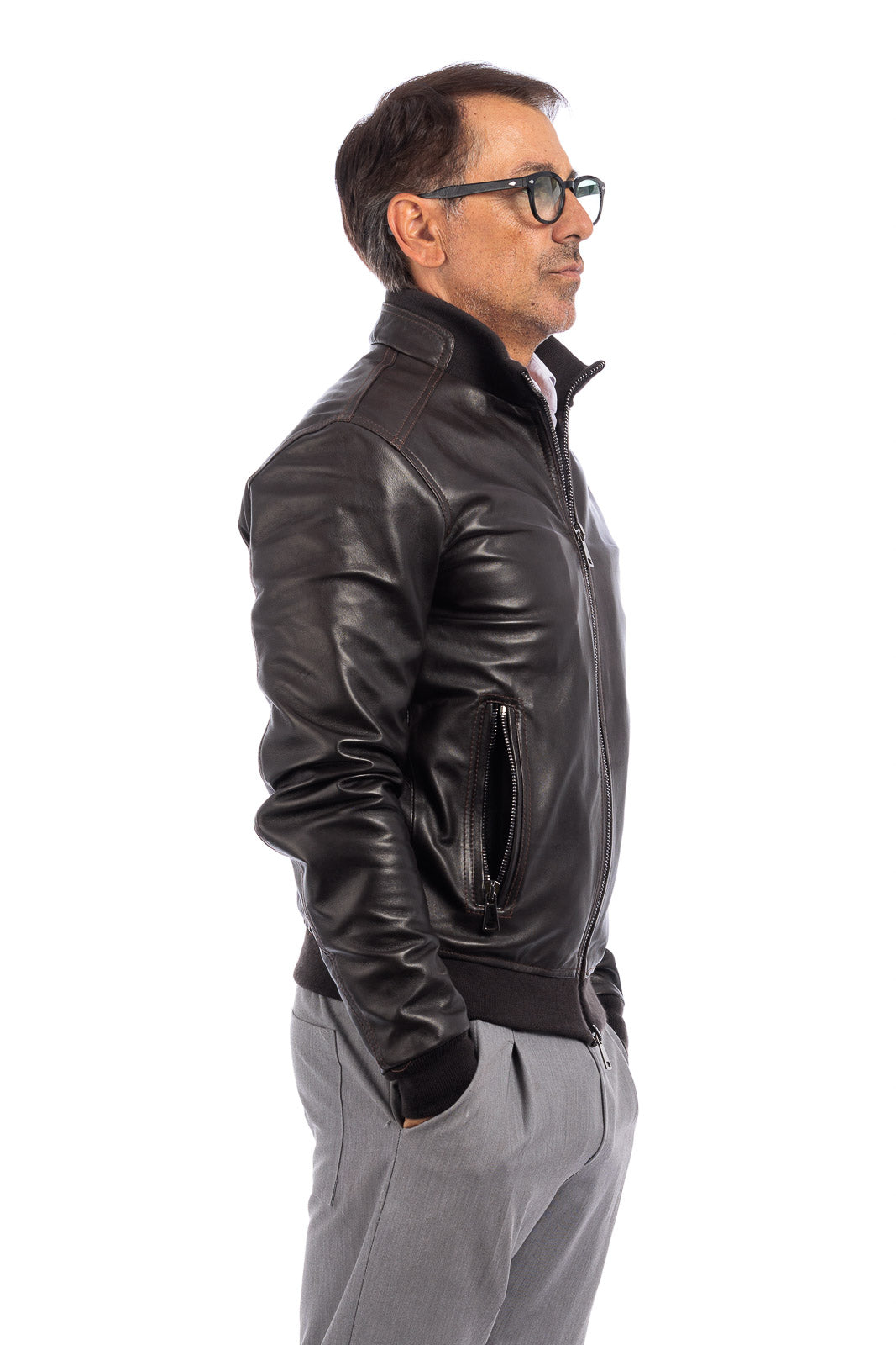 Bomber in pelle con zip POLO testa di moro Elasticizzato