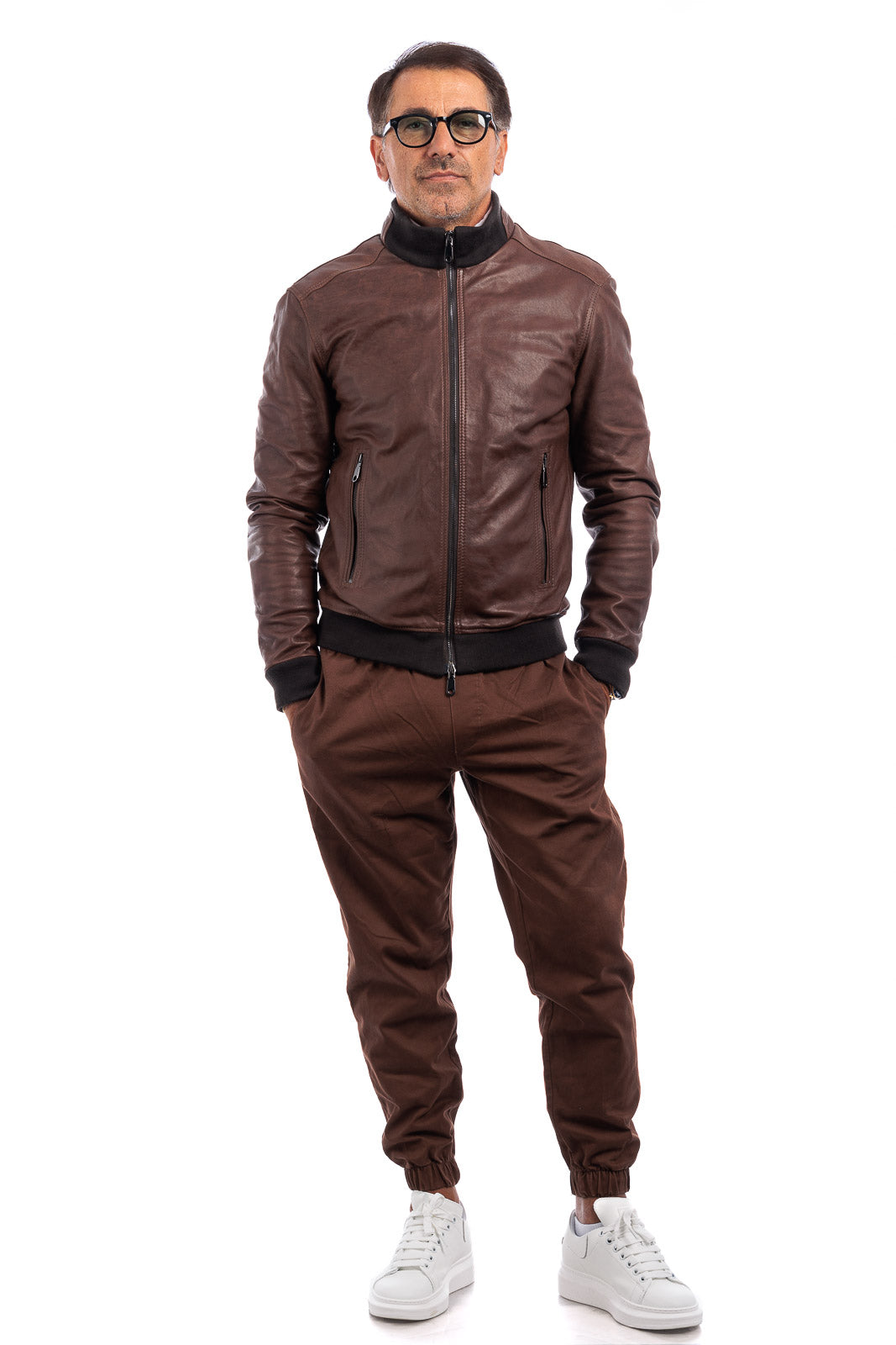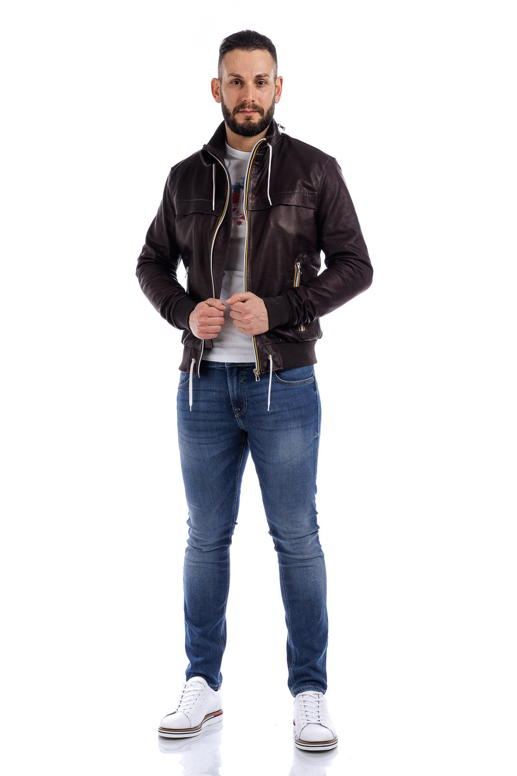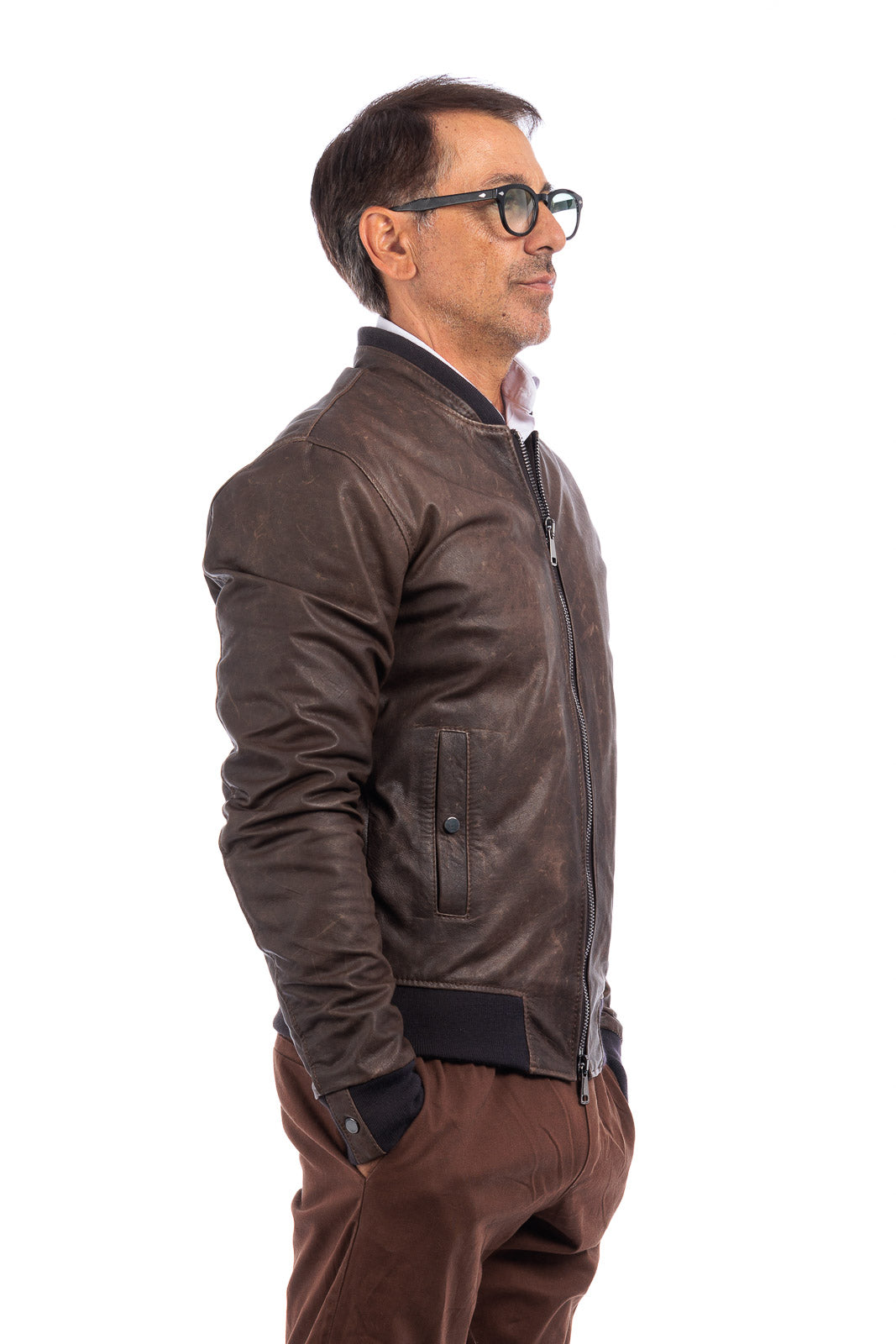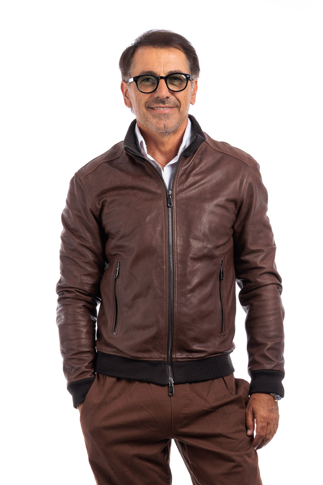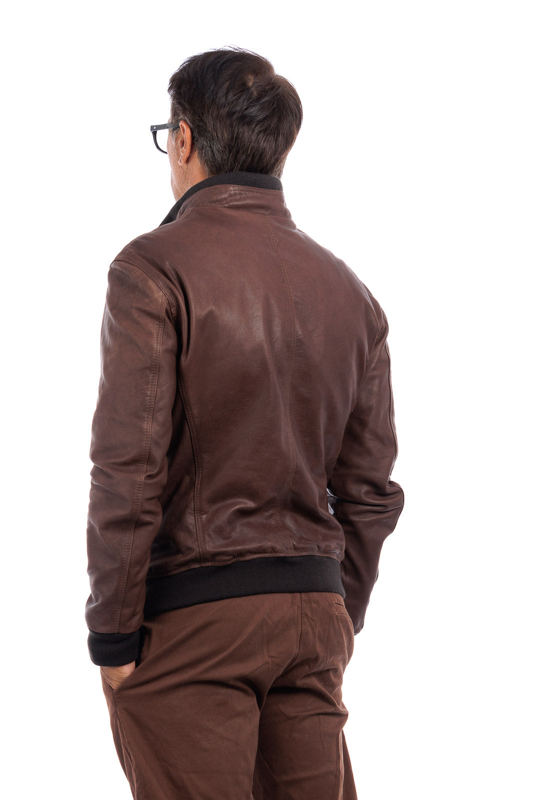 Bomber in pelle con zip POLO testa di moro Elasticizzato
