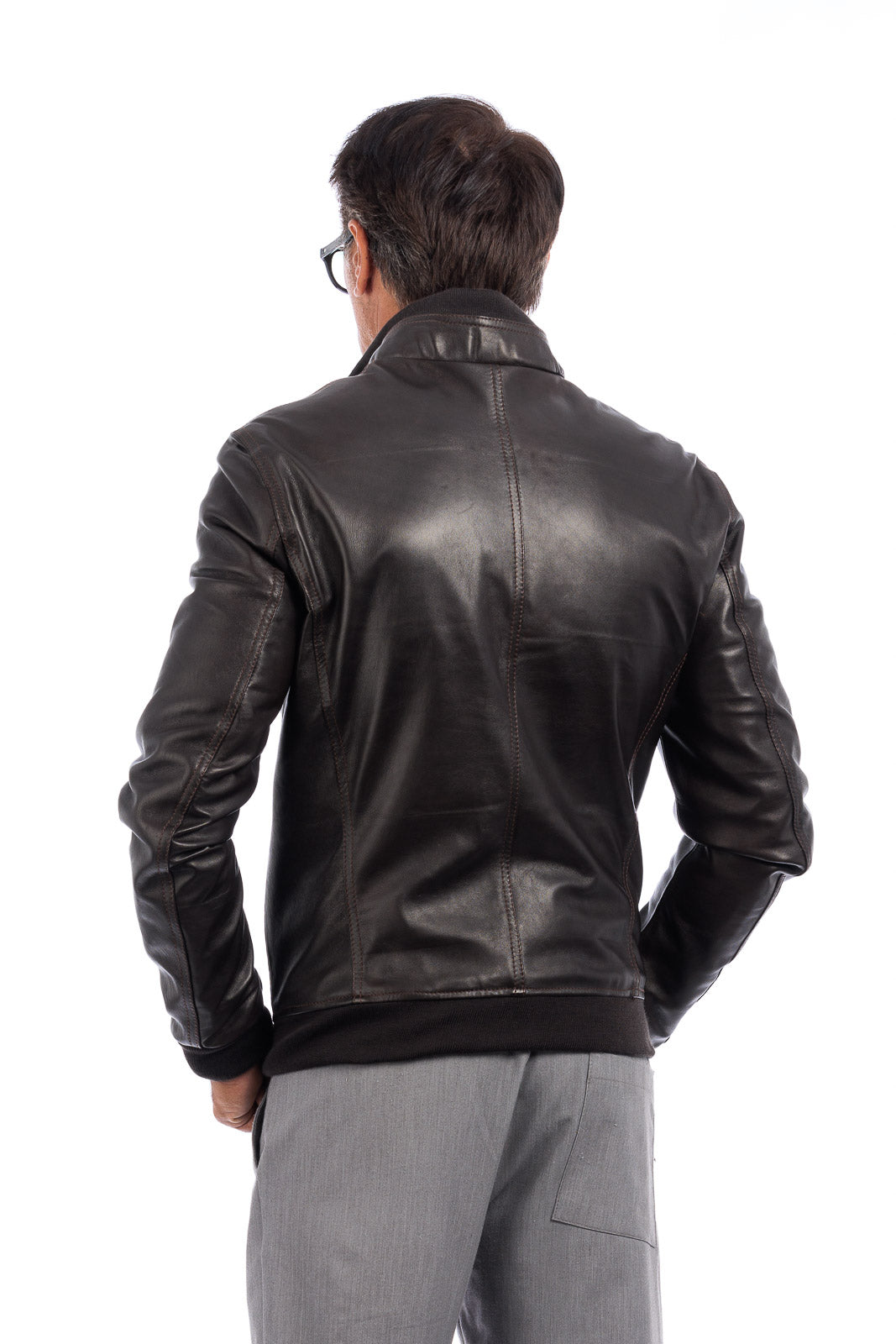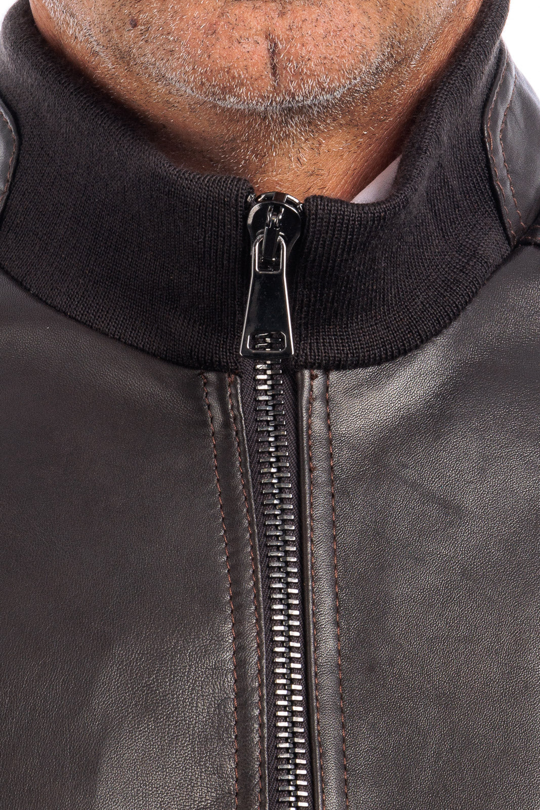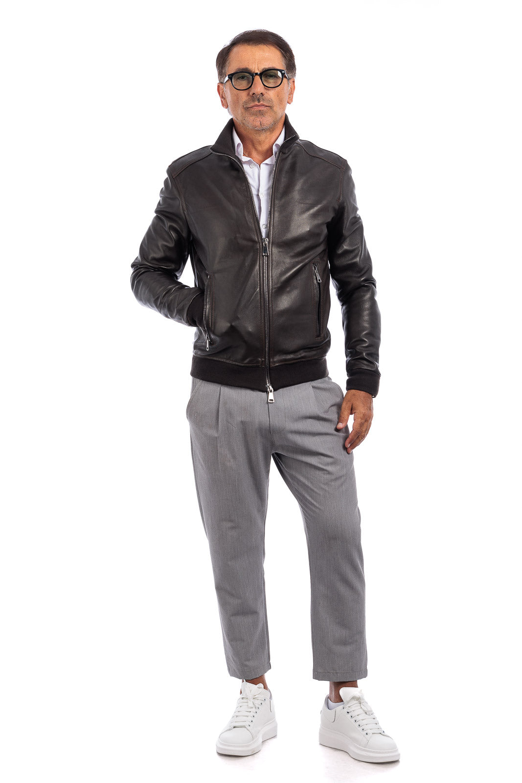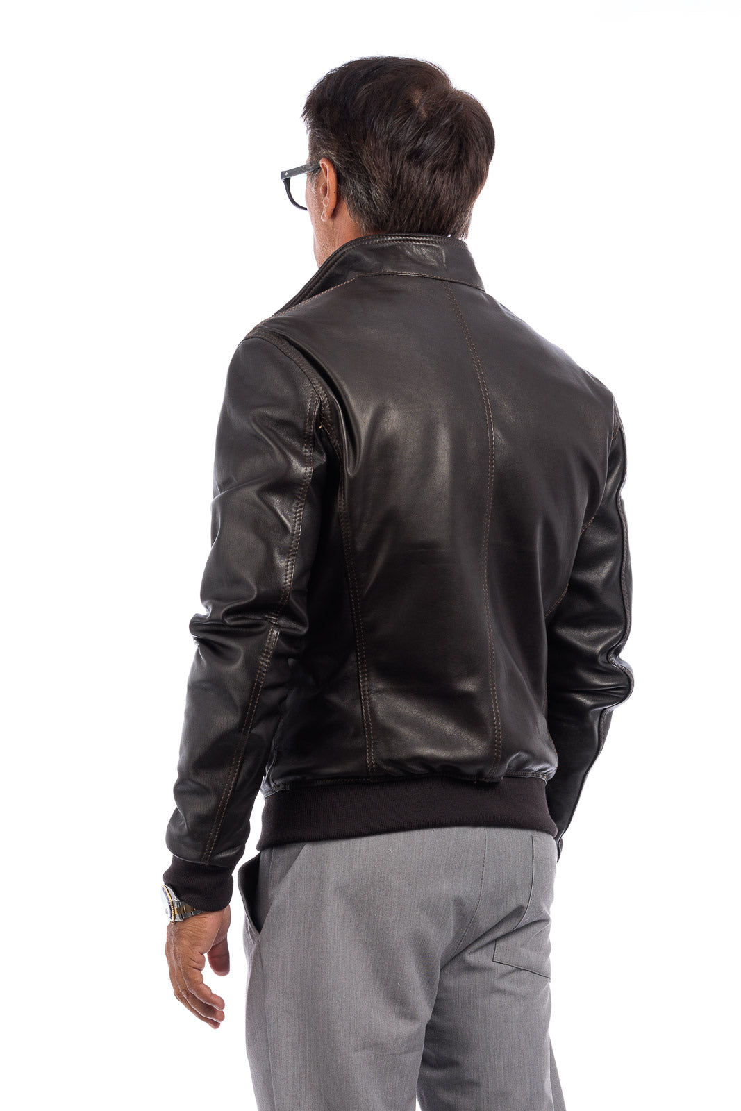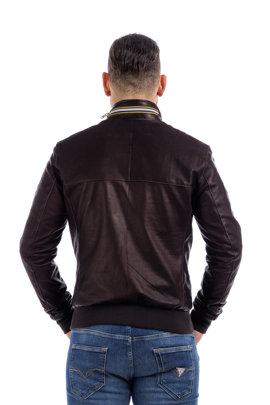 Bomber in pelle con zip POLO testa di moro Elasticizzato