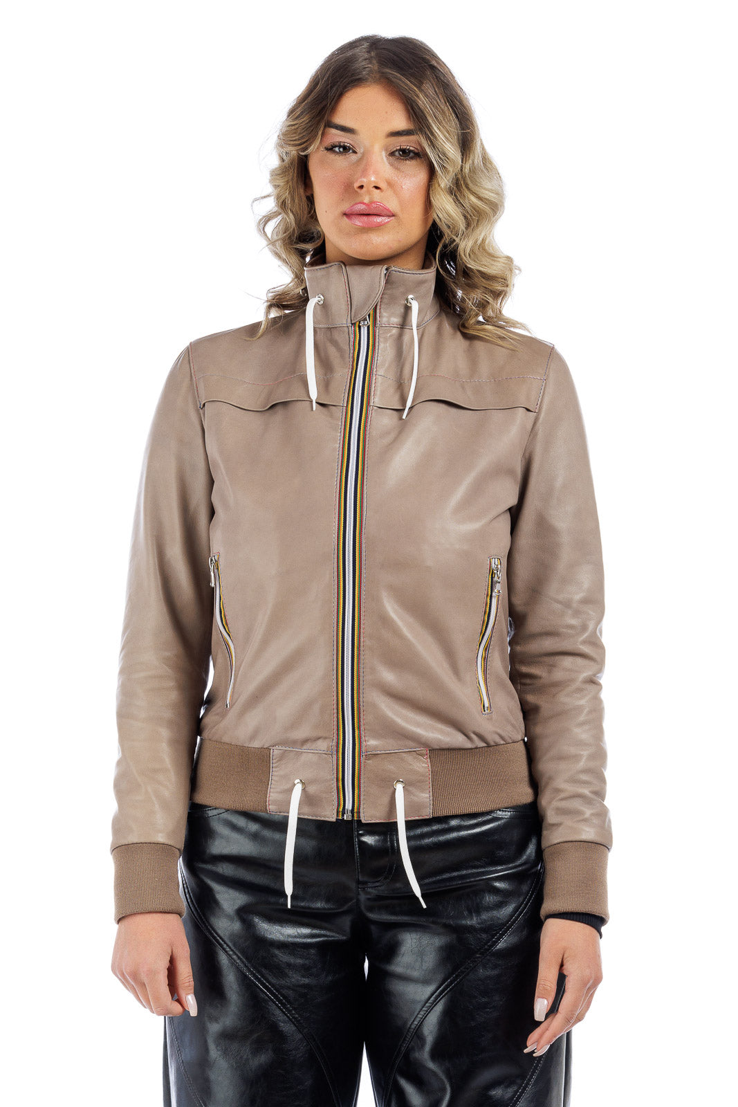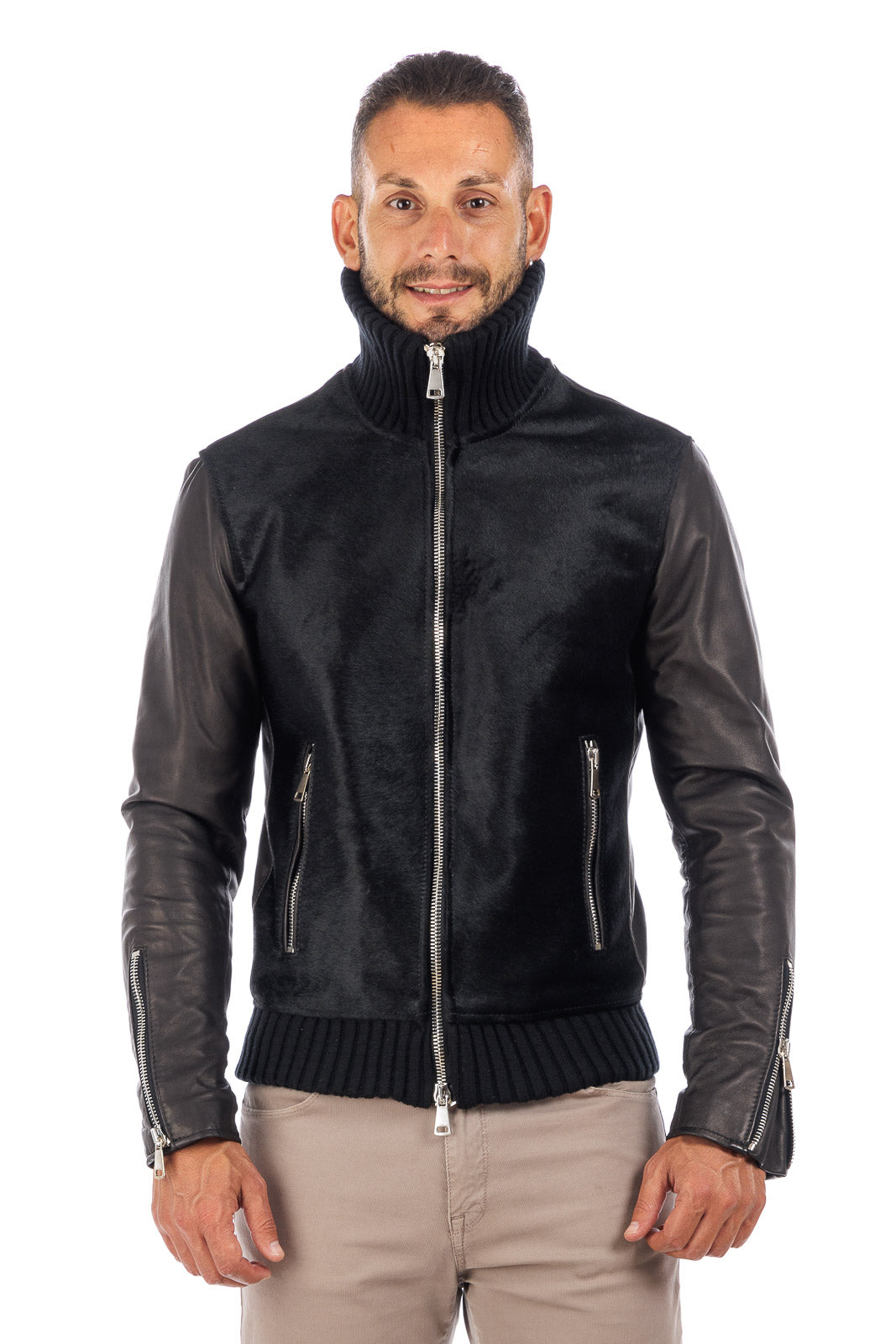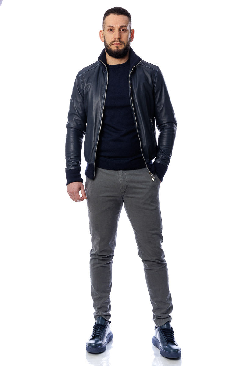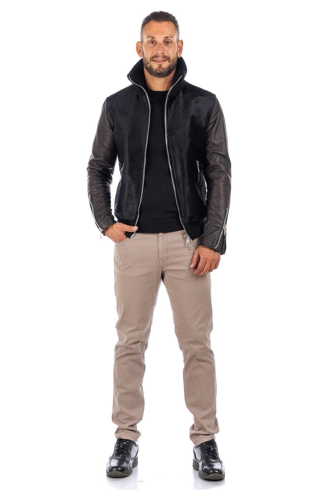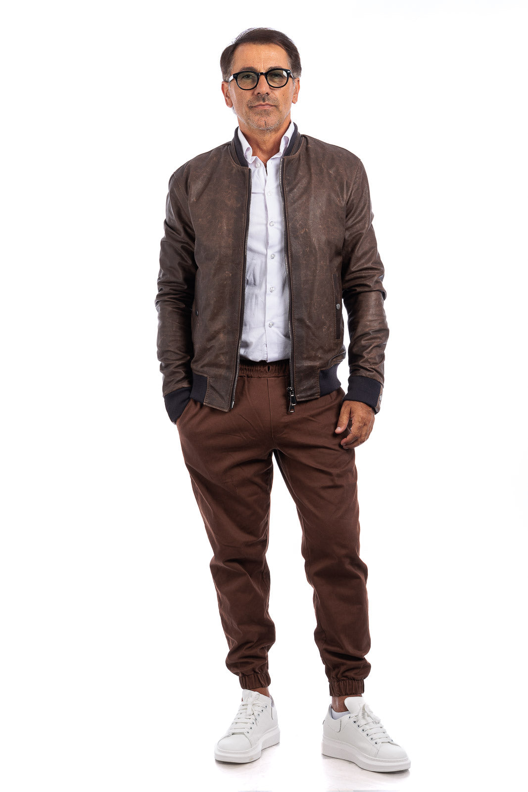 Bomber in pelle con zip POLO testa di moro Elasticizzato