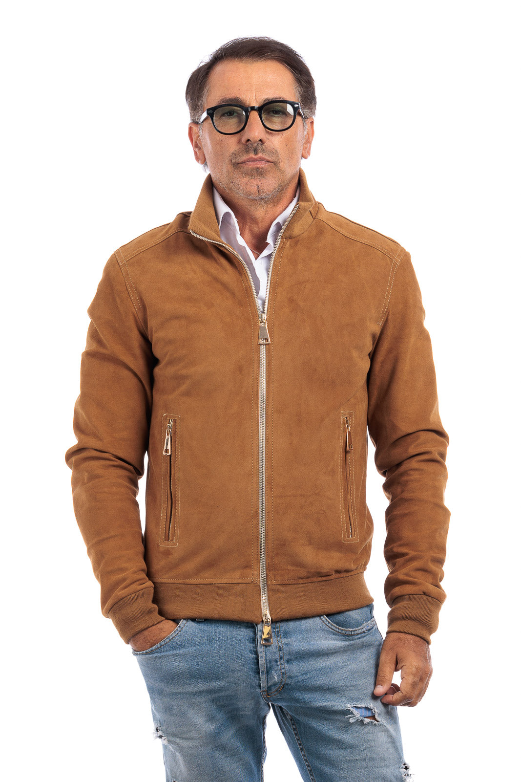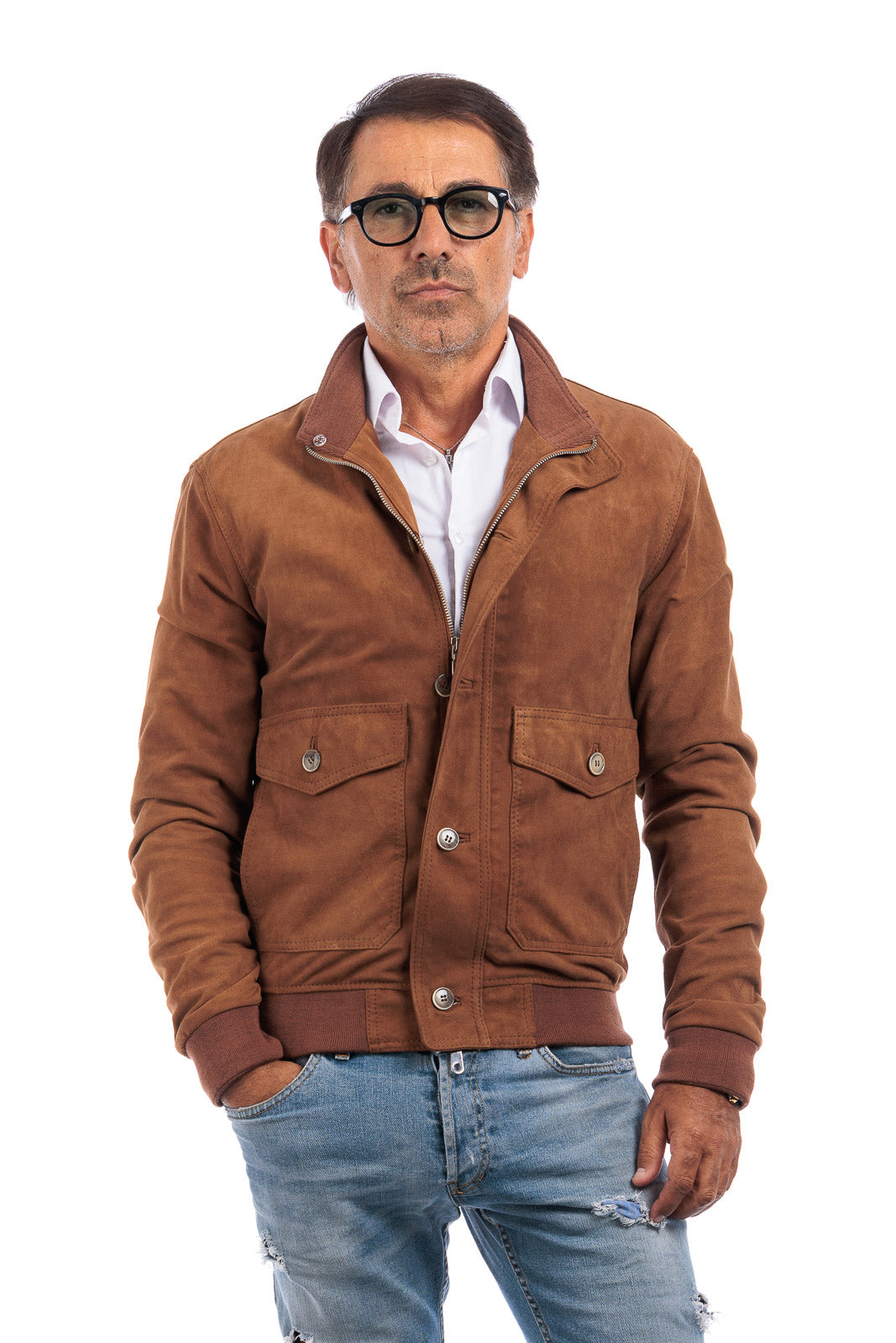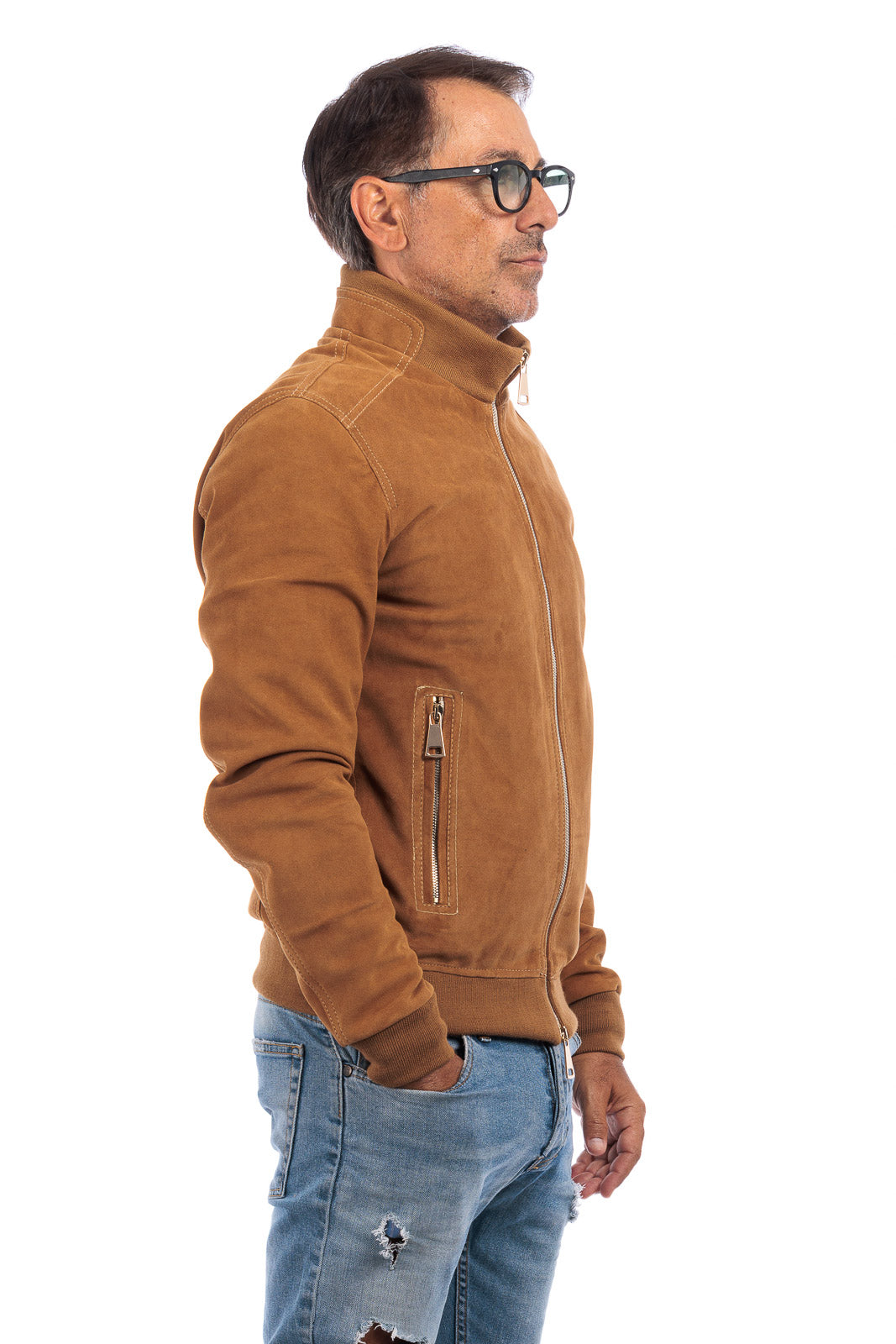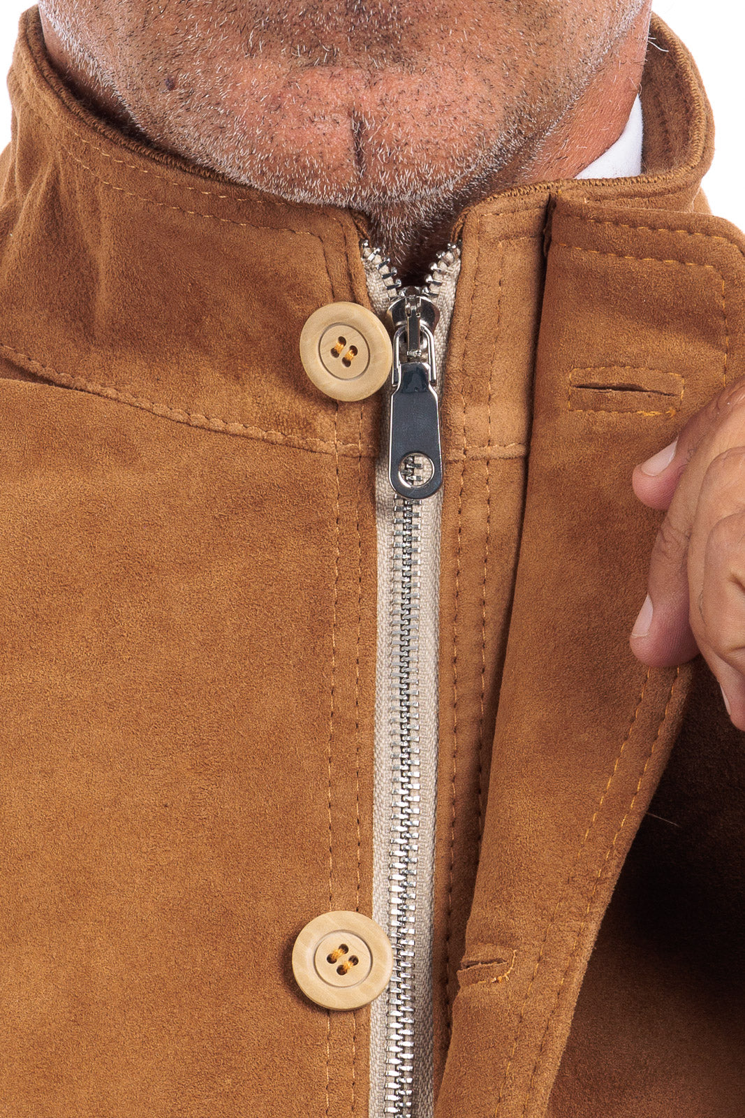 Bomber in camoscio uomo con bottoni e zip VAST whisky