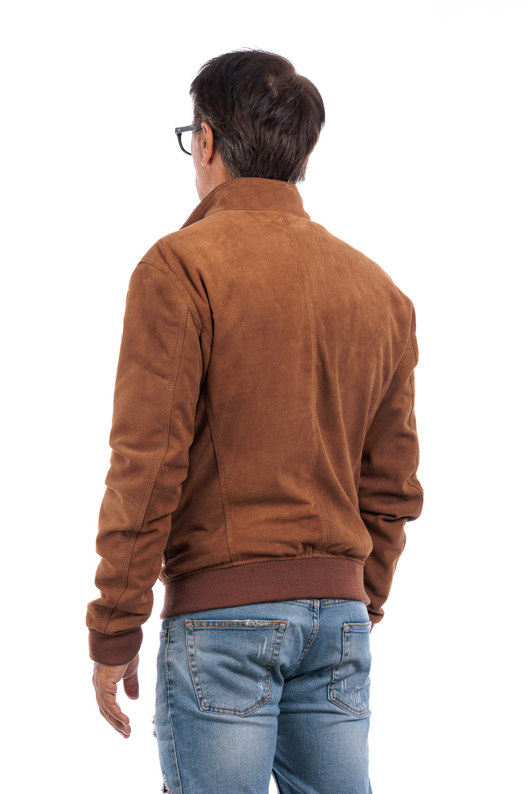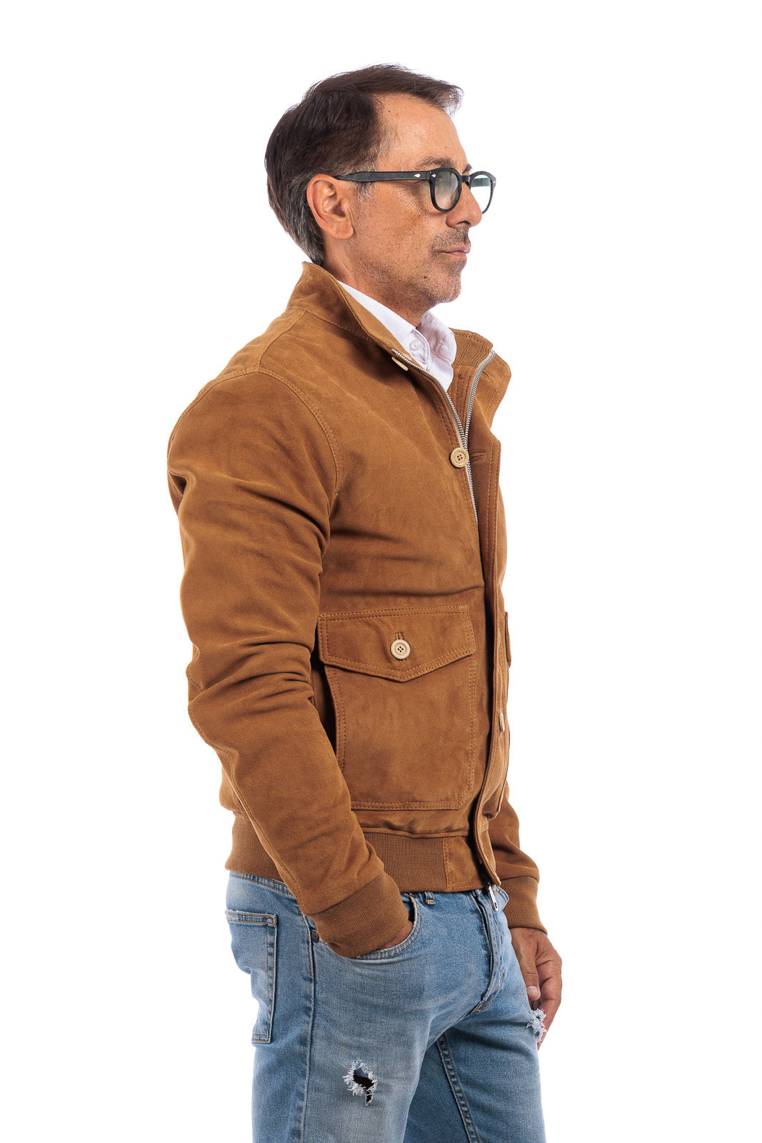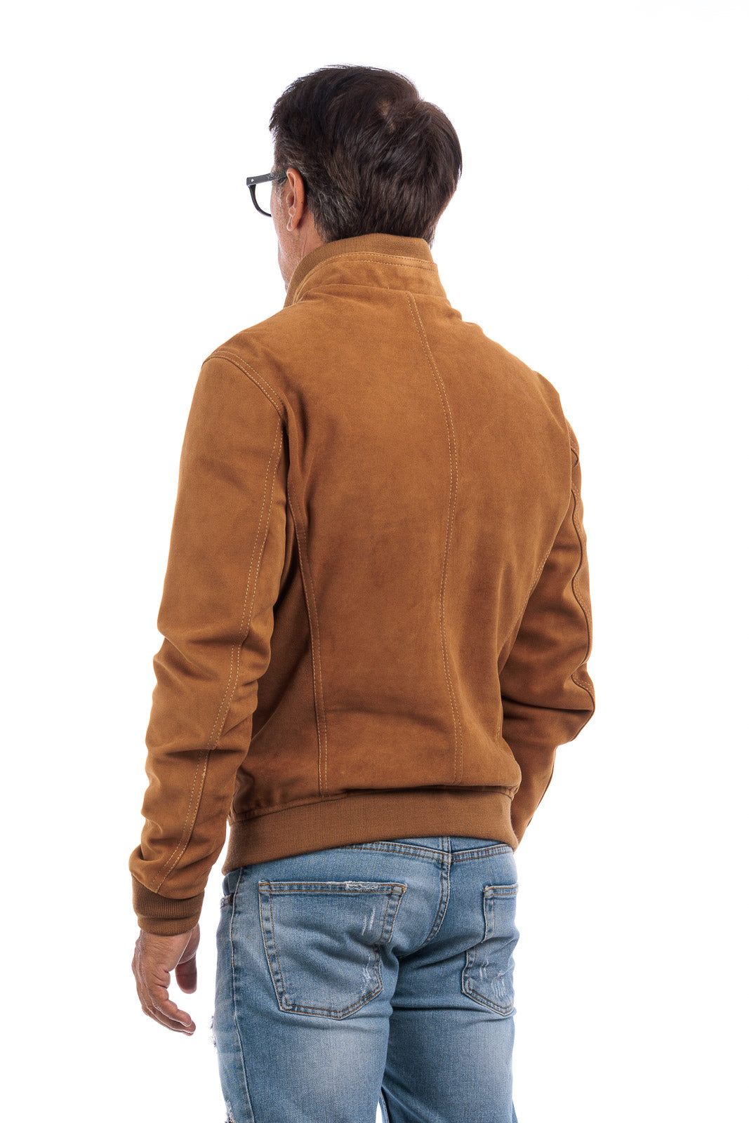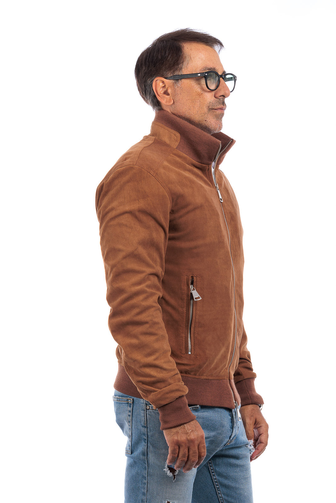 Bomber in camoscio uomo con bottoni e zip VAST whisky