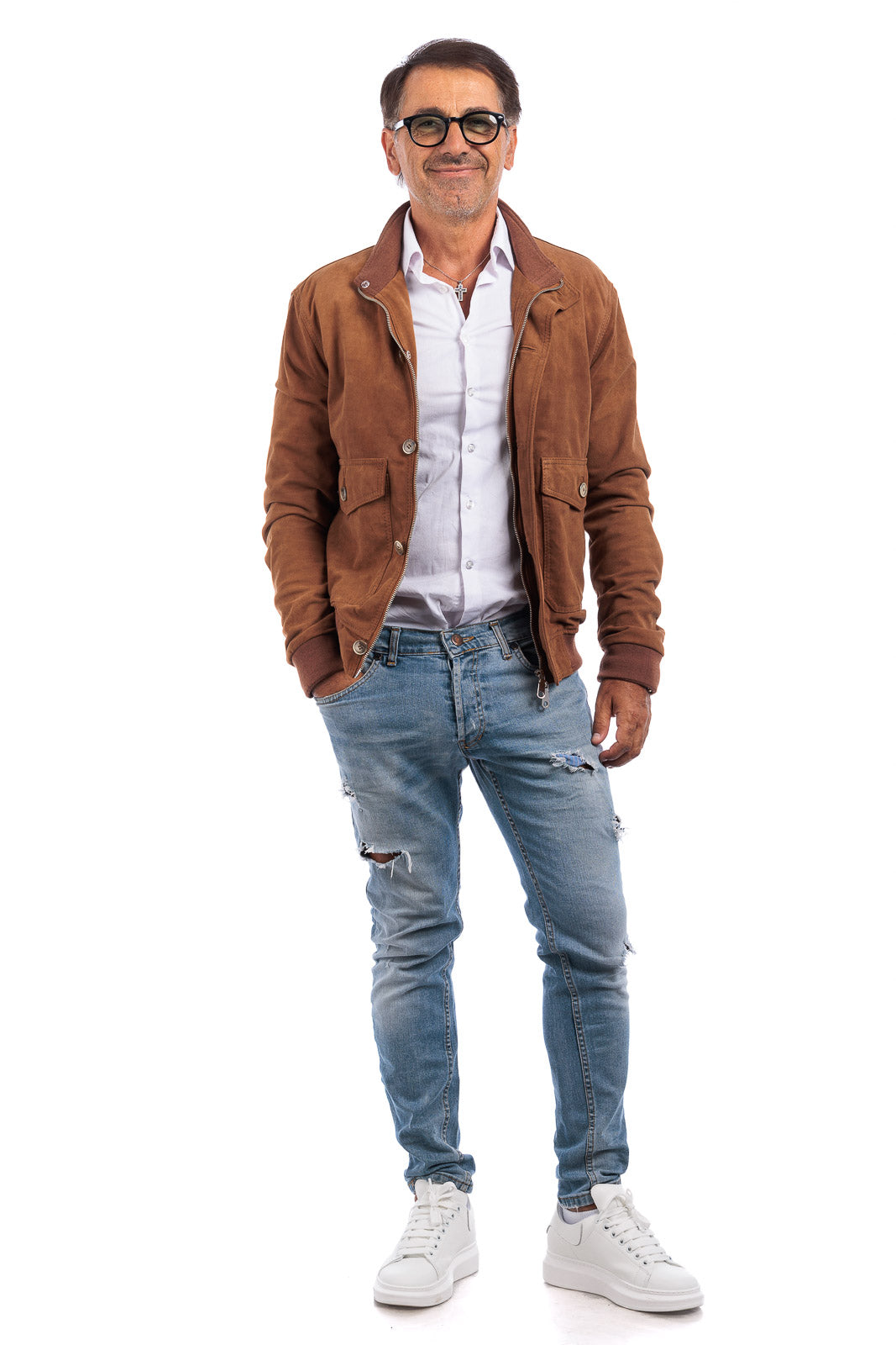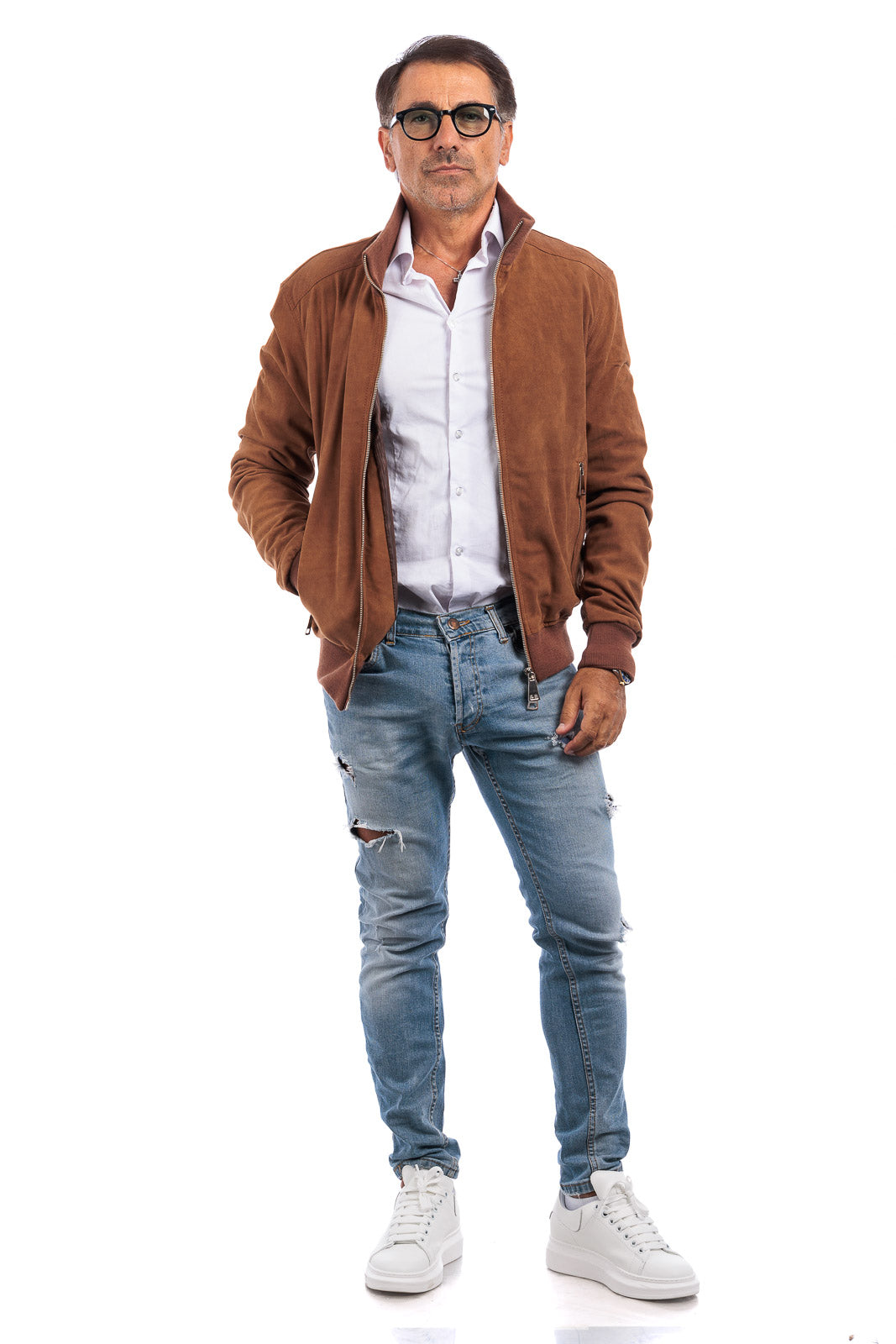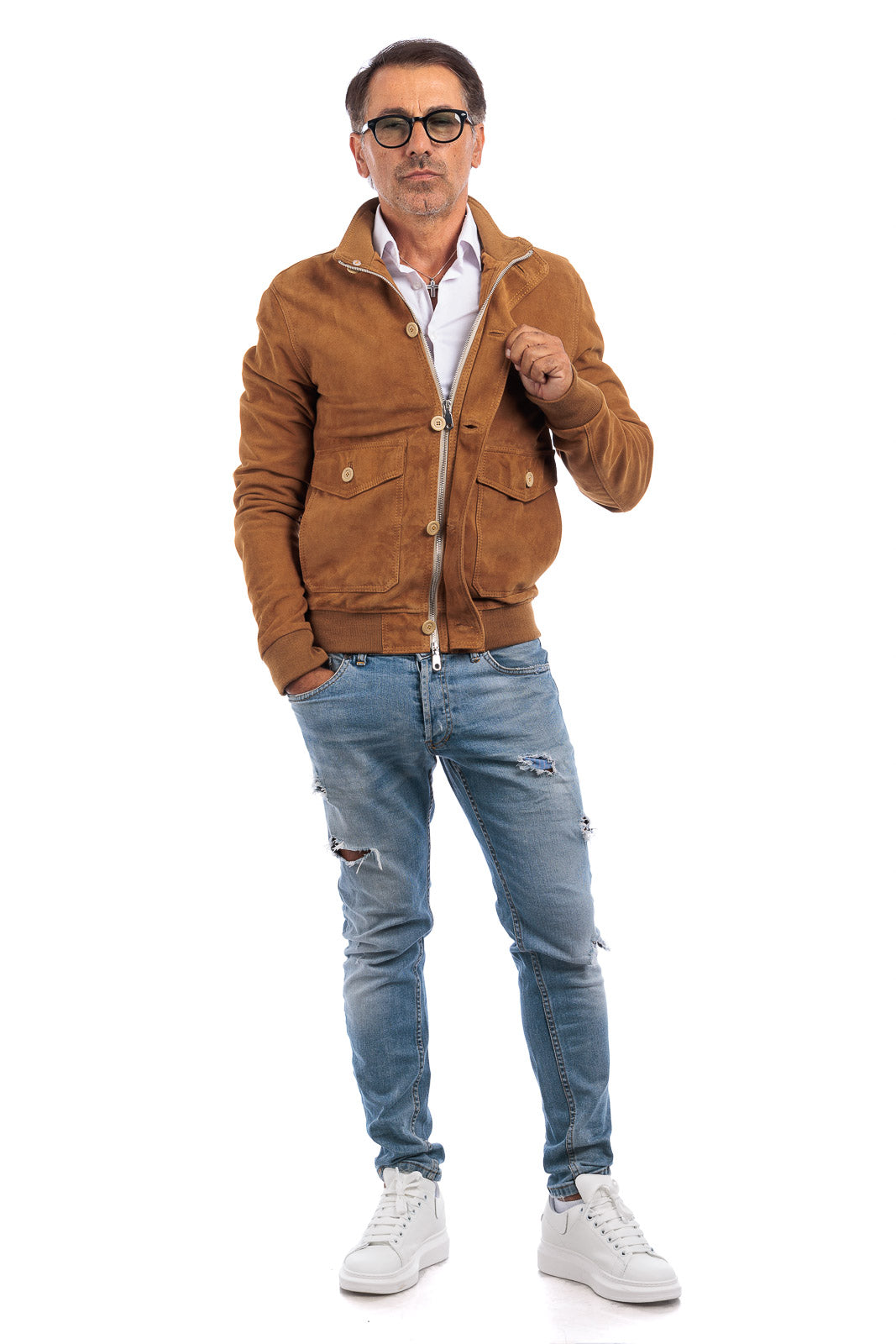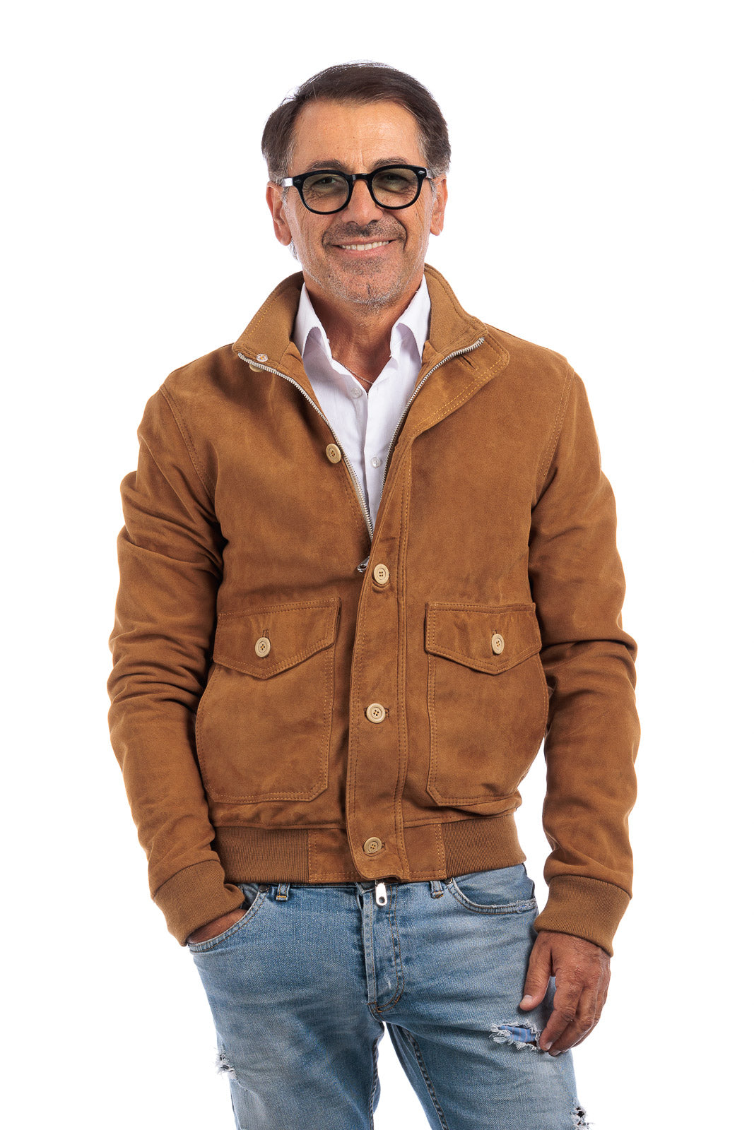 Bomber in camoscio uomo con bottoni e zip VAST whisky