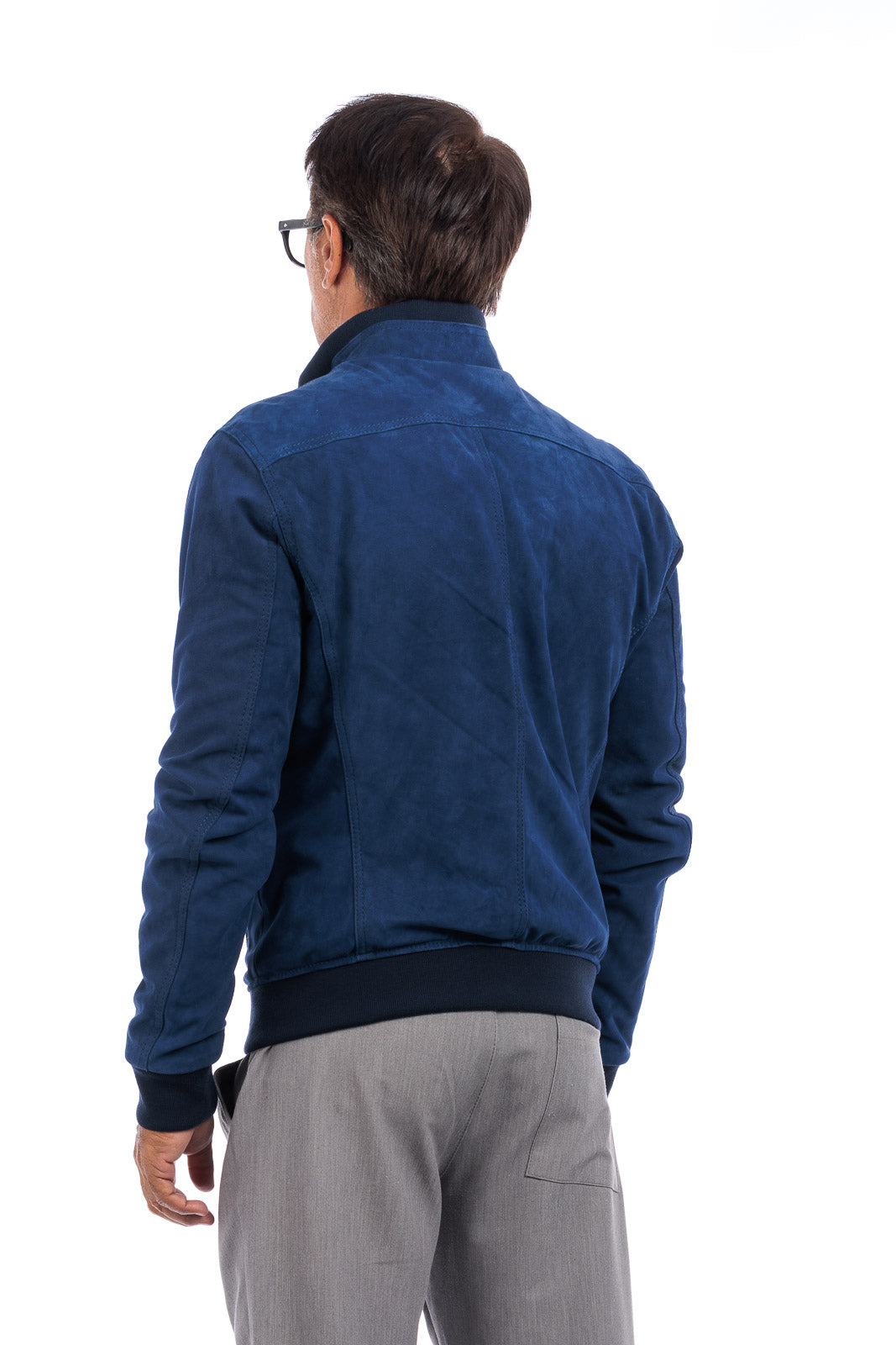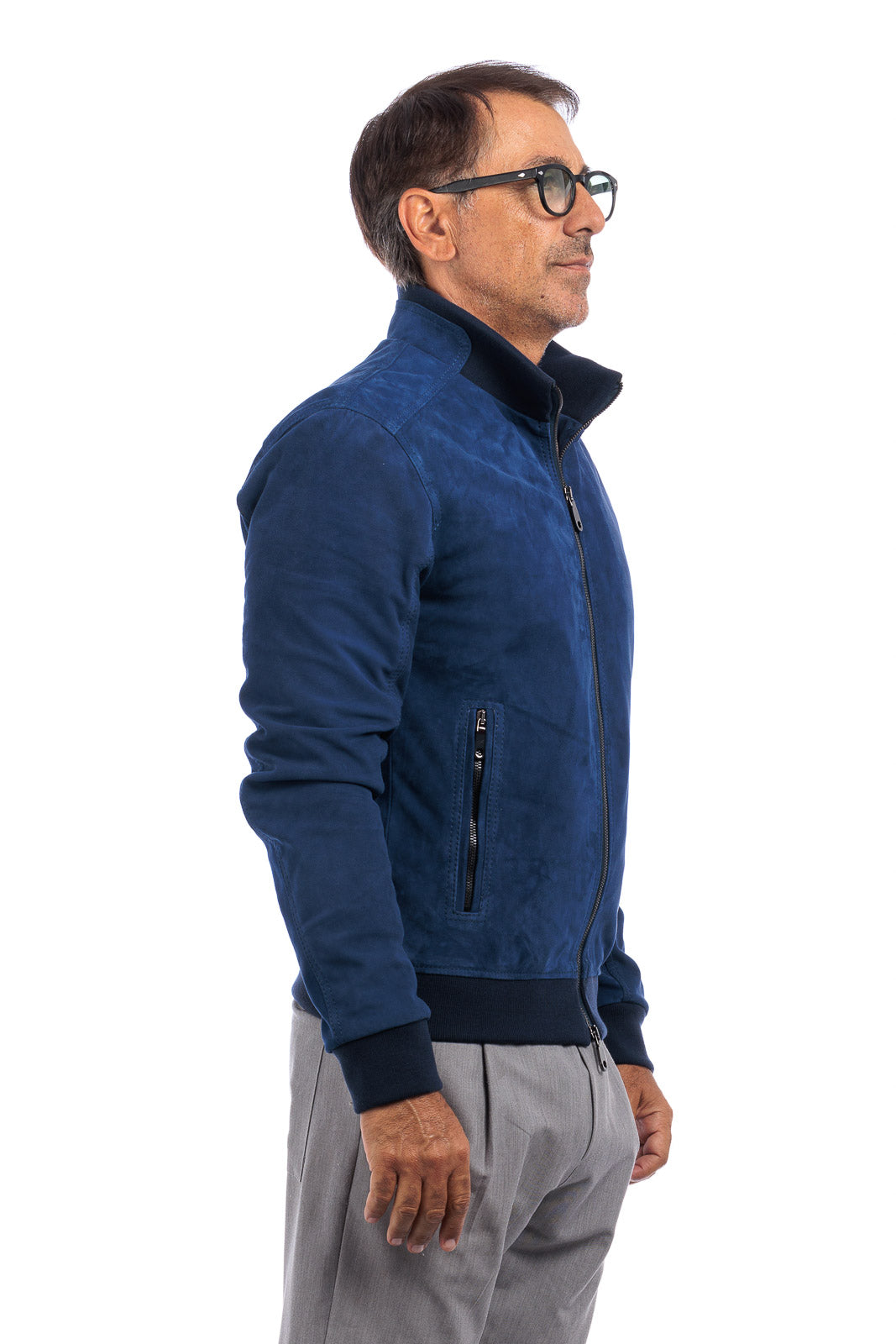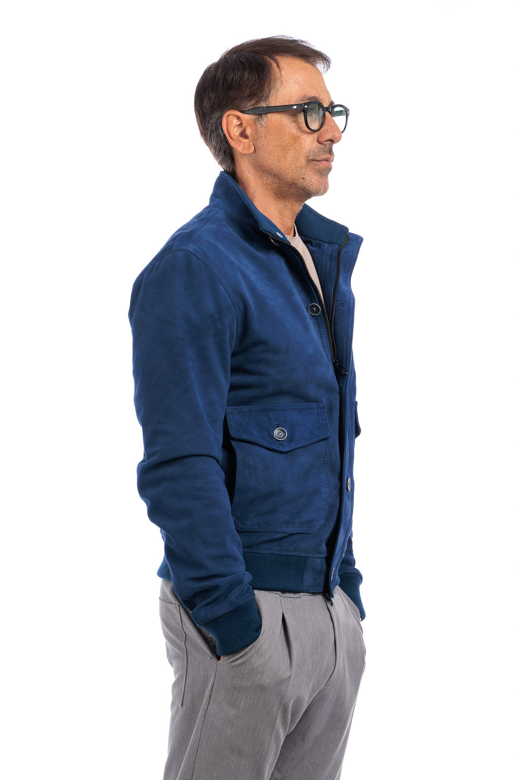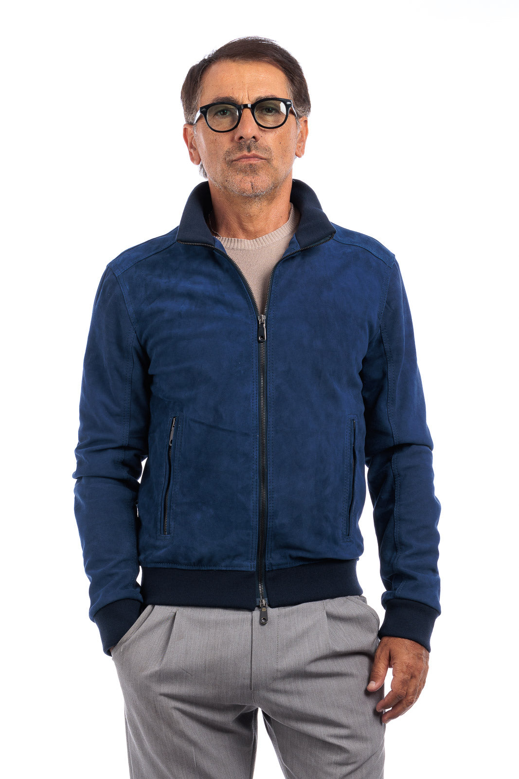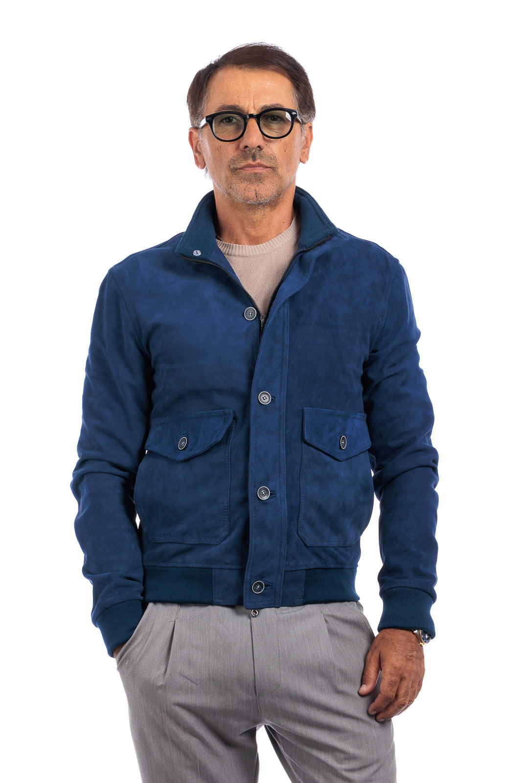 Bomber in camoscio uomo con bottoni e zip VAST blu