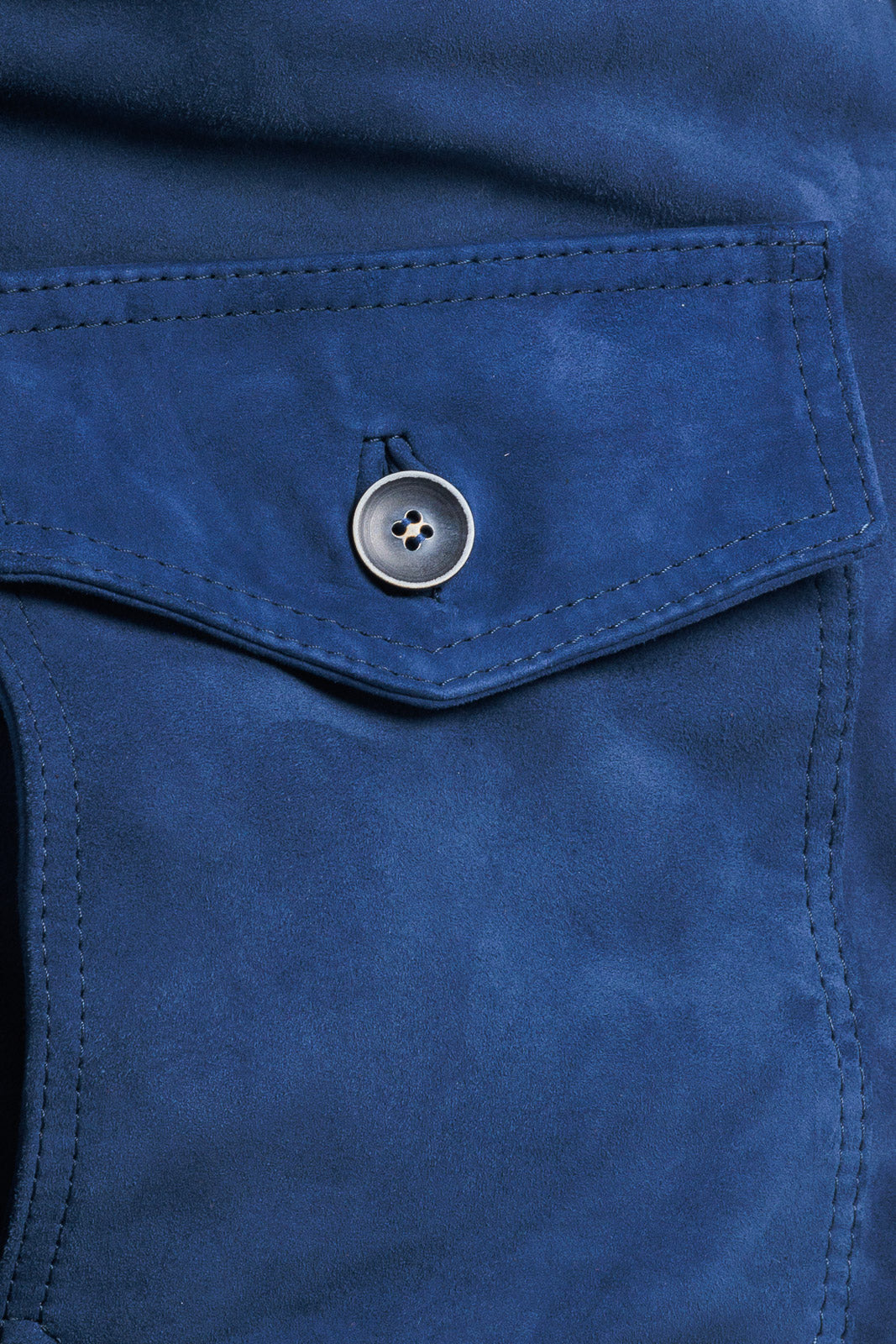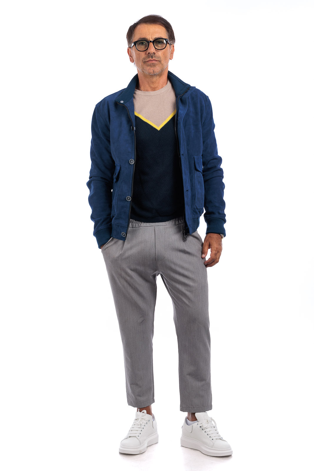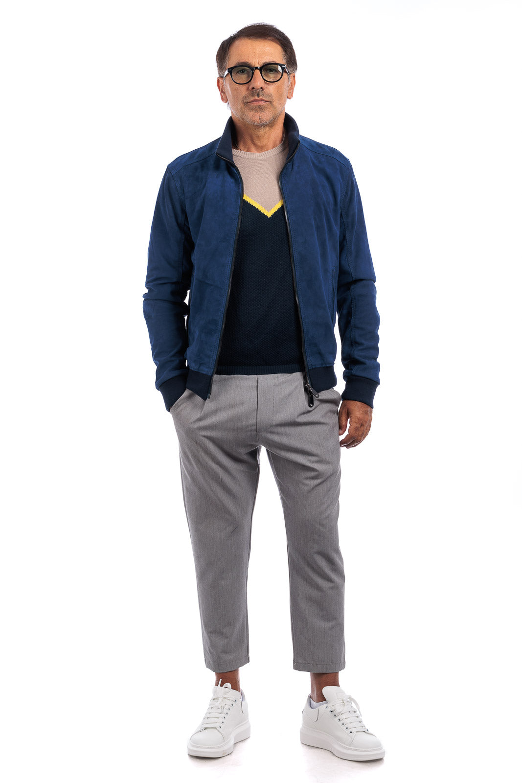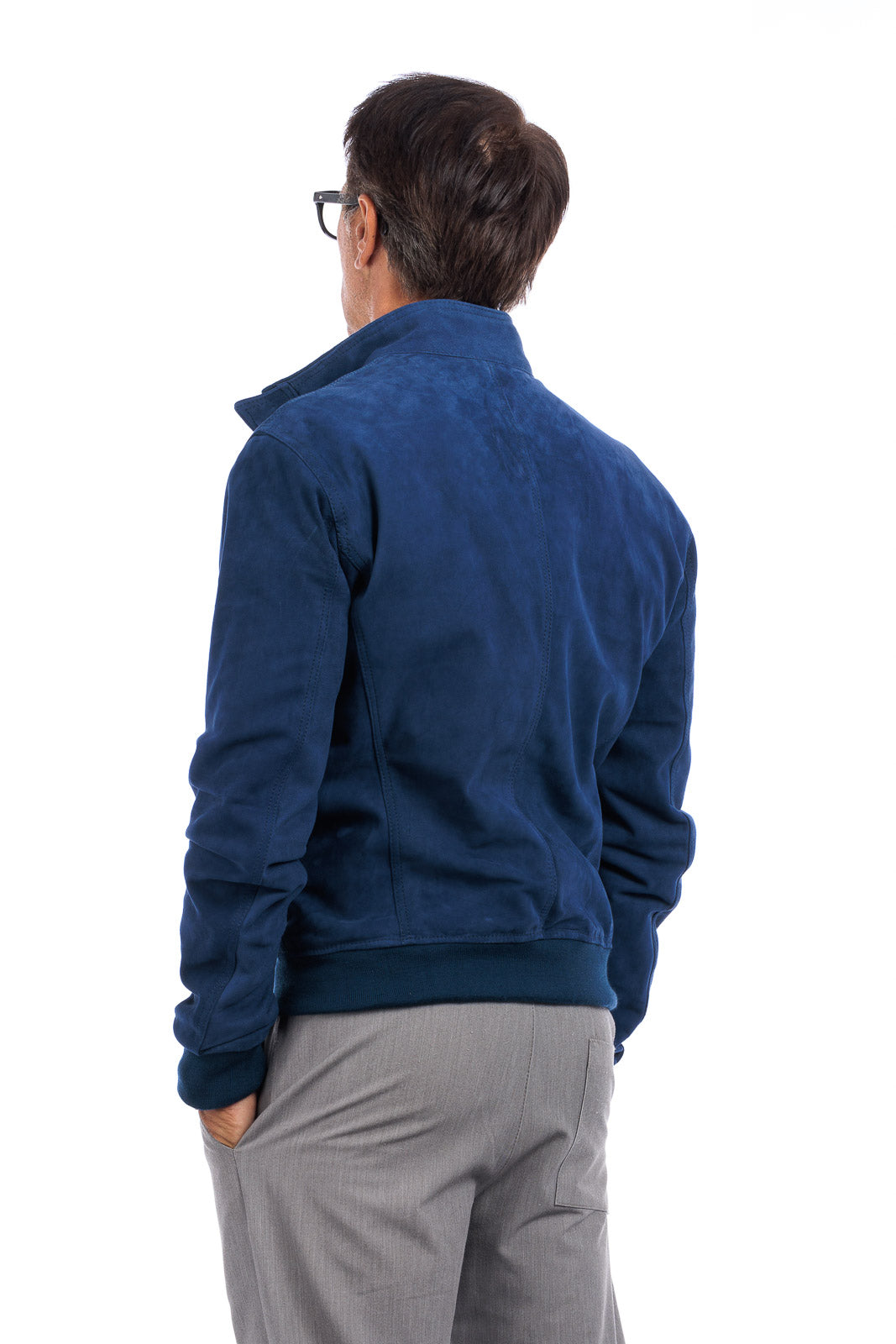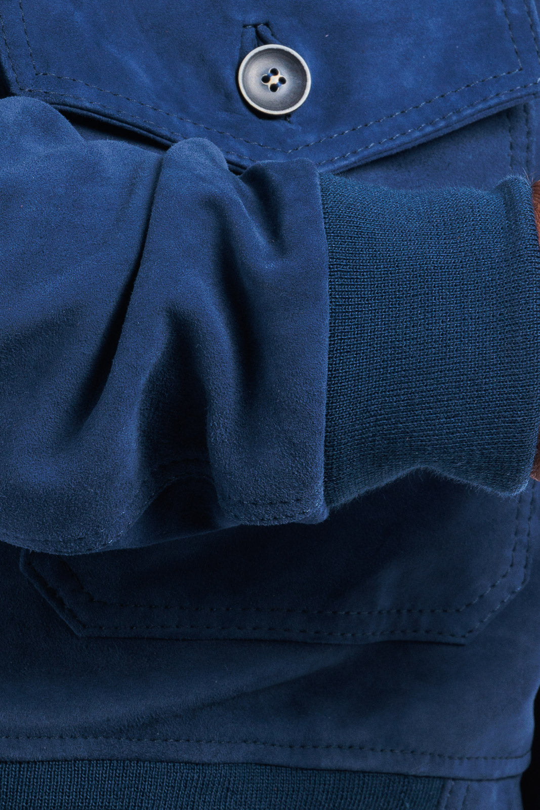 Bomber in camoscio uomo con bottoni e zip VAST blu