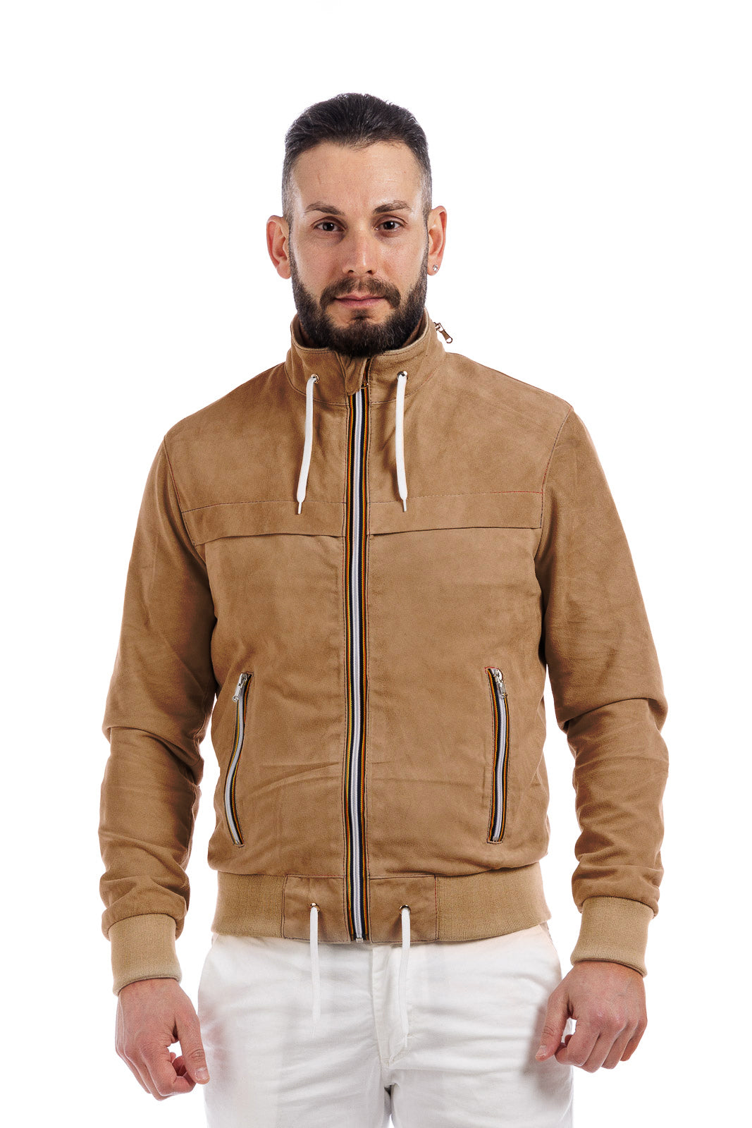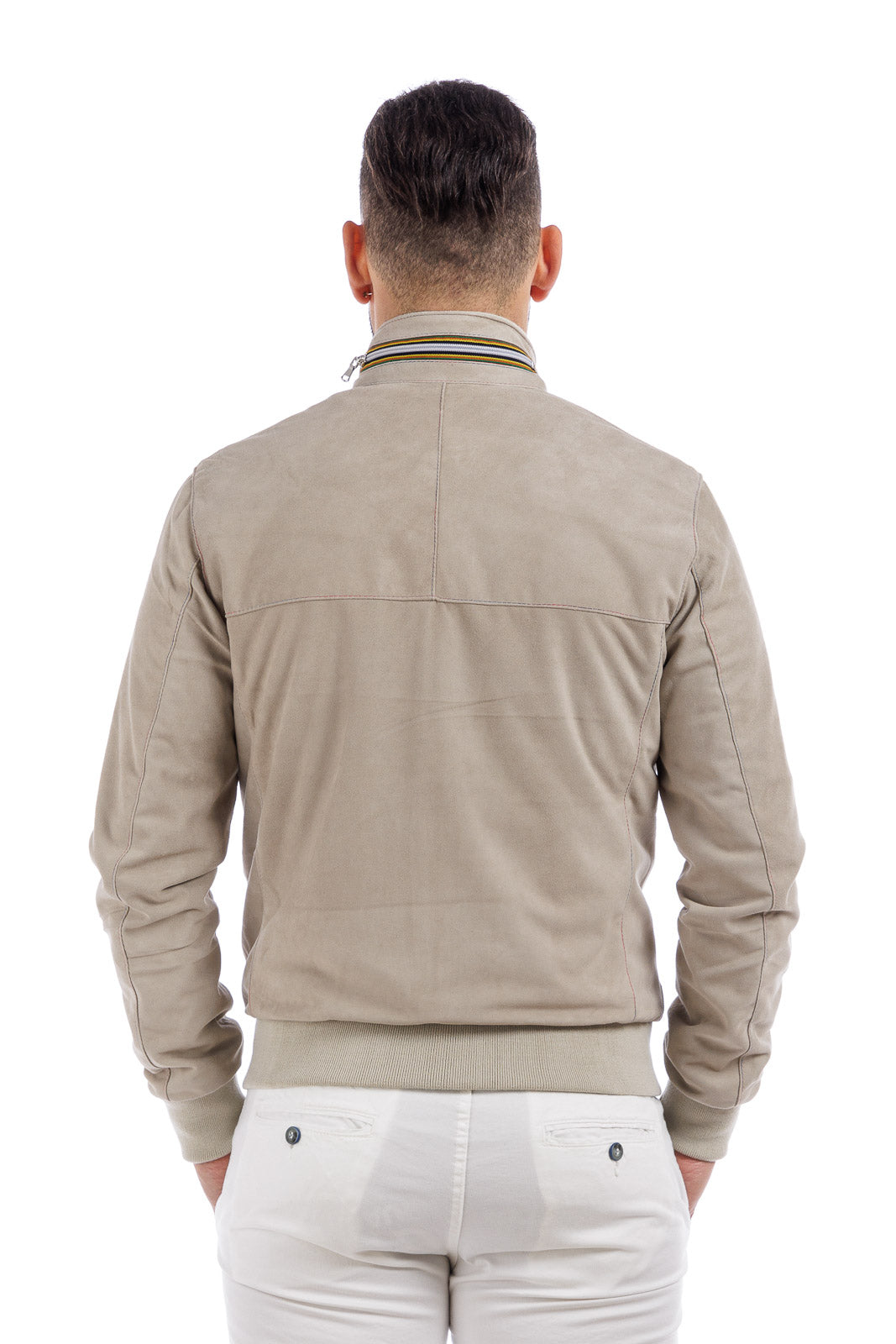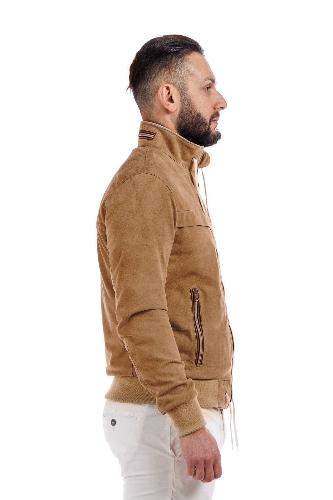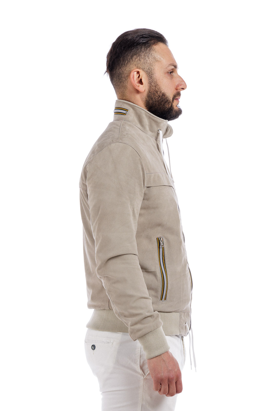 Bomber in camoscio uomo con bottoni e zip VAST biscotto