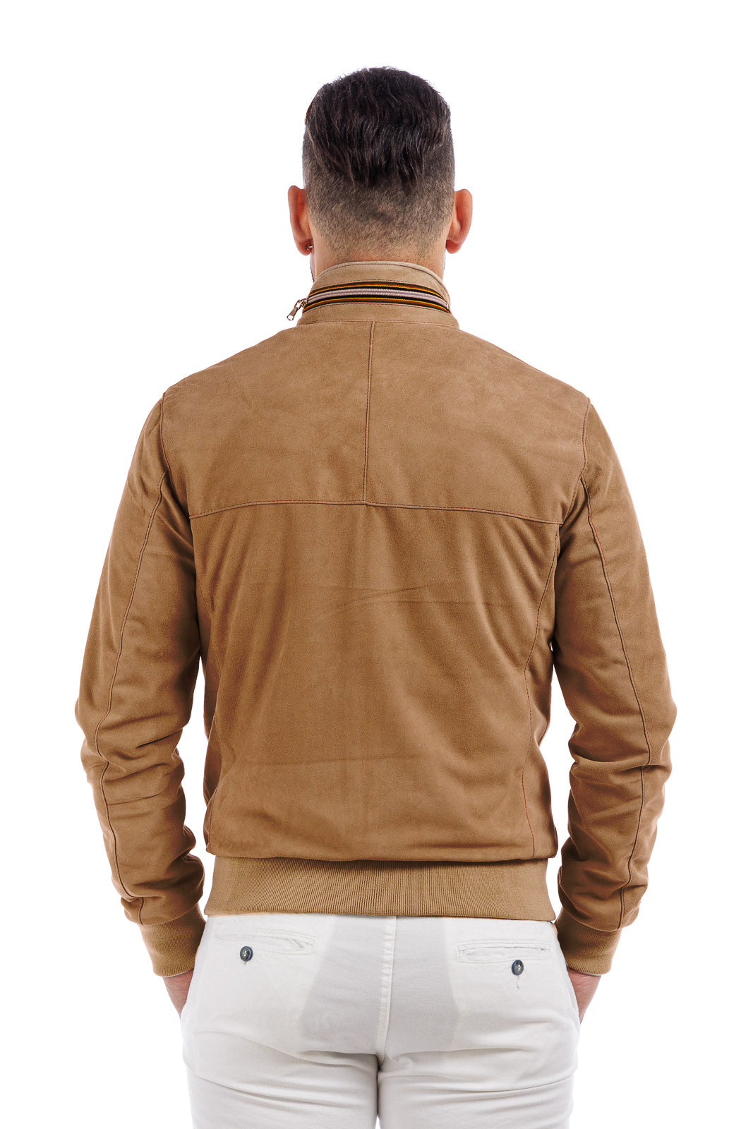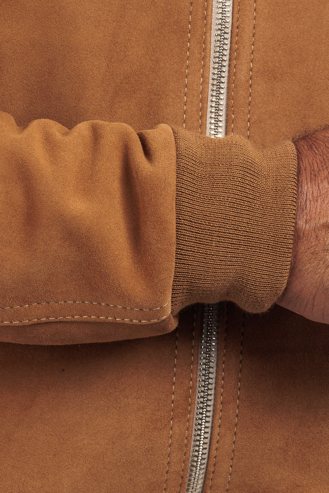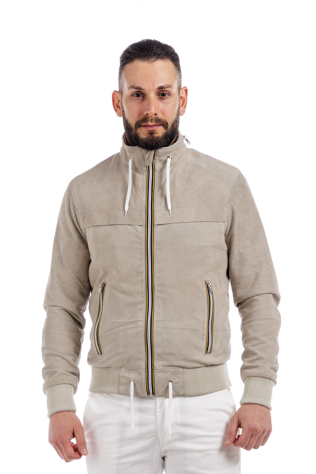 Bomber in camoscio uomo con bottoni e zip VAST biscotto