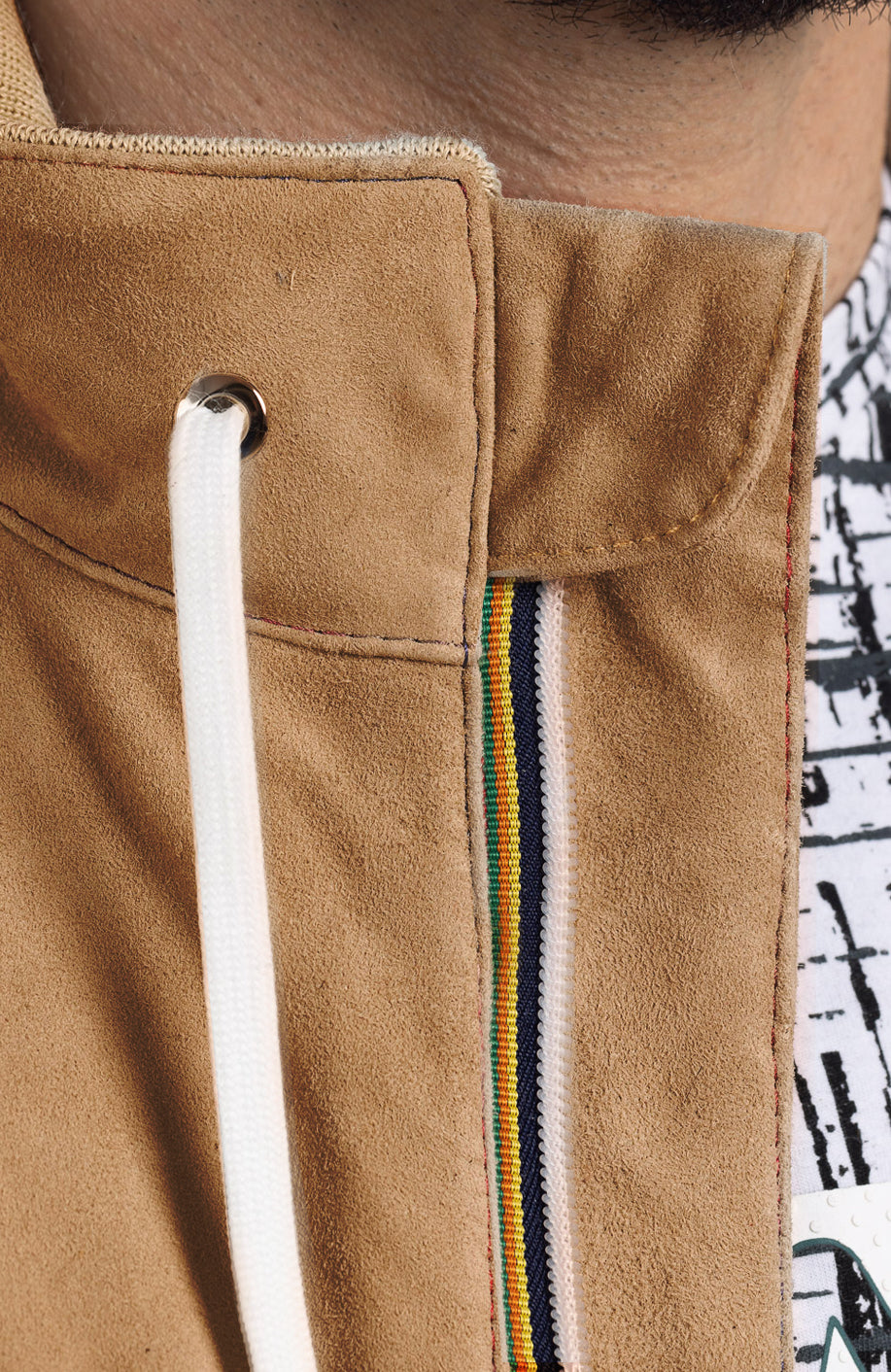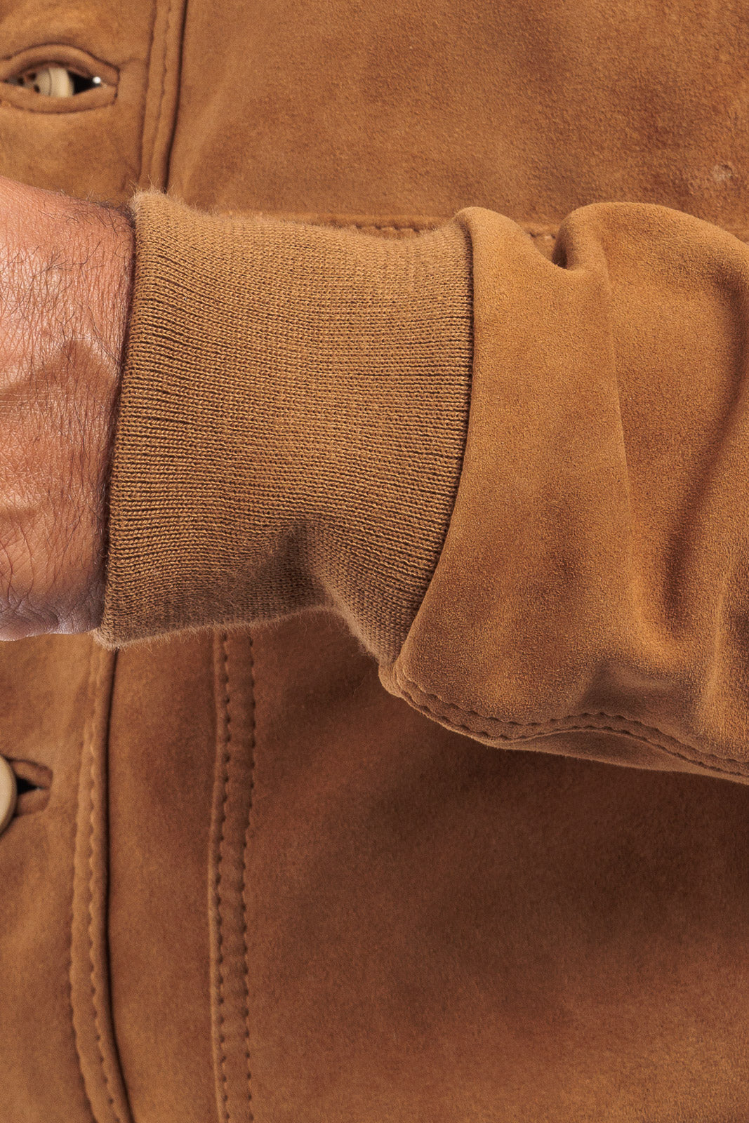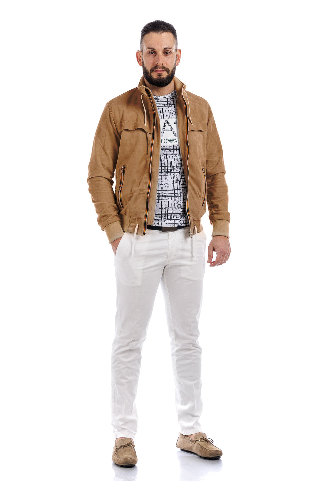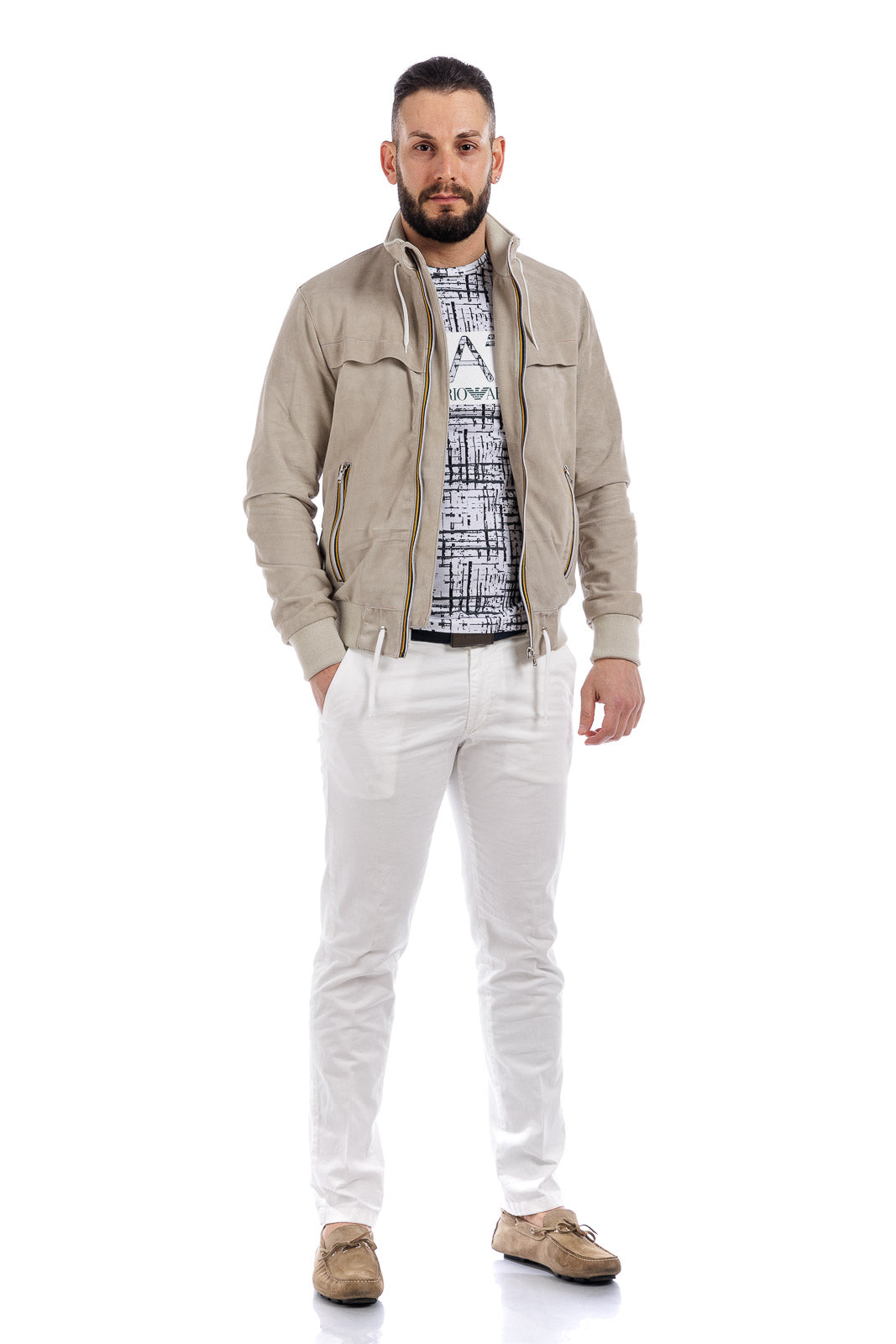 Bomber in camoscio uomo con bottoni e zip VAST biscotto