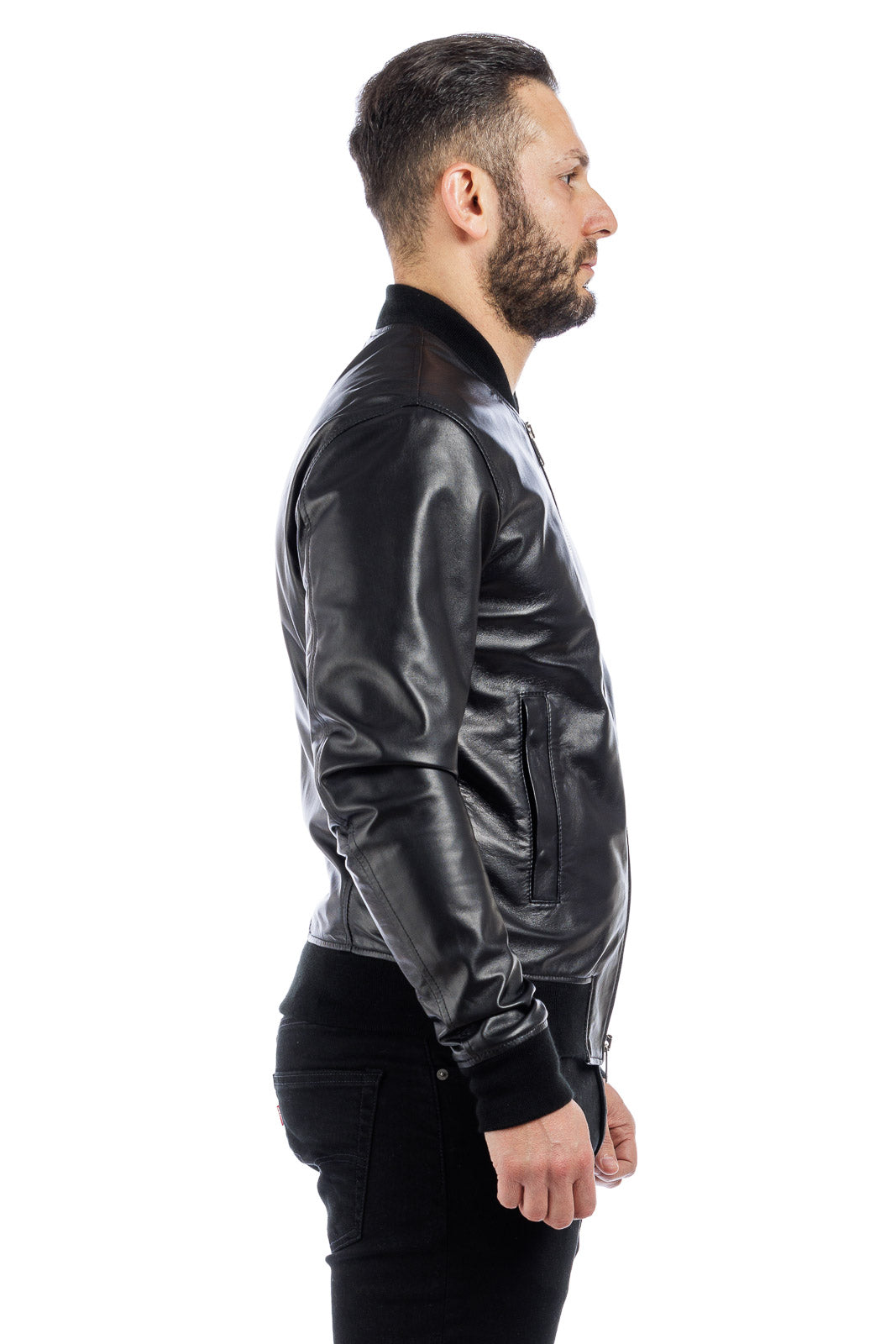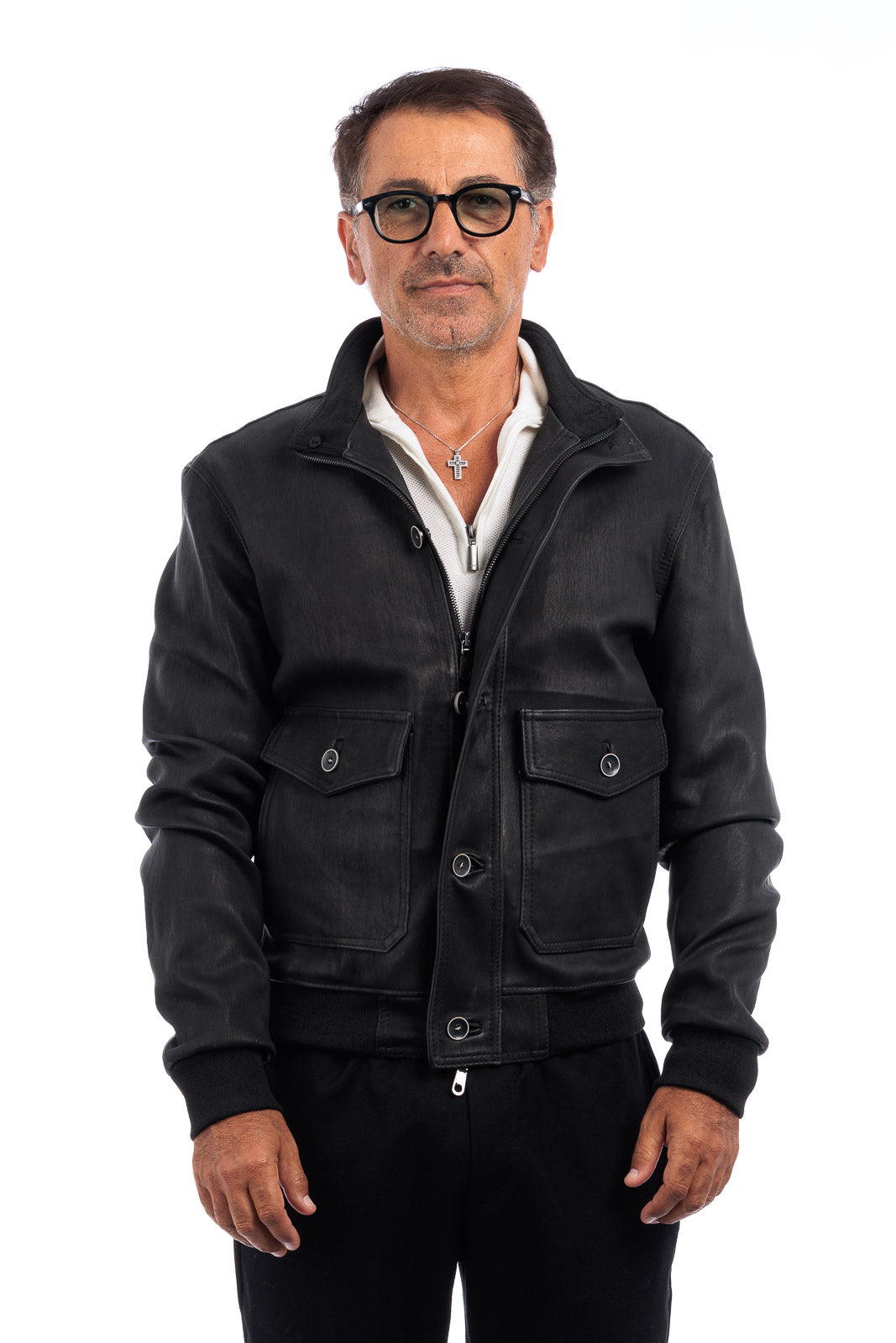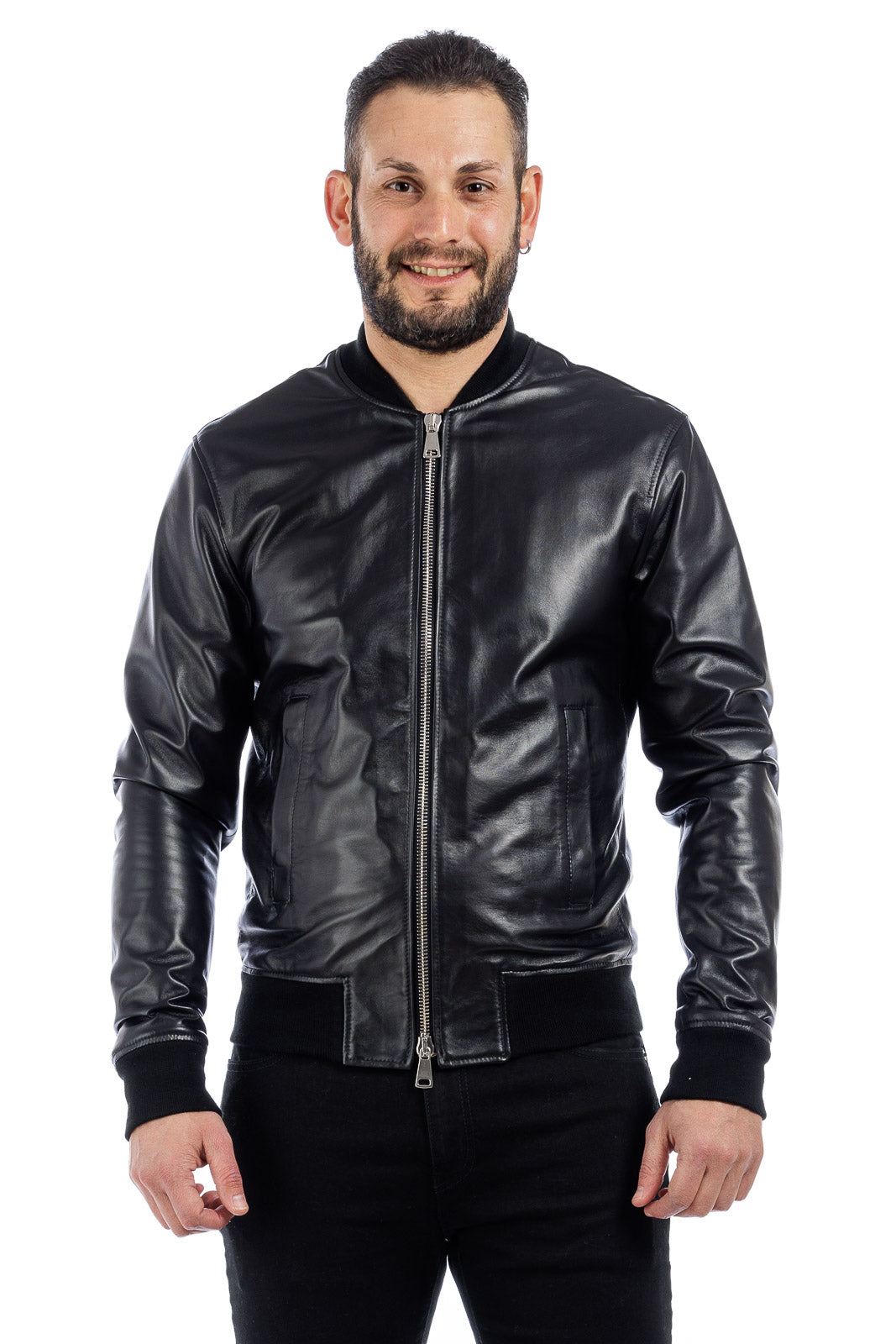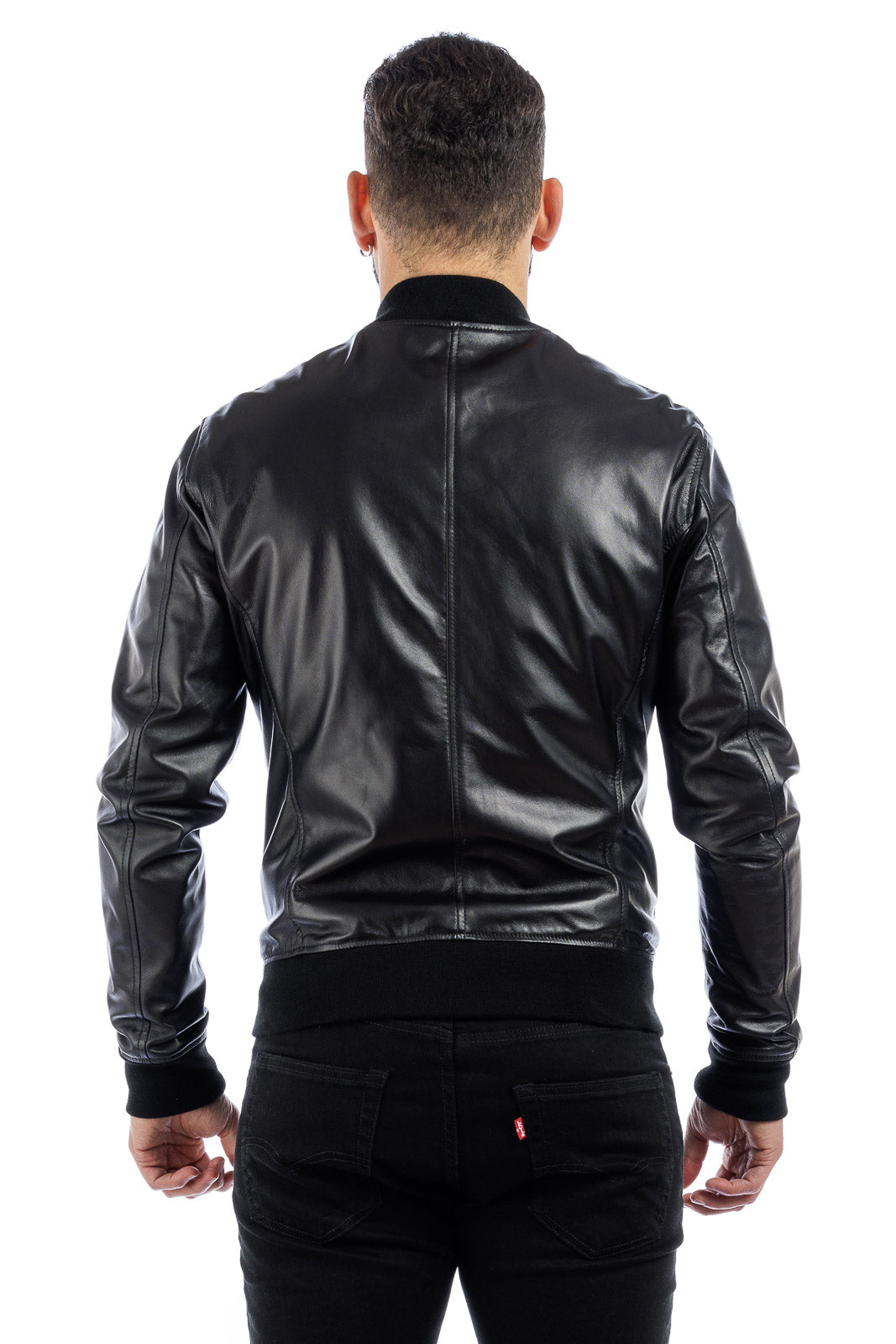 Bomber in pelle uomo con bottoni e zip VAST elasticizzato nero