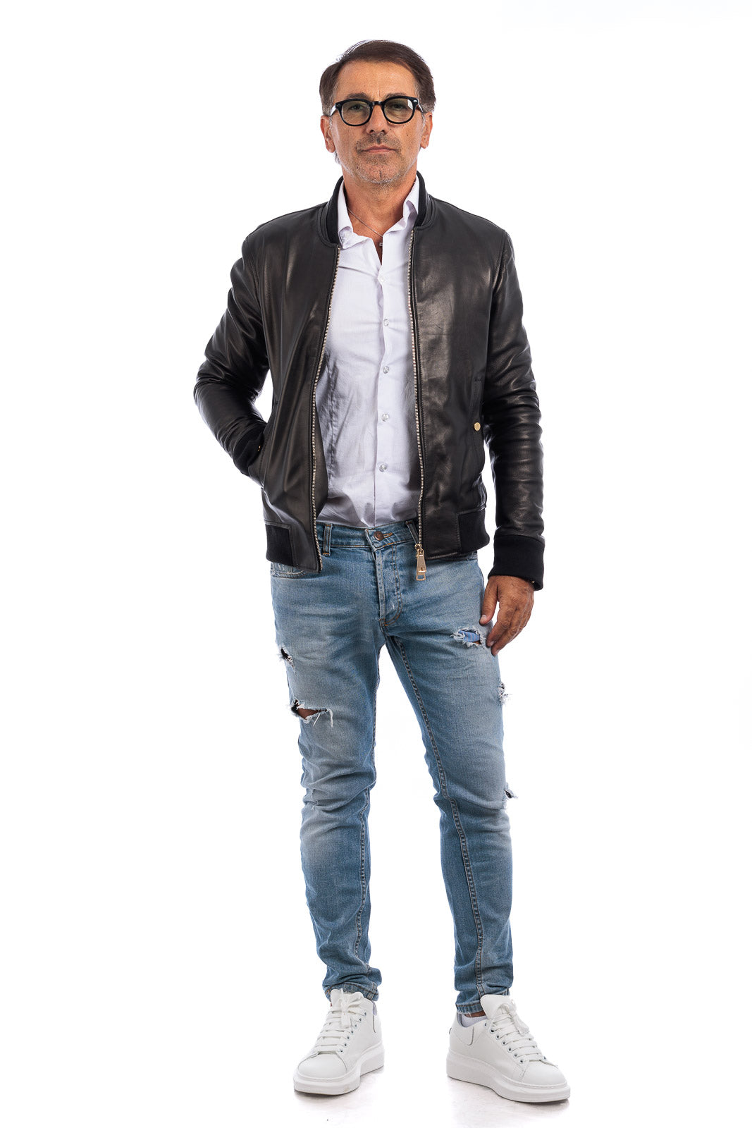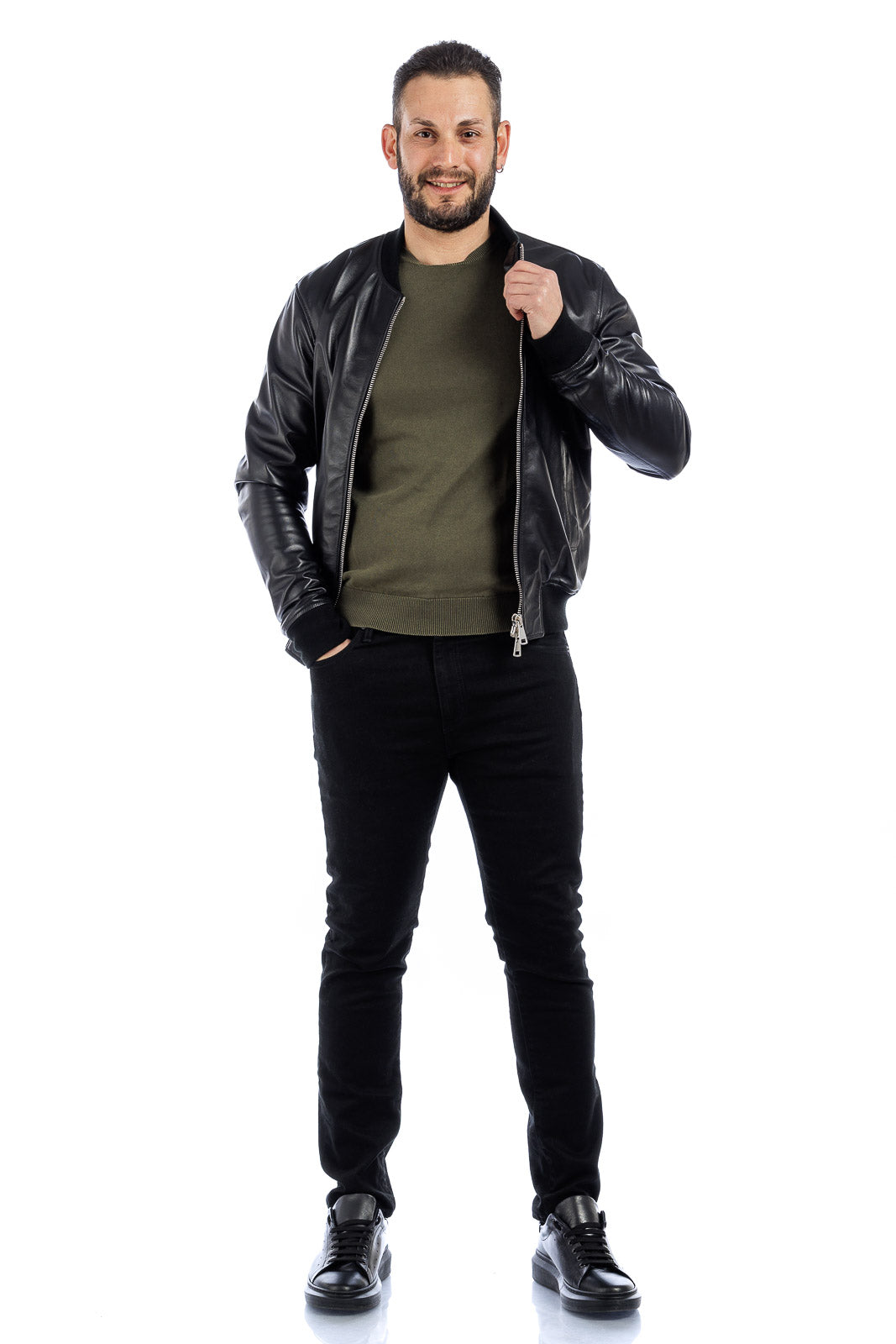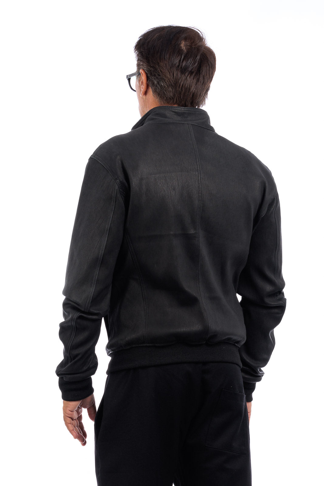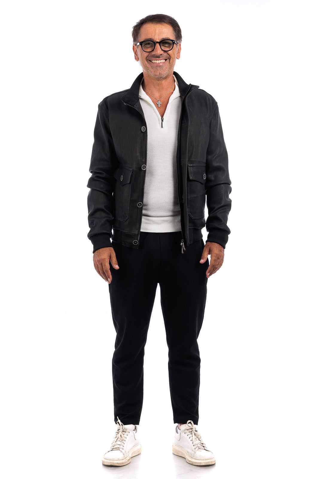 Bomber in pelle uomo con bottoni e zip VAST elasticizzato nero