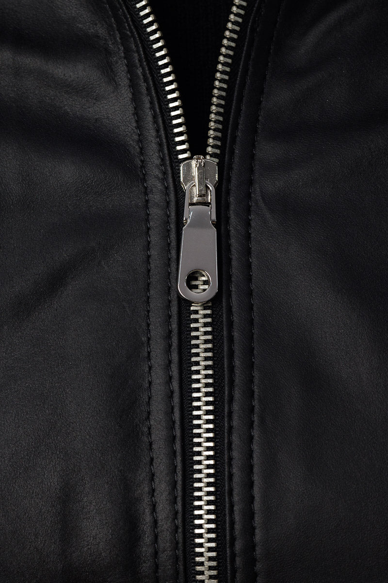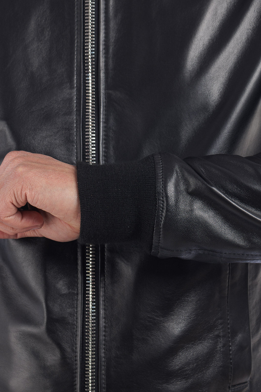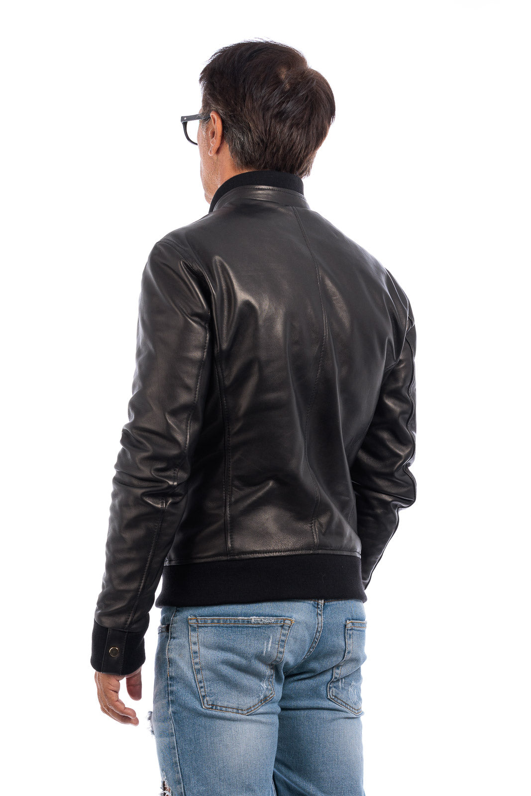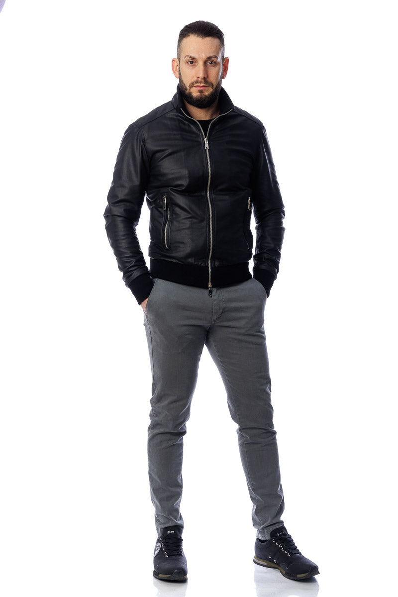 Bomber in pelle uomo con bottoni e zip VAST elasticizzato nero