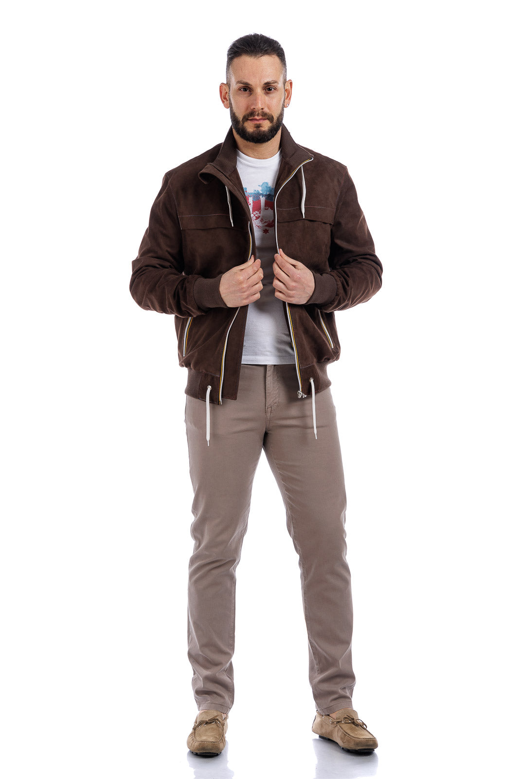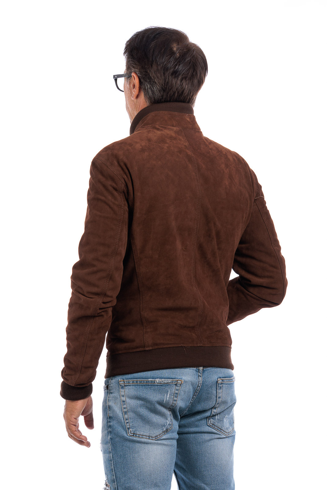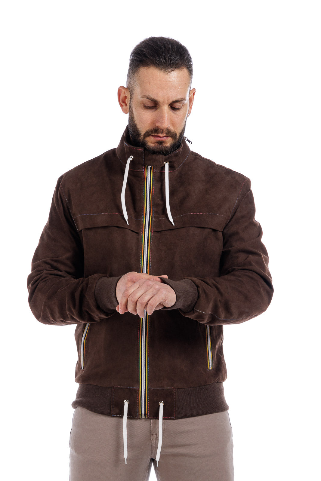 Bomber in camoscio di renna uomo con zip NUV testa di moro