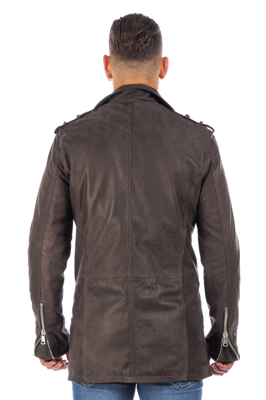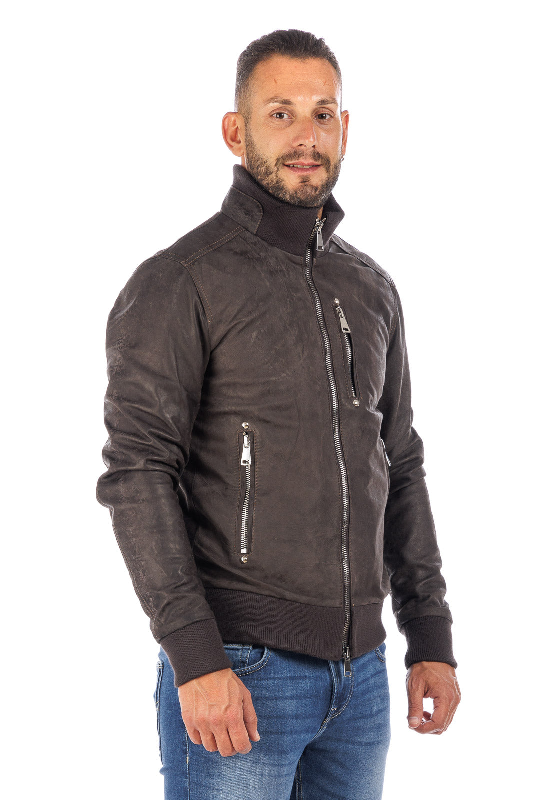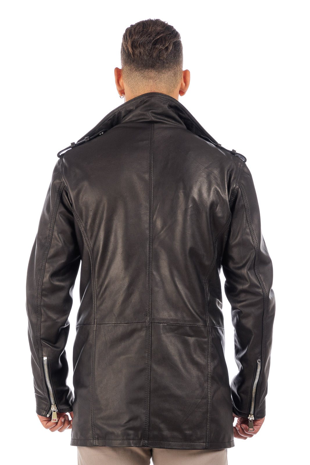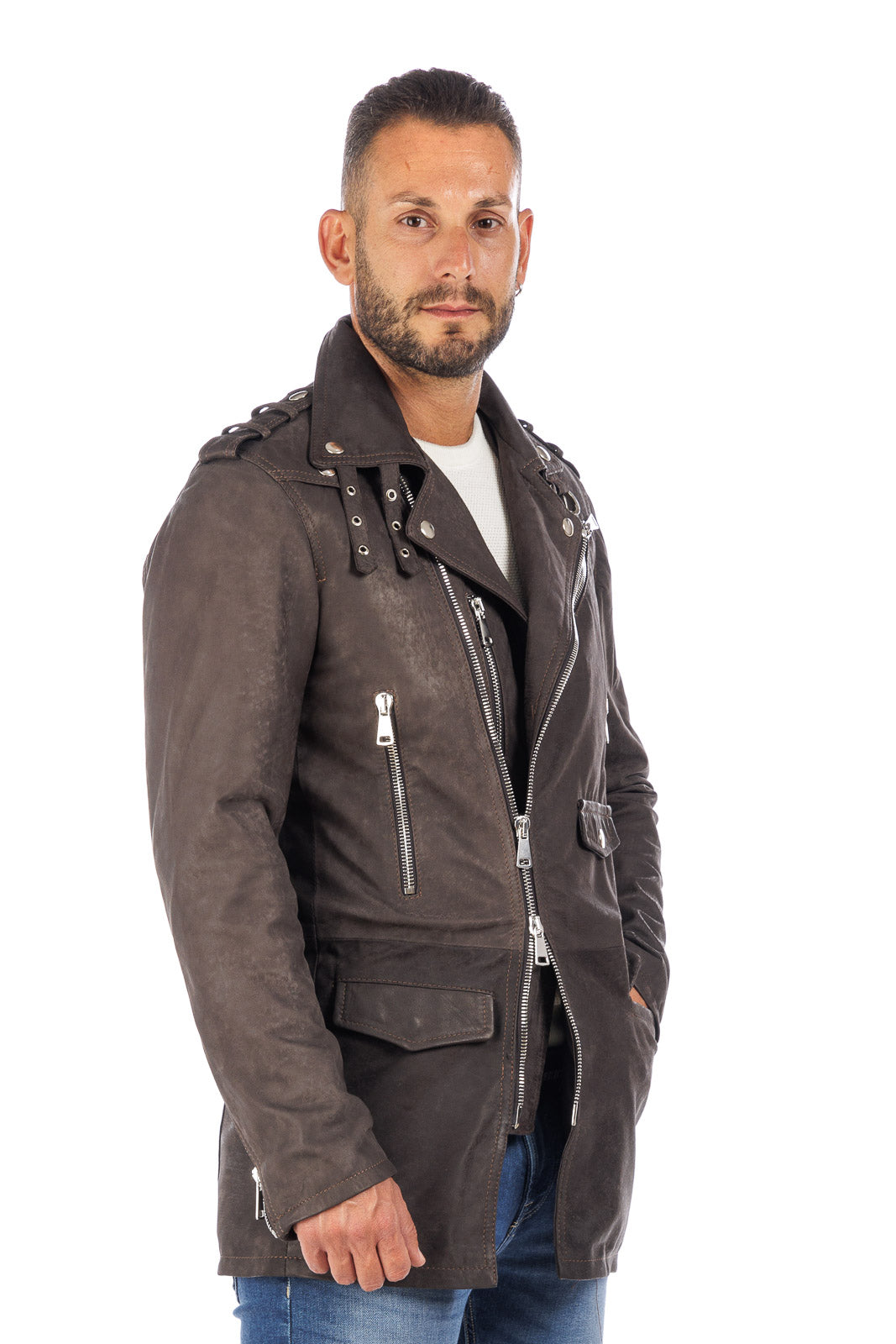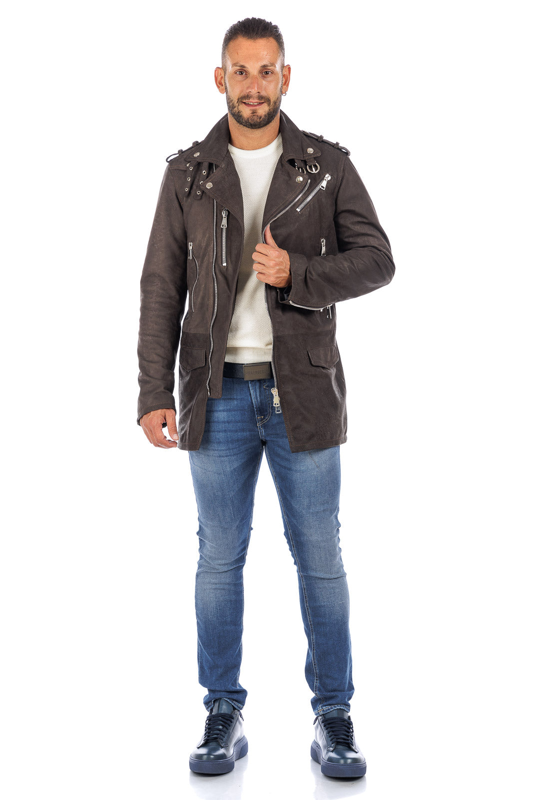 Cappottino chiodo in vera pelle uomo con zip testa di moro