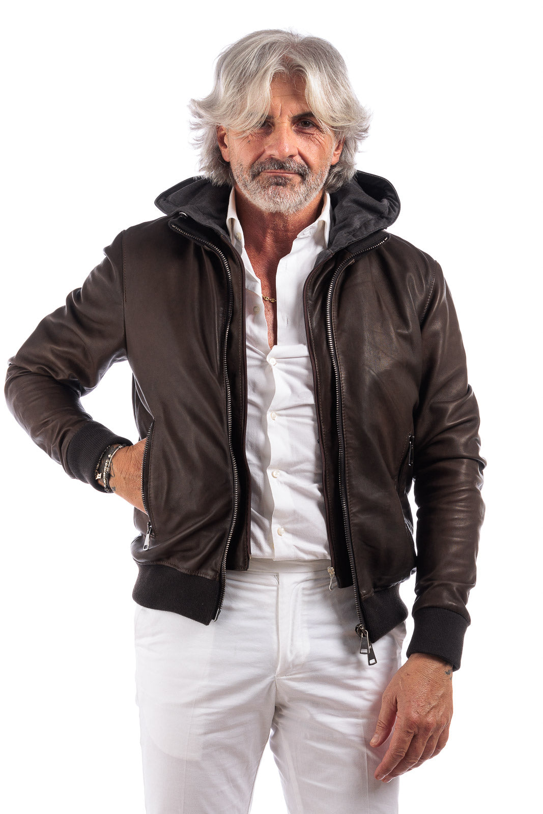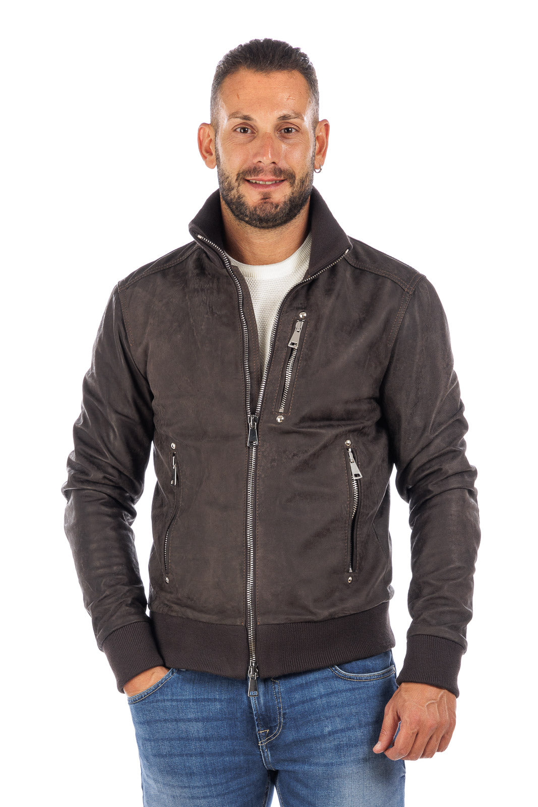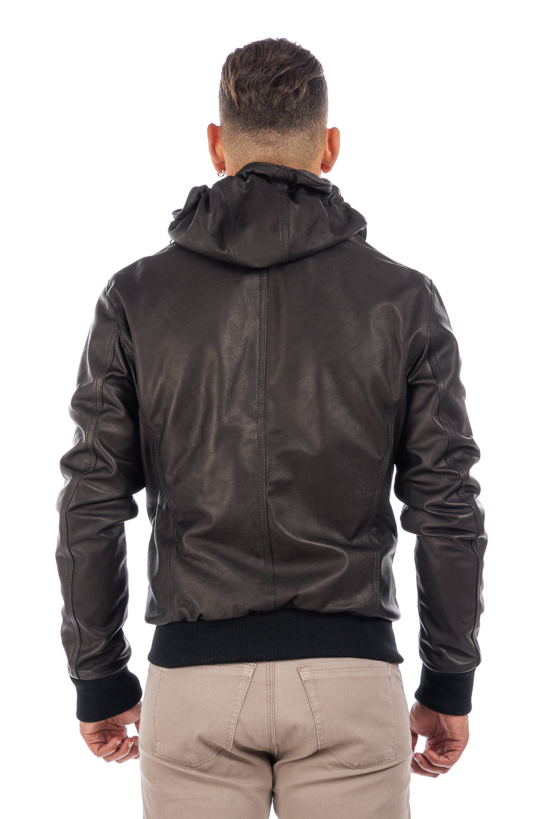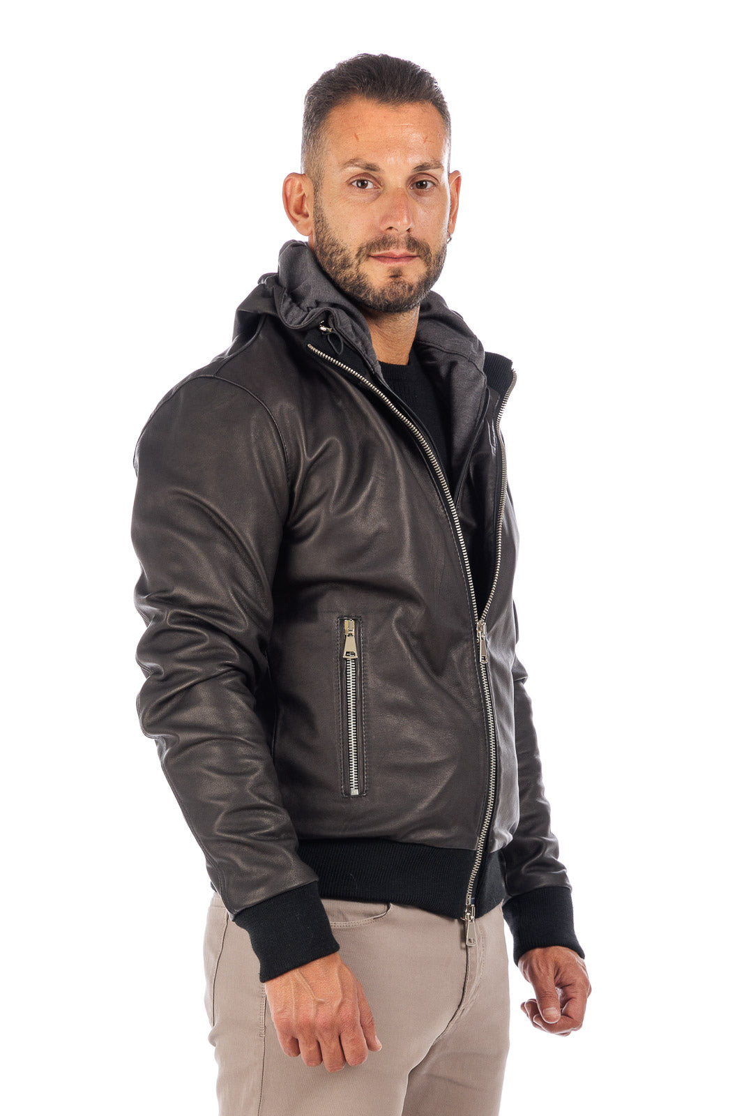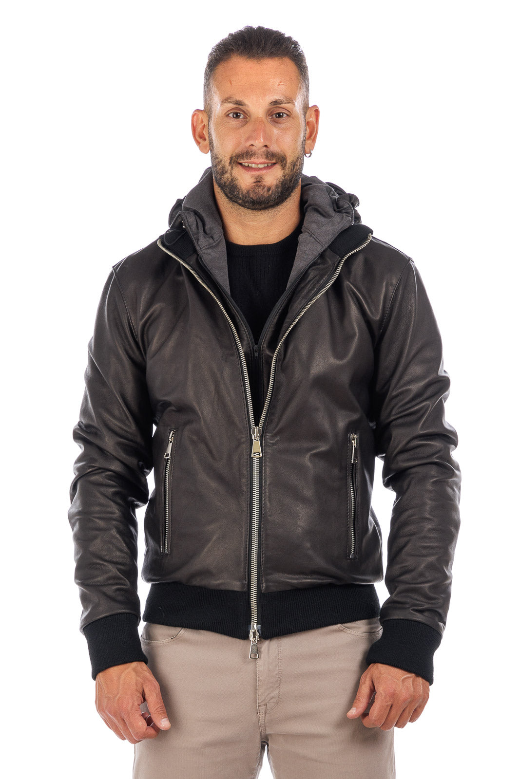 Cappottino chiodo in vera pelle uomo con zip testa di moro