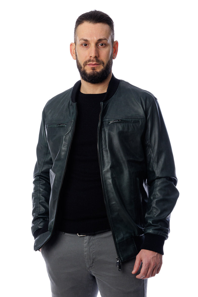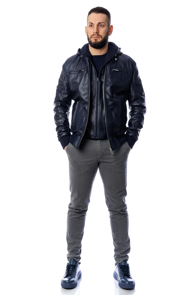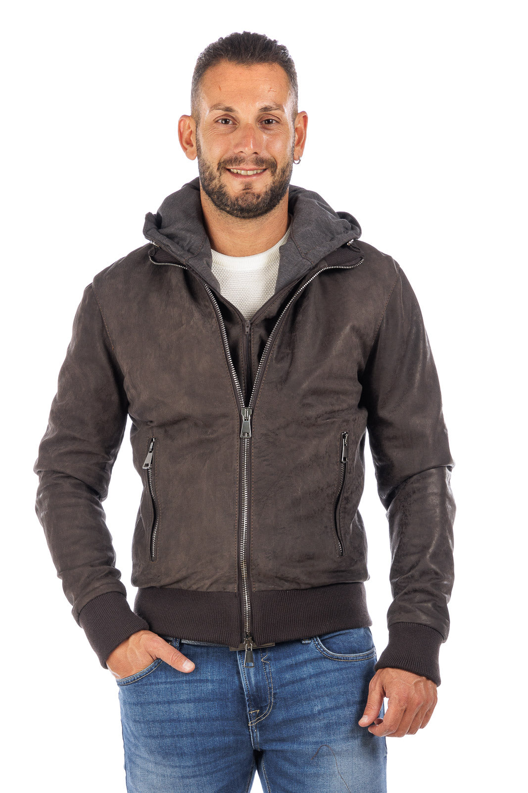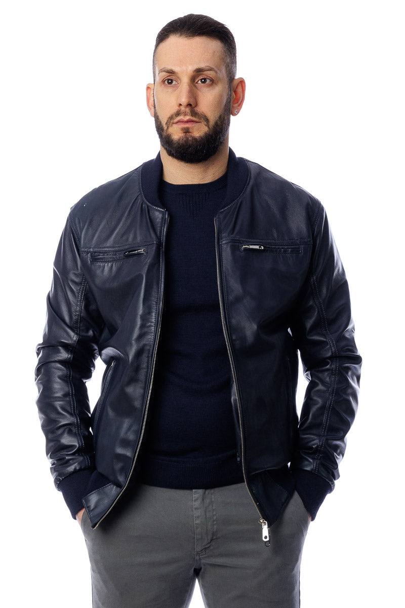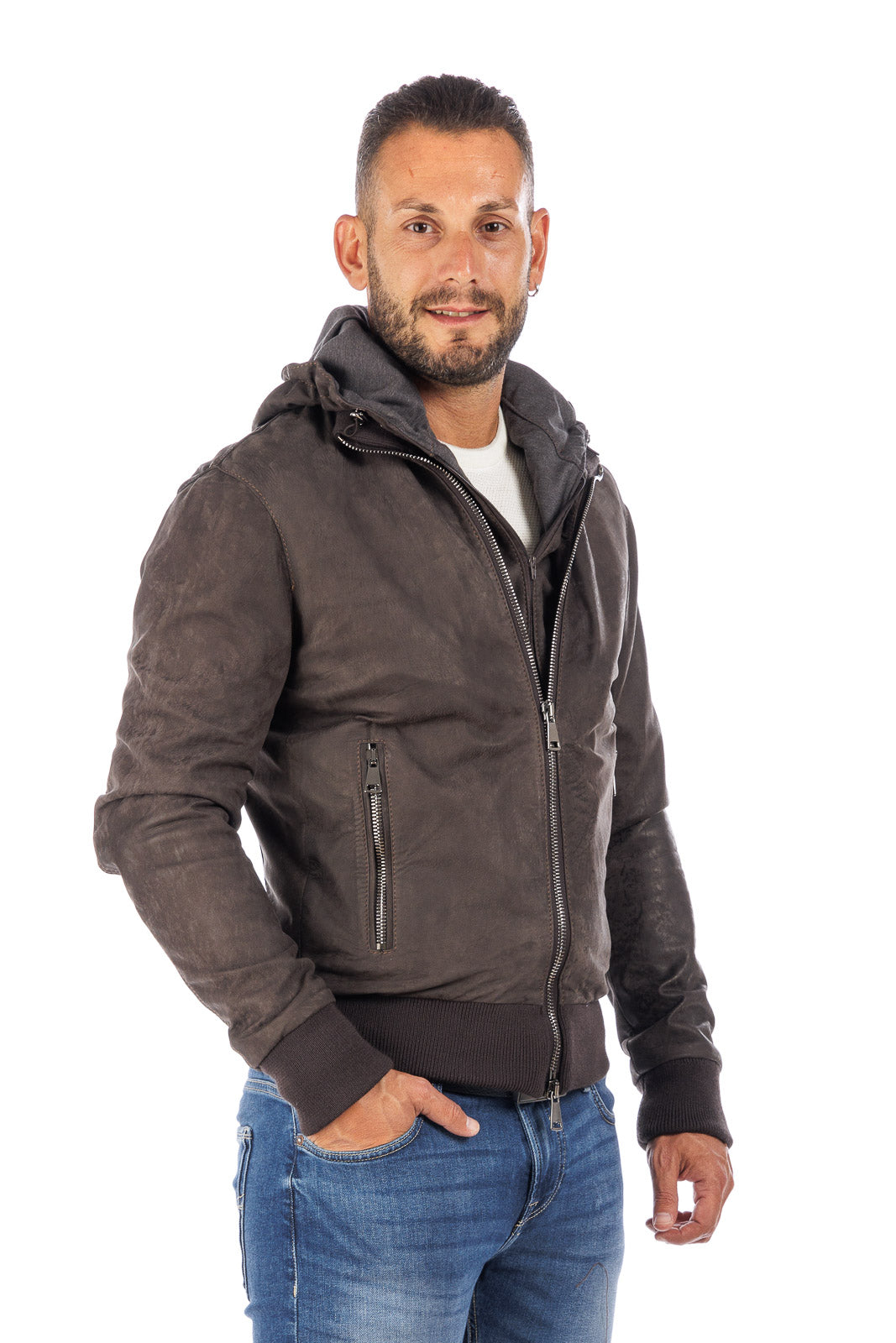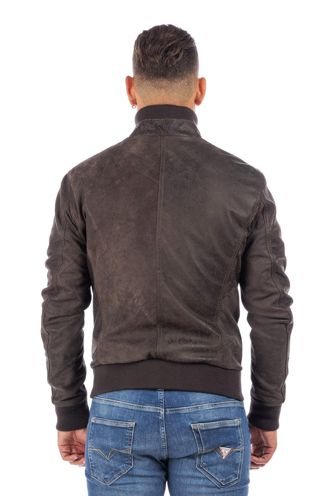 Cappottino chiodo in vera pelle uomo con zip testa di moro