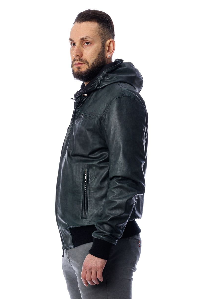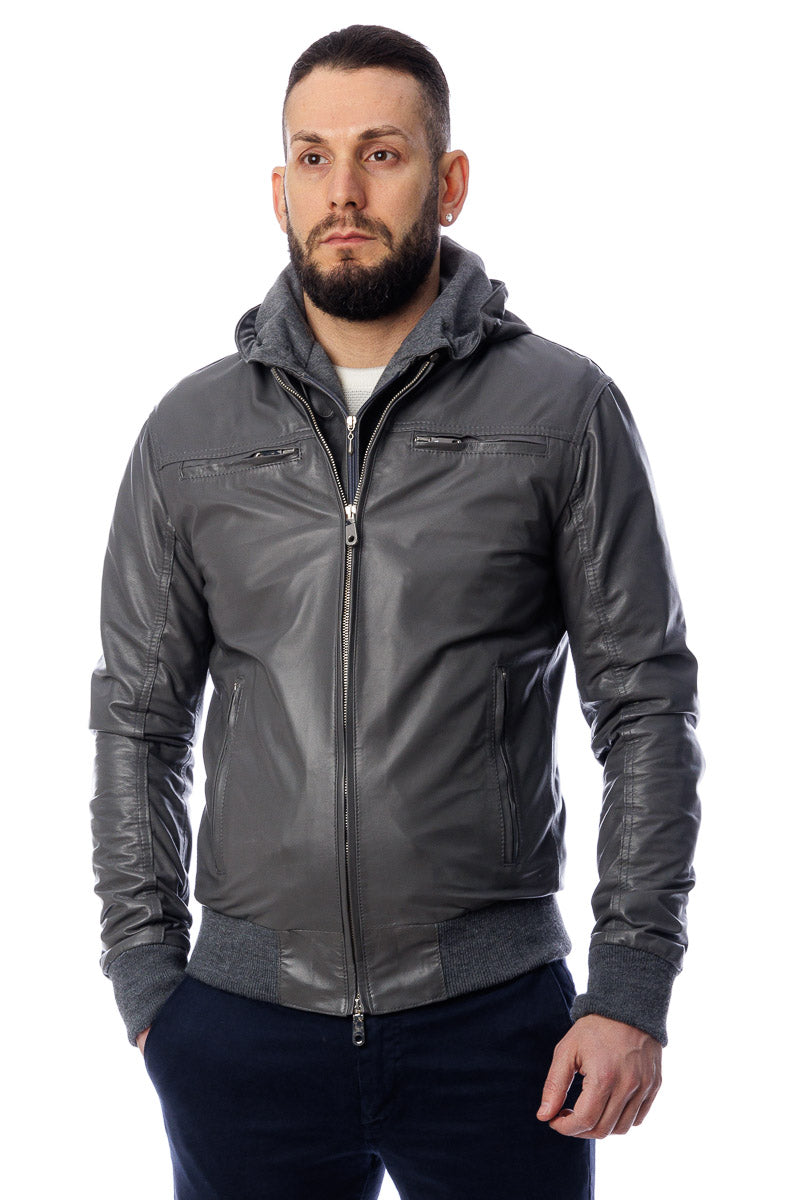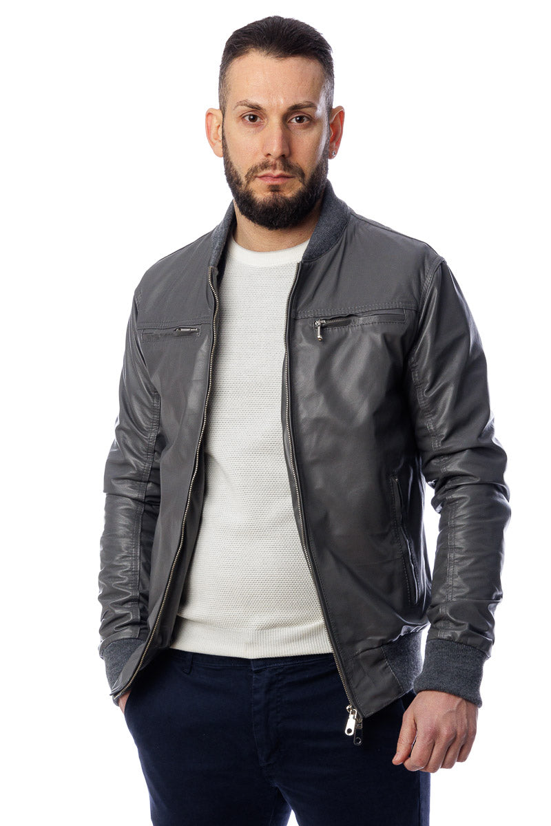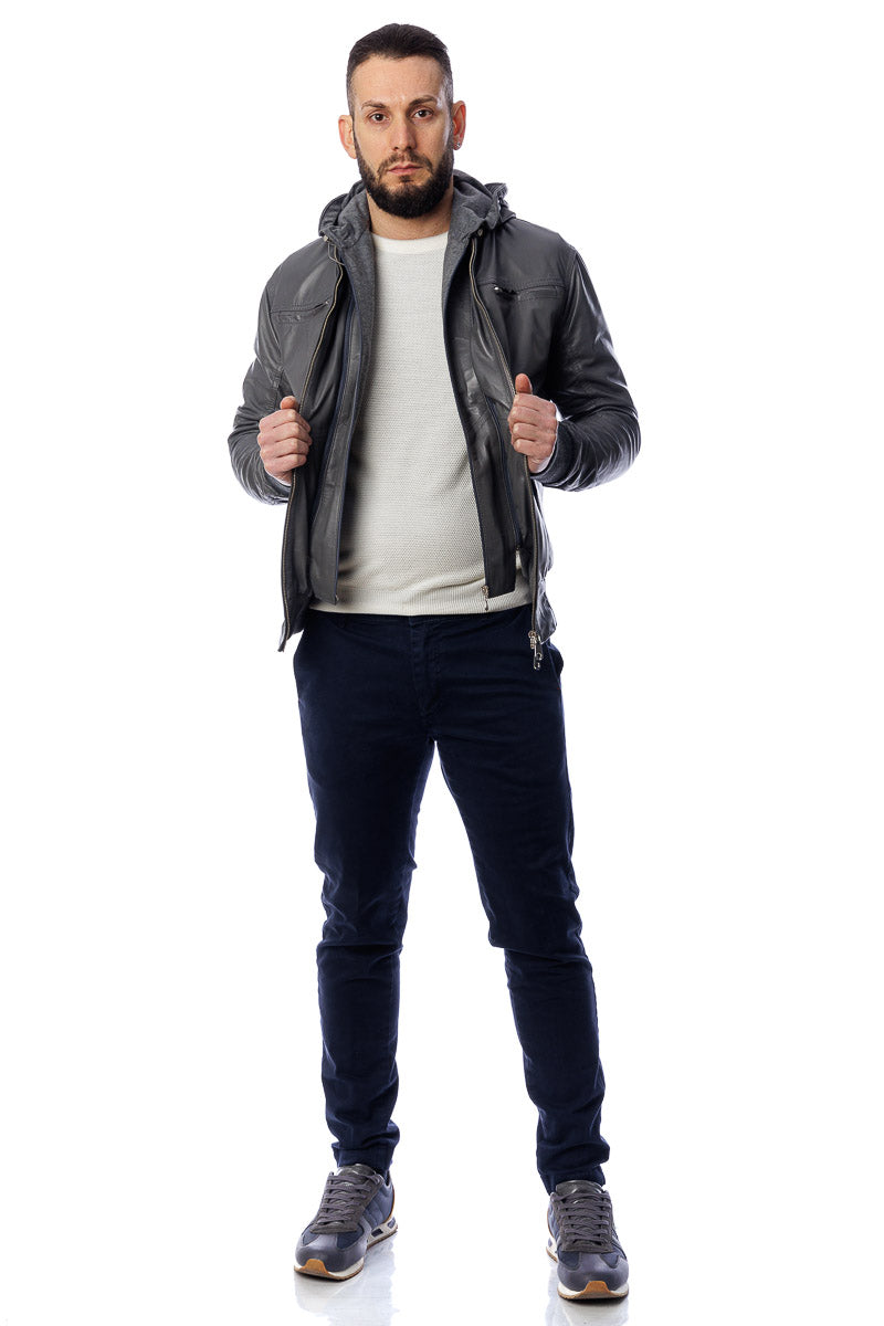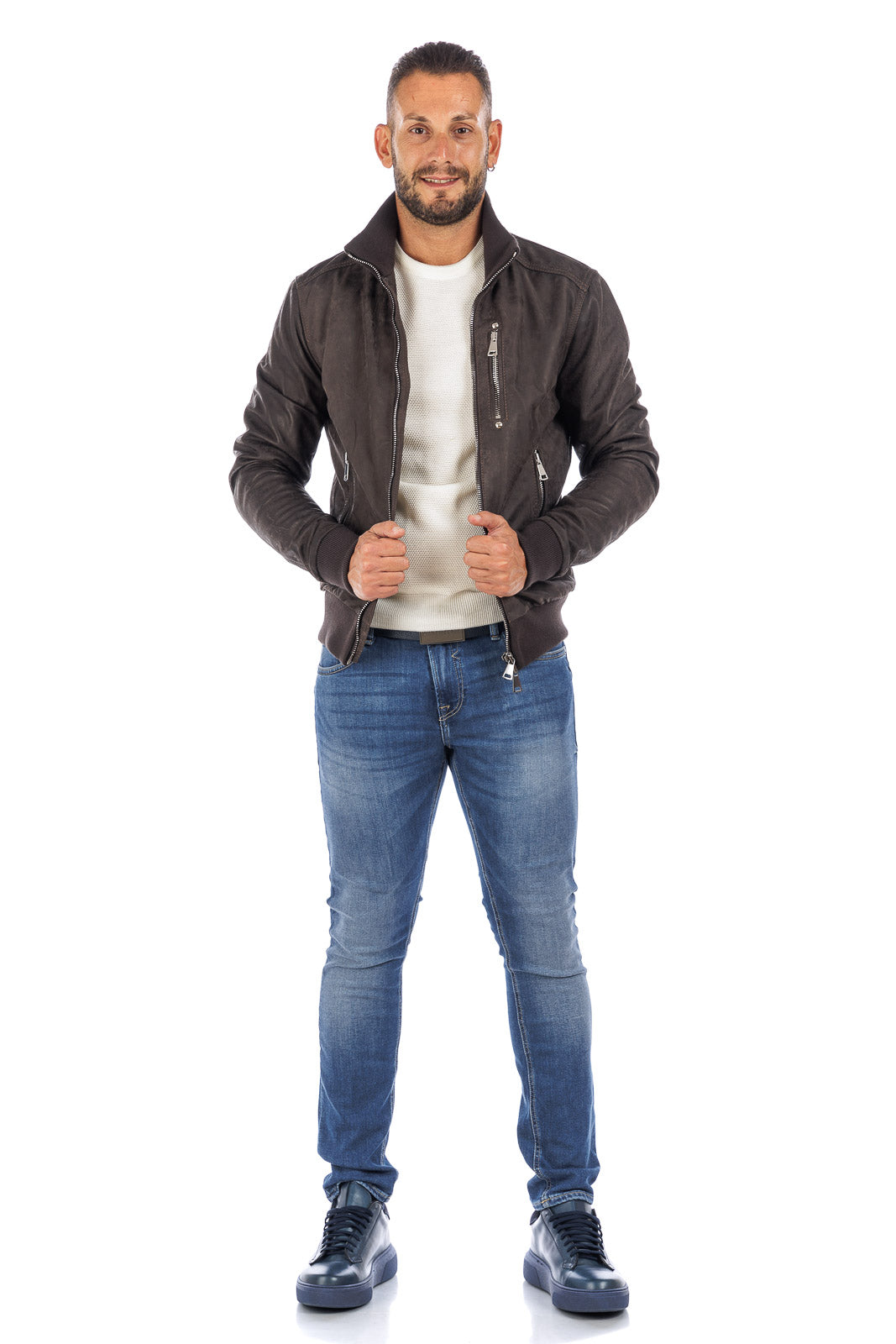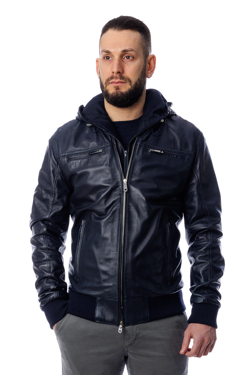Cappottino chiodo in vera pelle uomo con zip testa di moro