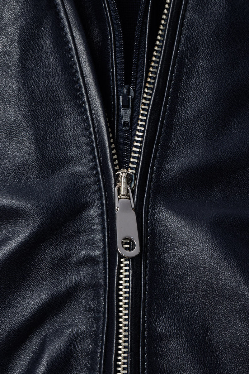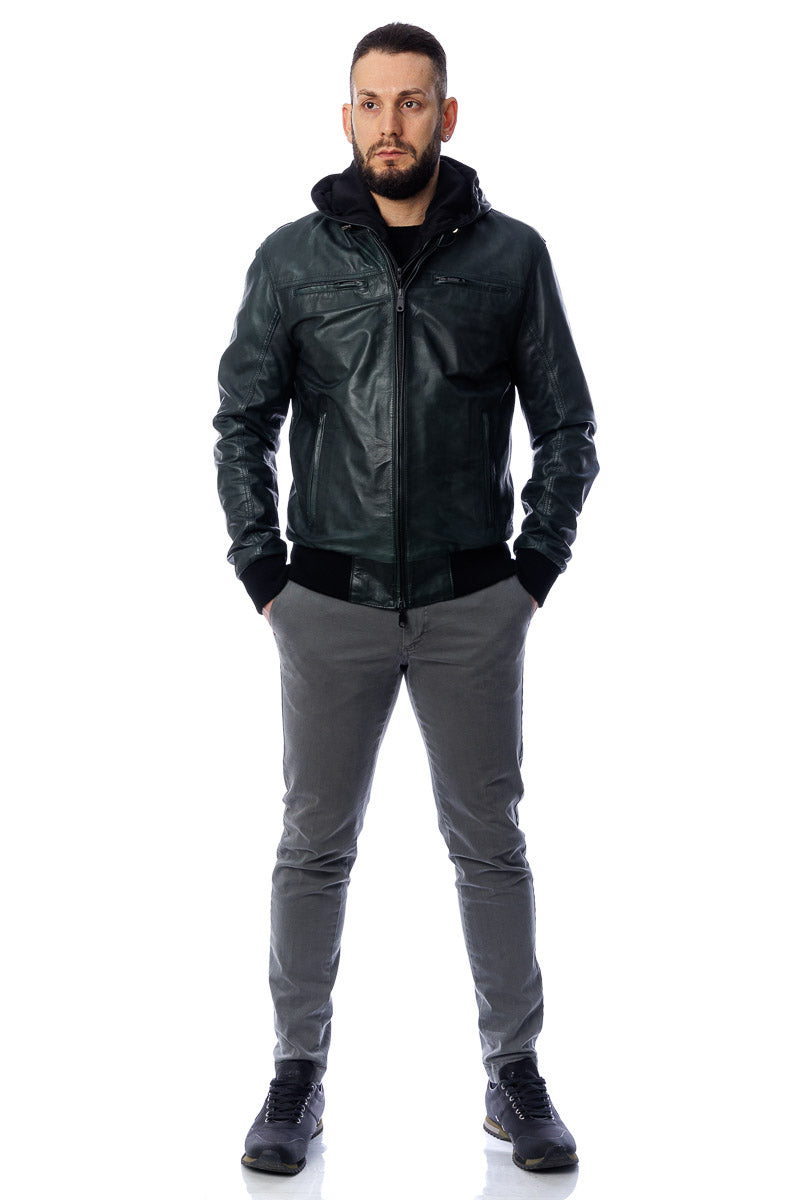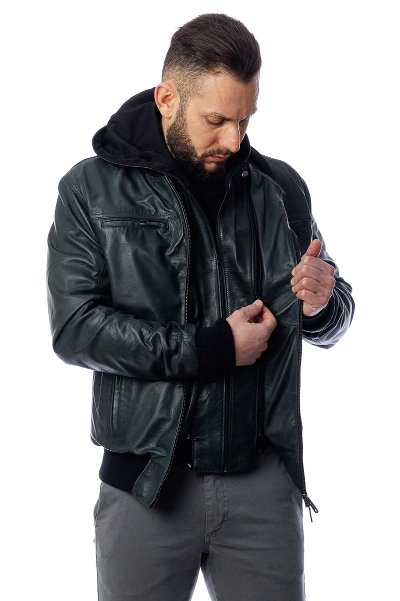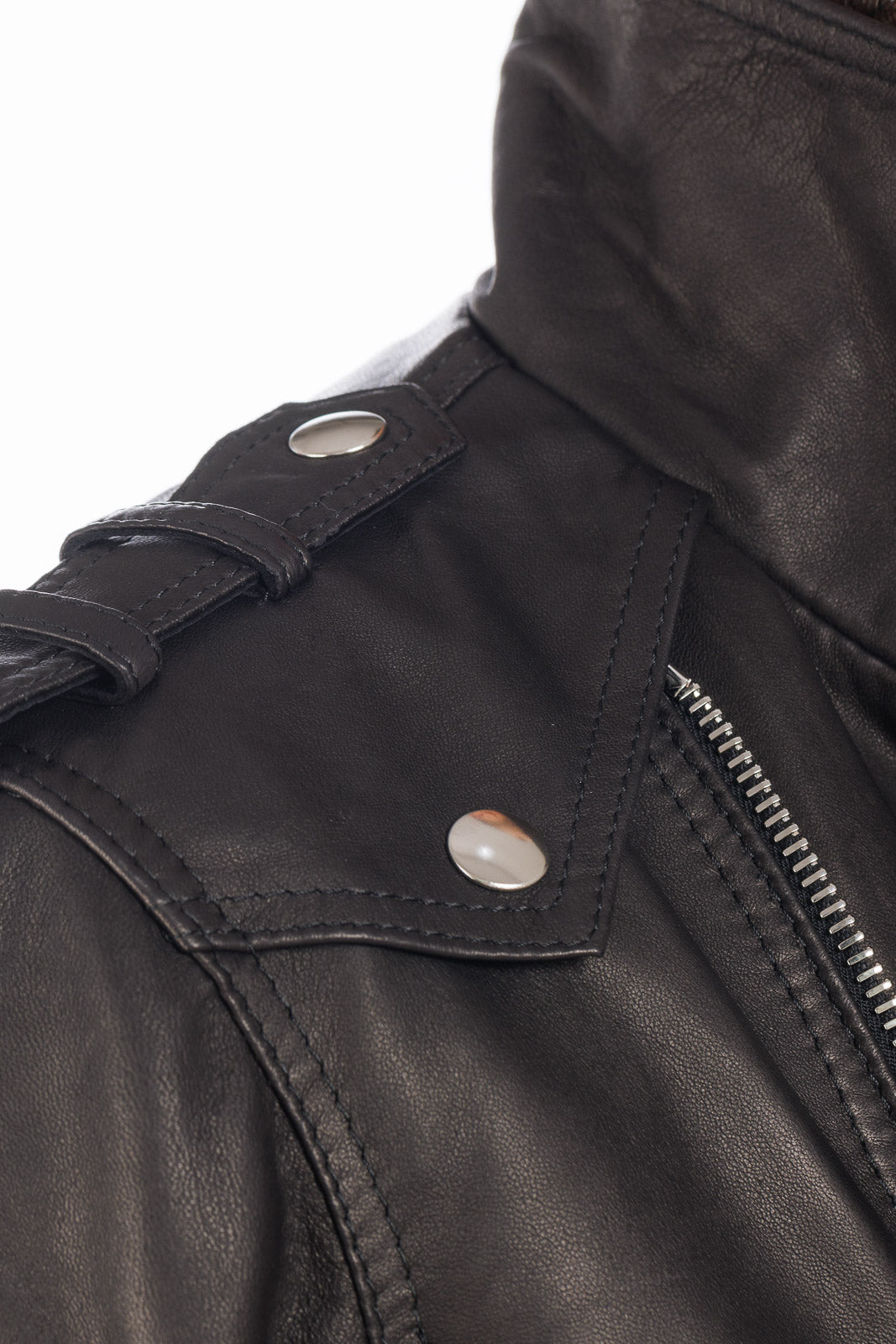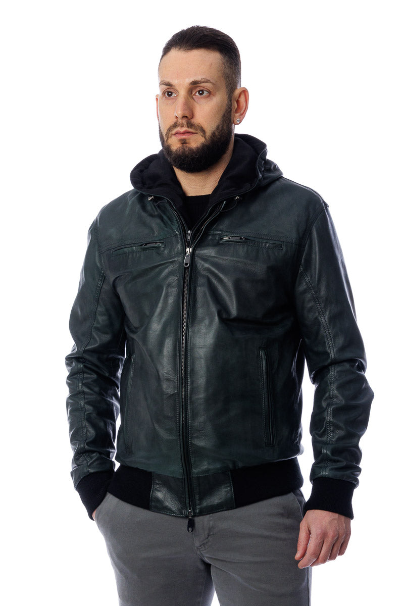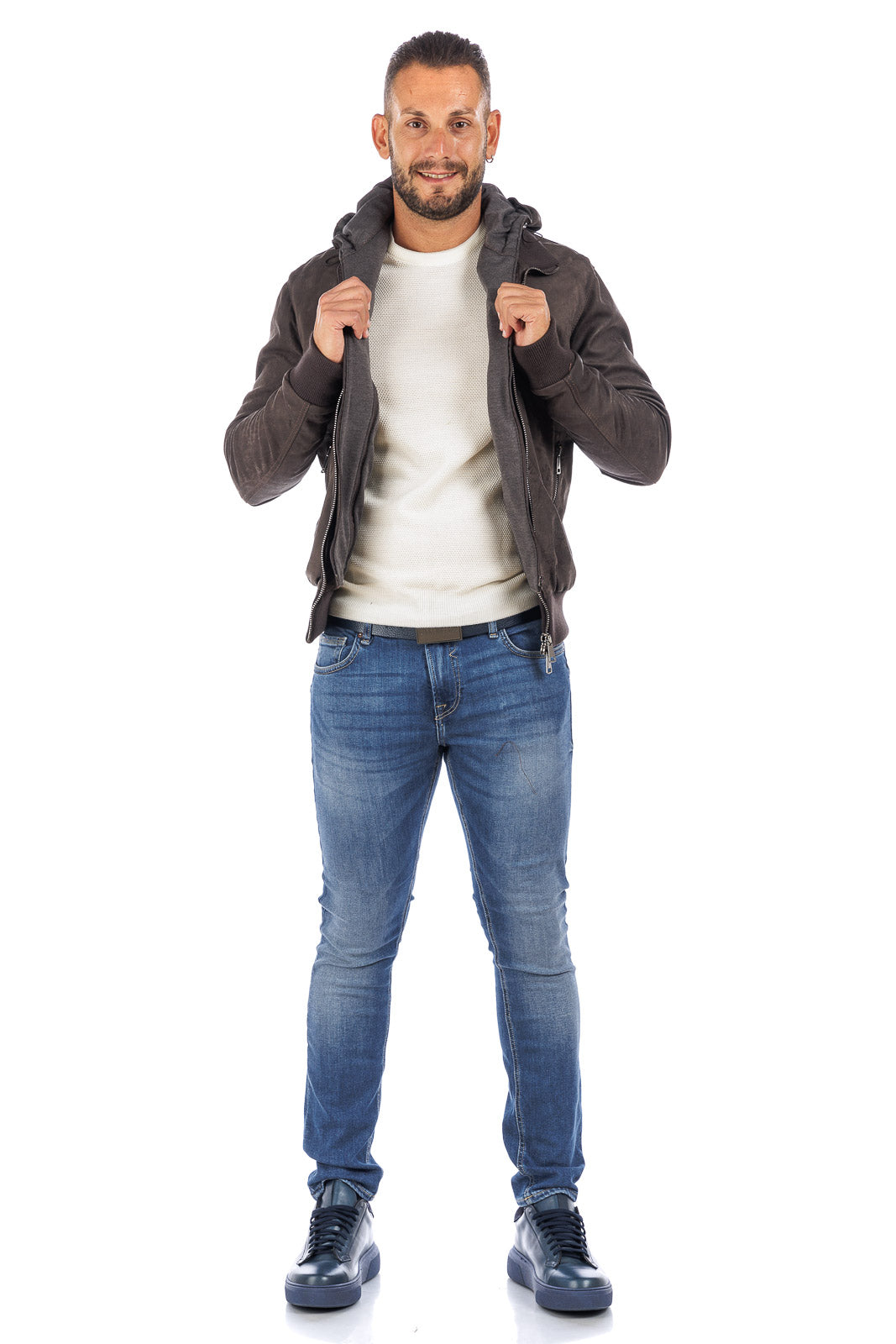 Cappottino chiodo in vera pelle uomo con zip testa di moro