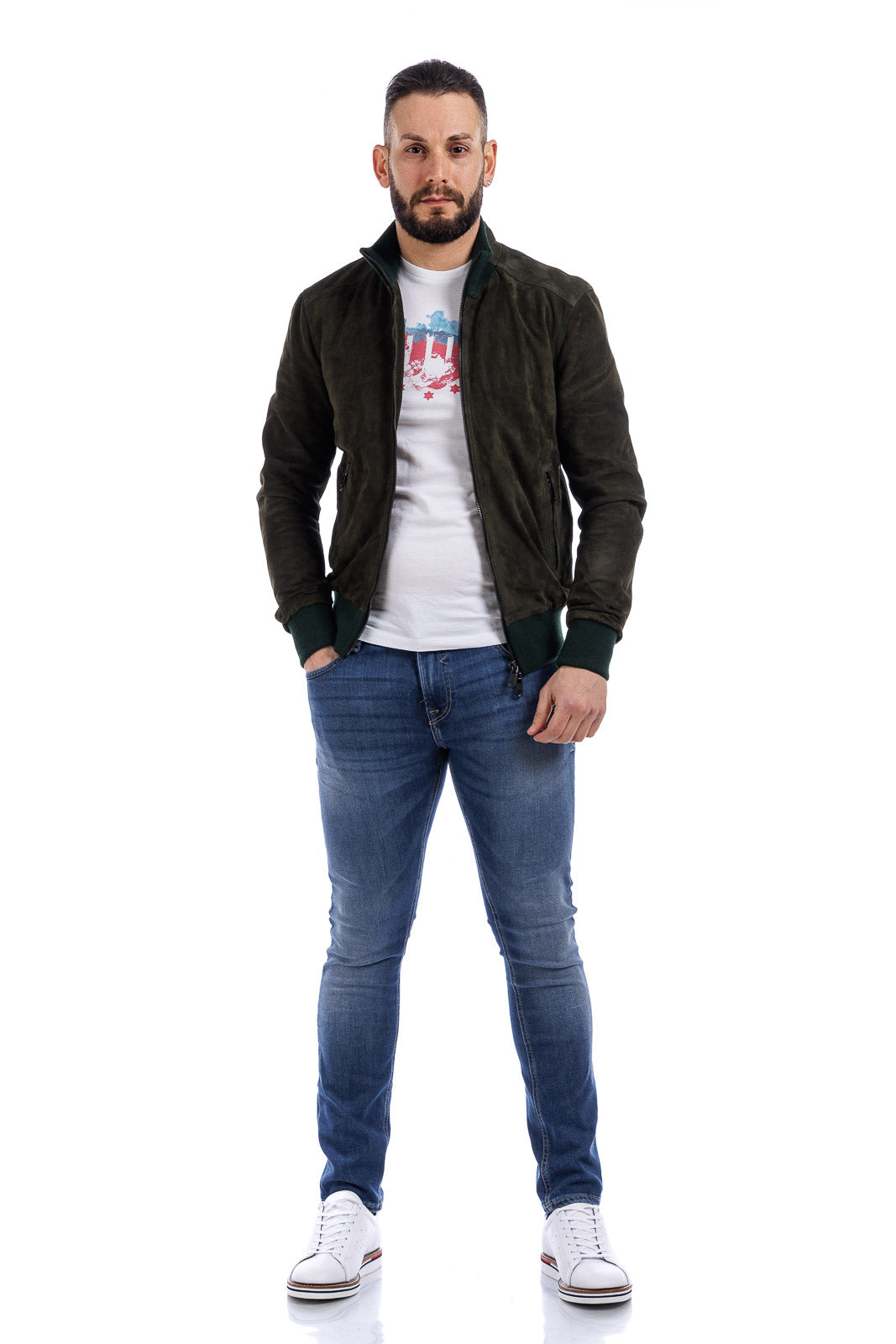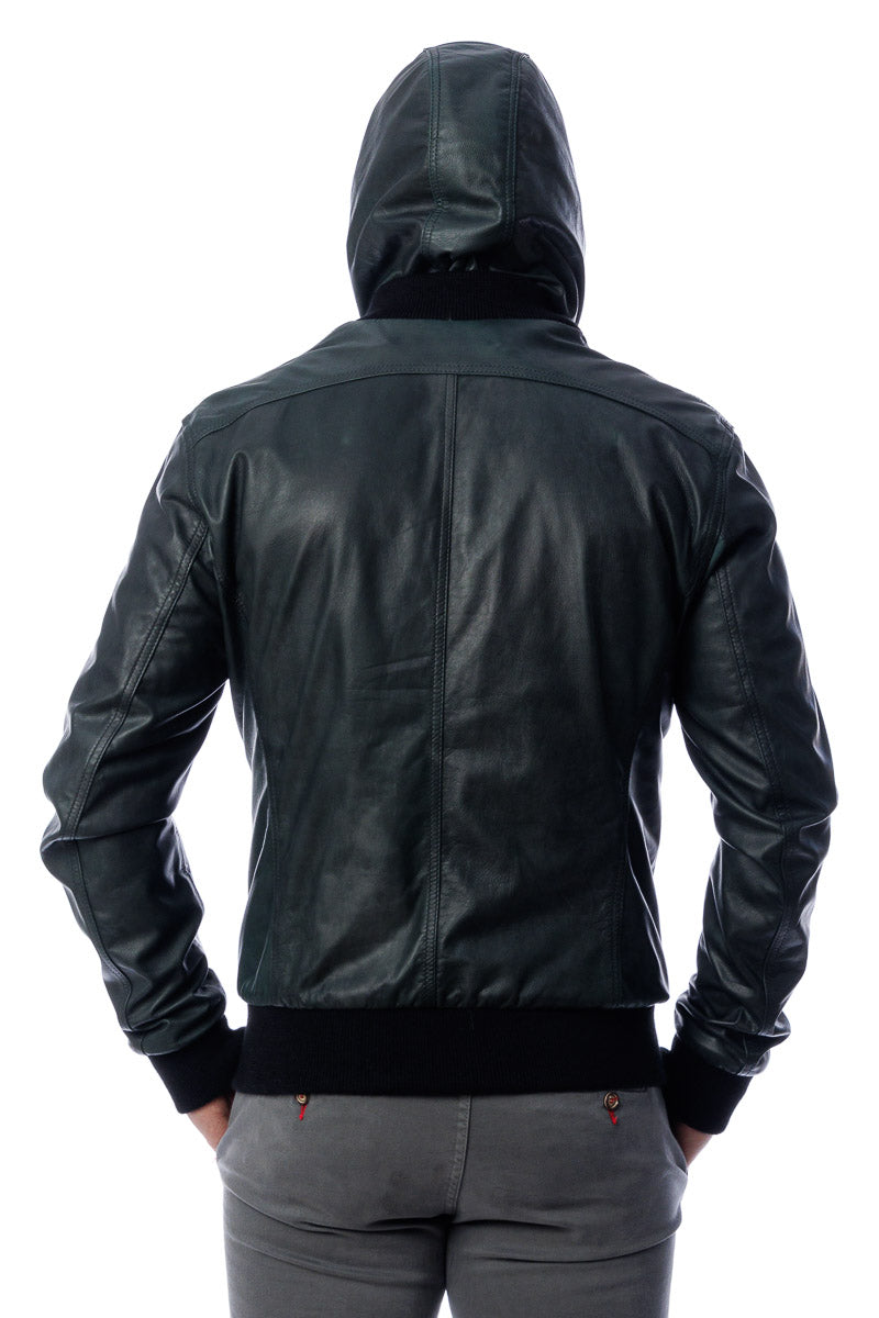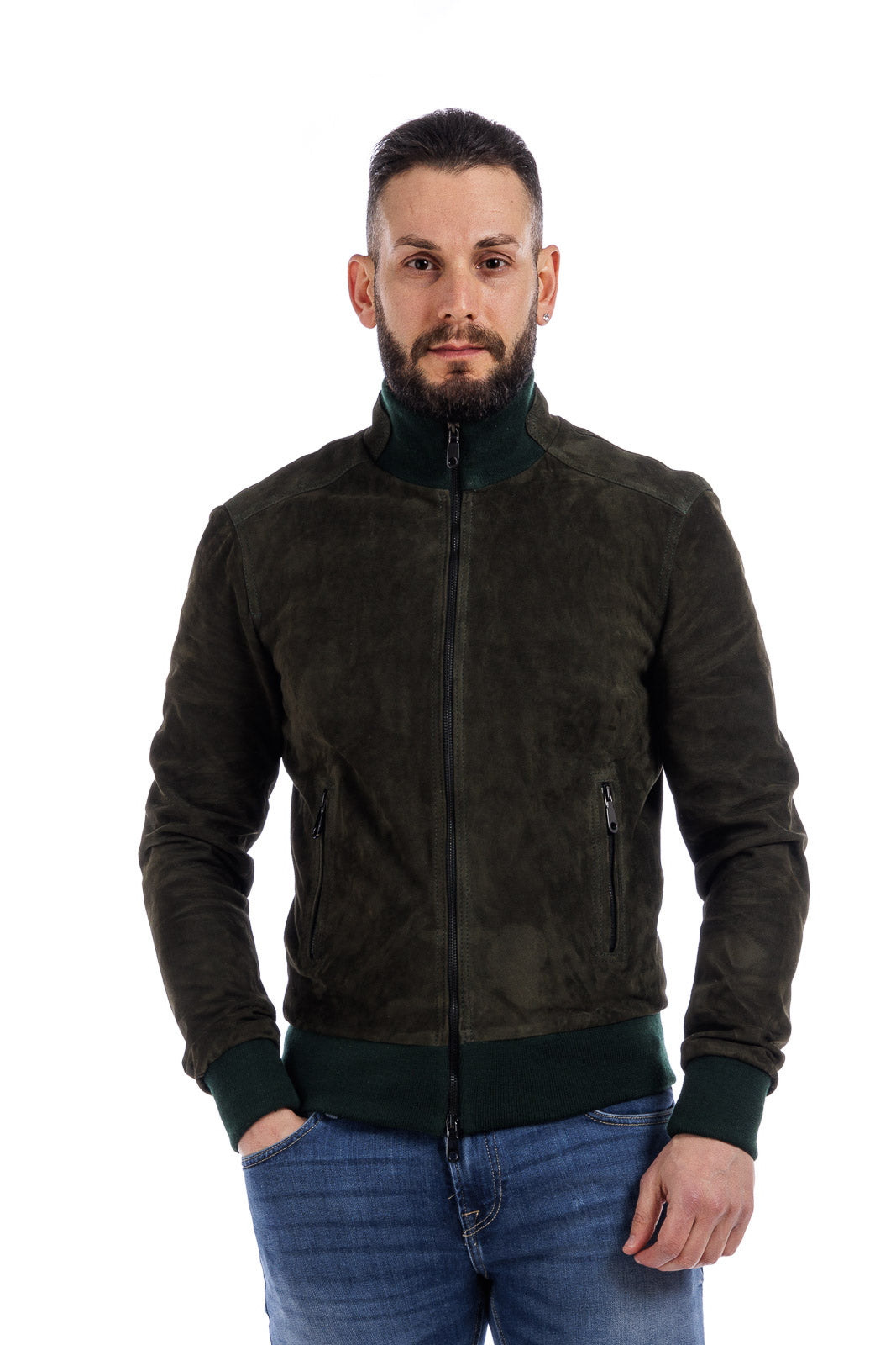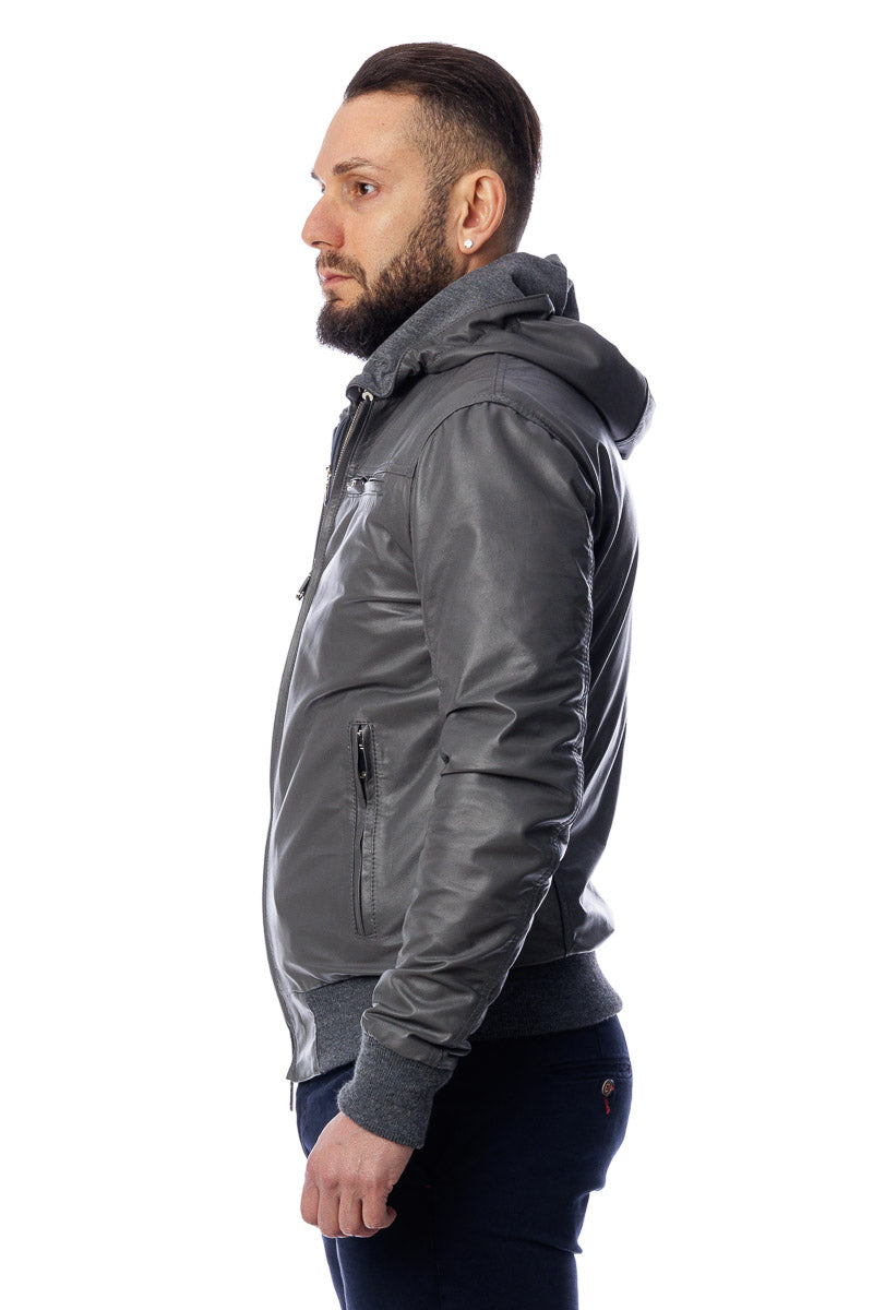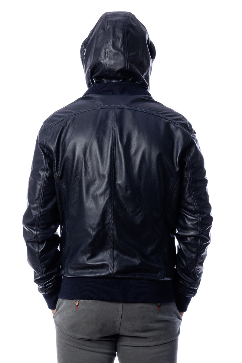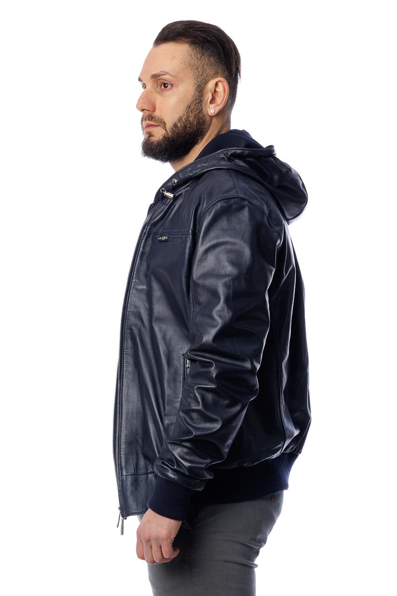 Cappottino chiodo in vera pelle uomo con zip testa di moro