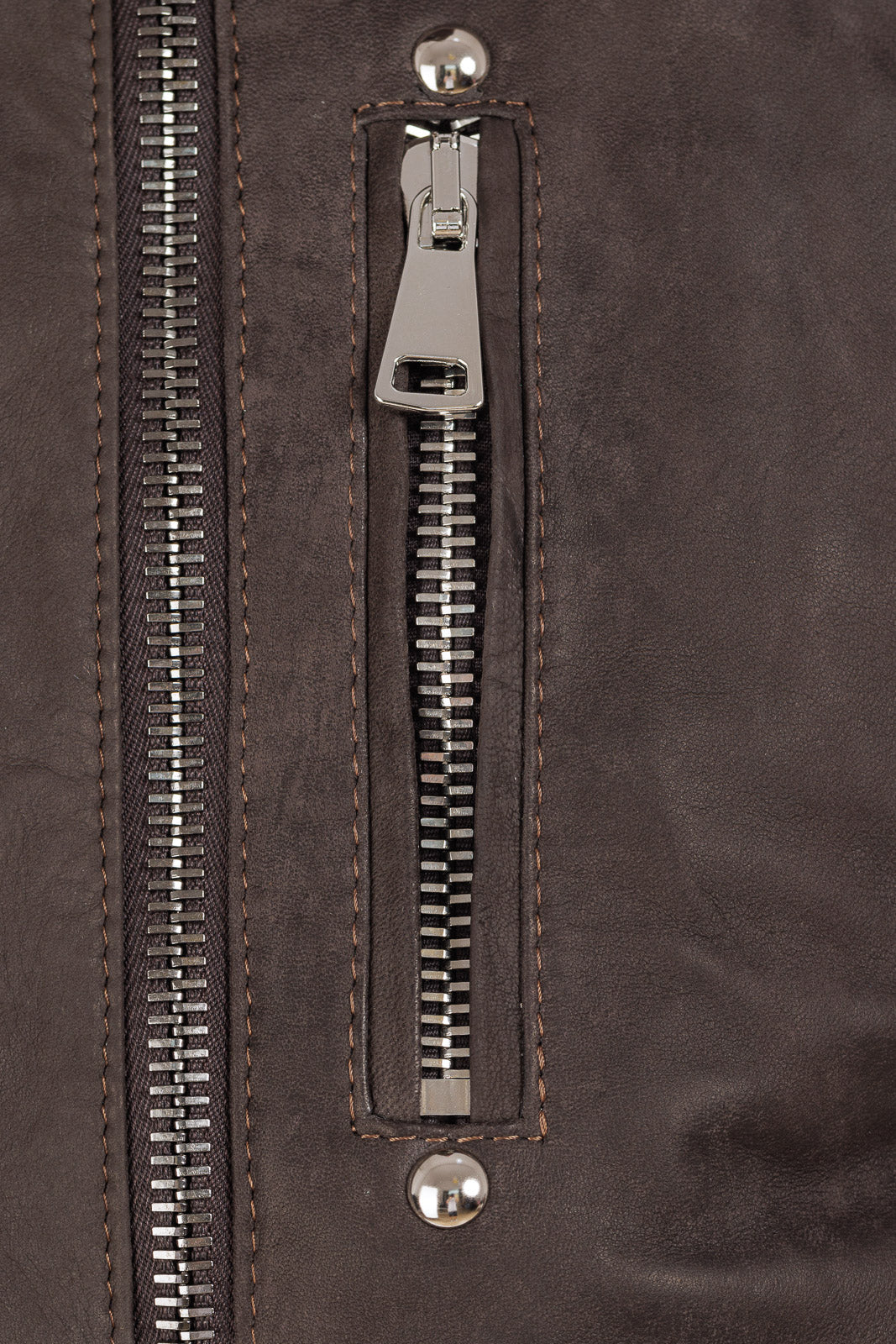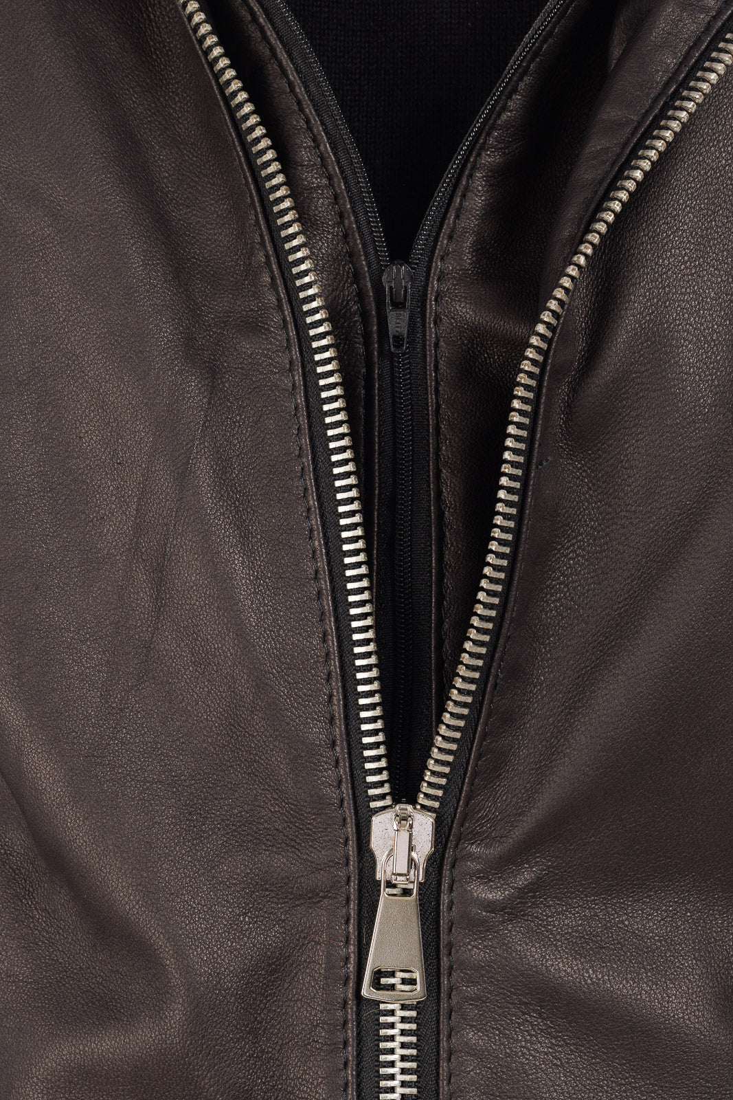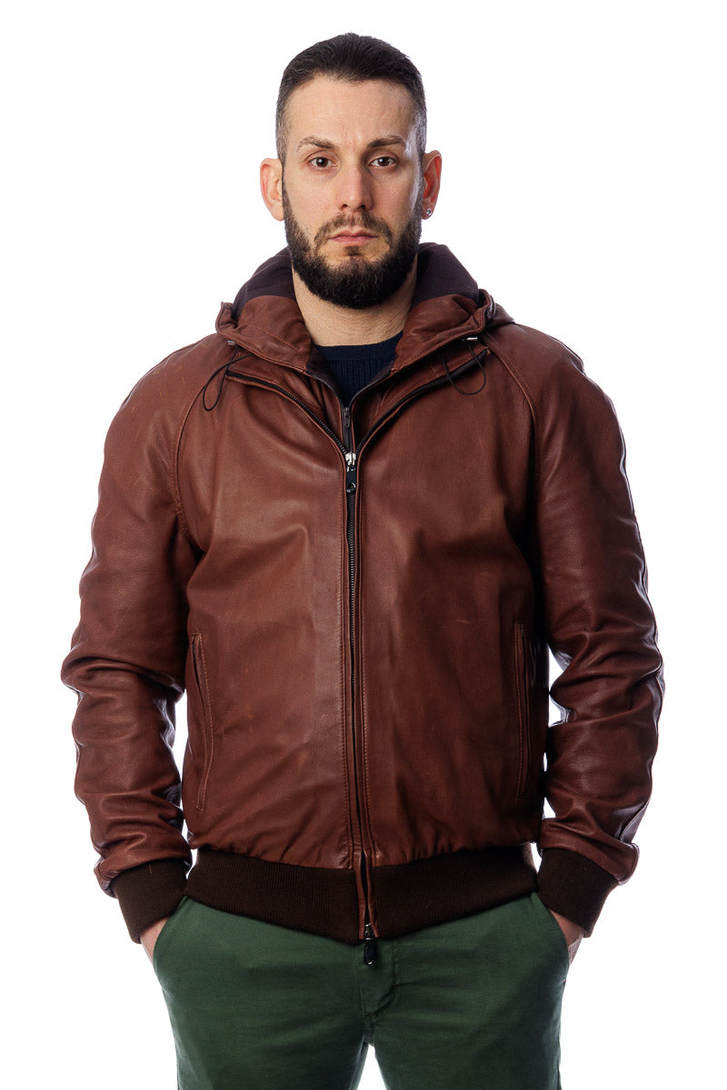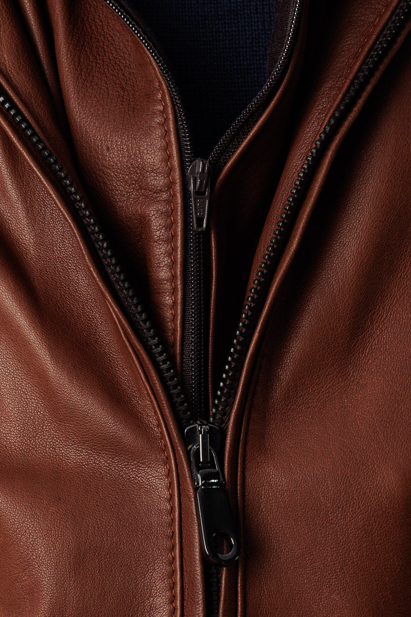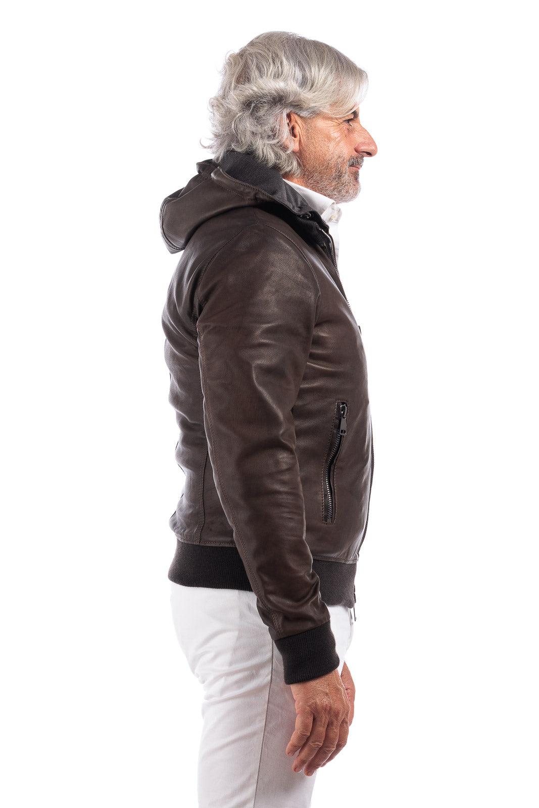 Cappottino chiodo in vera pelle uomo con zip marrone