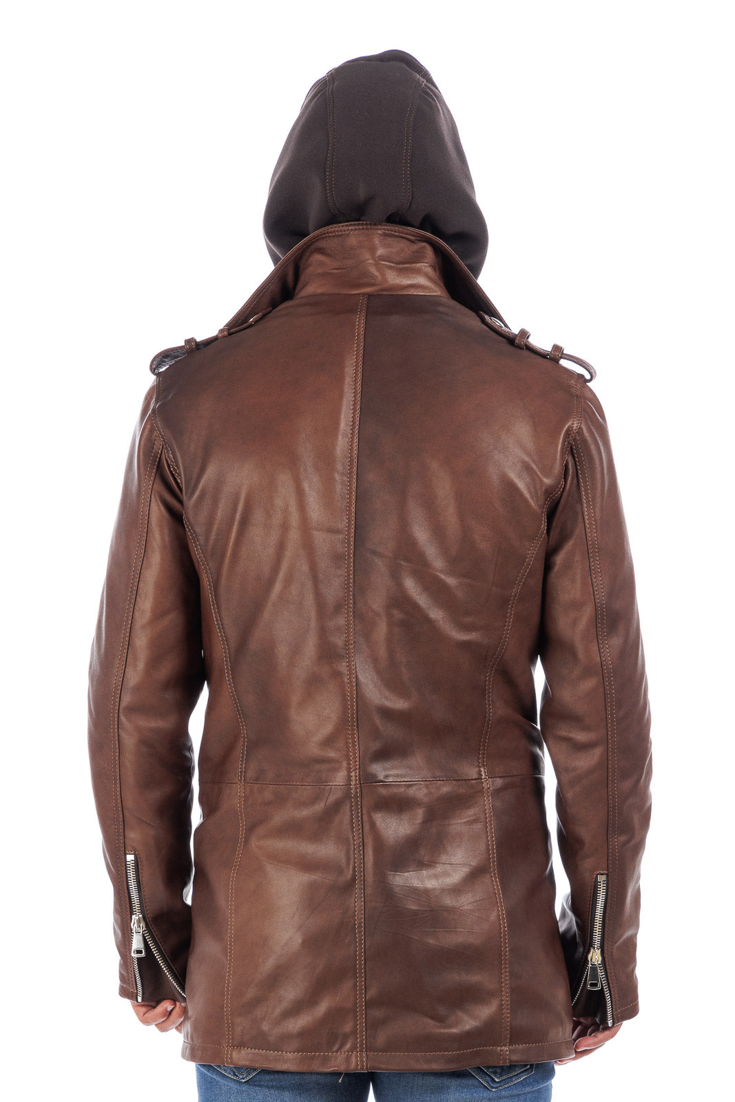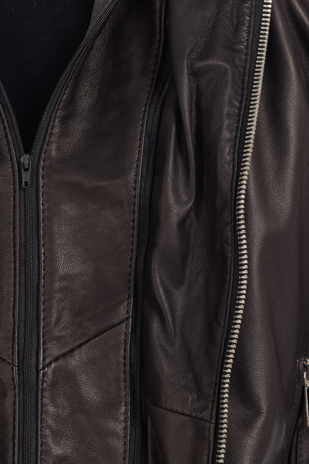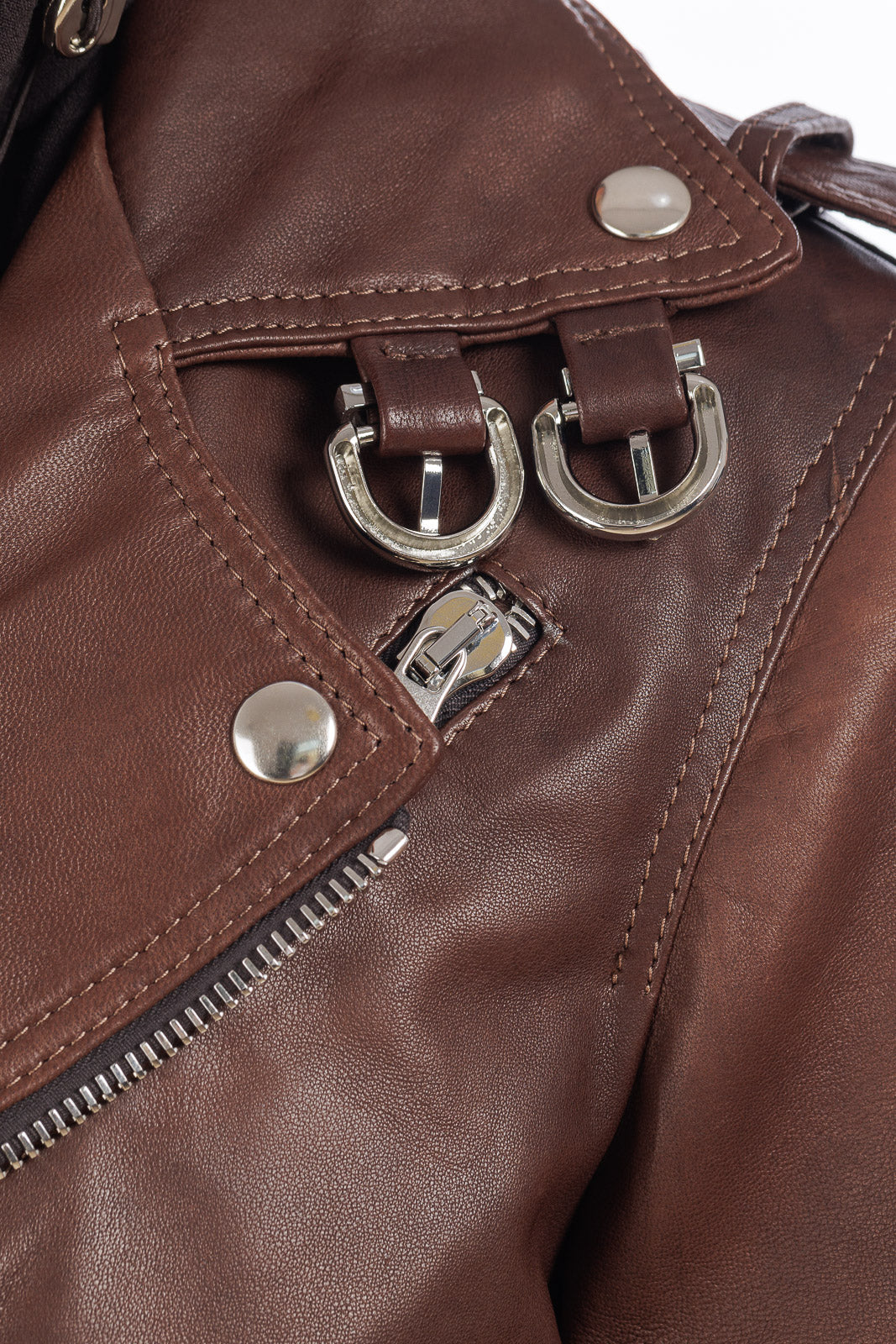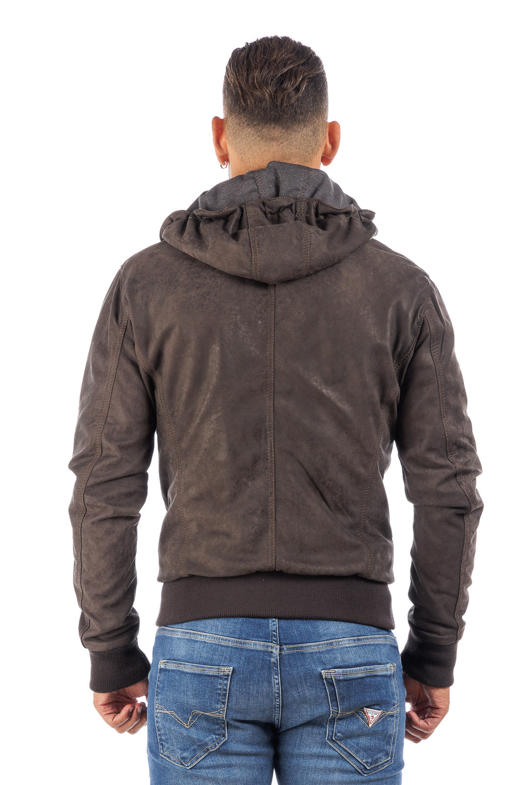 Cappottino chiodo in vera pelle uomo con zip marrone