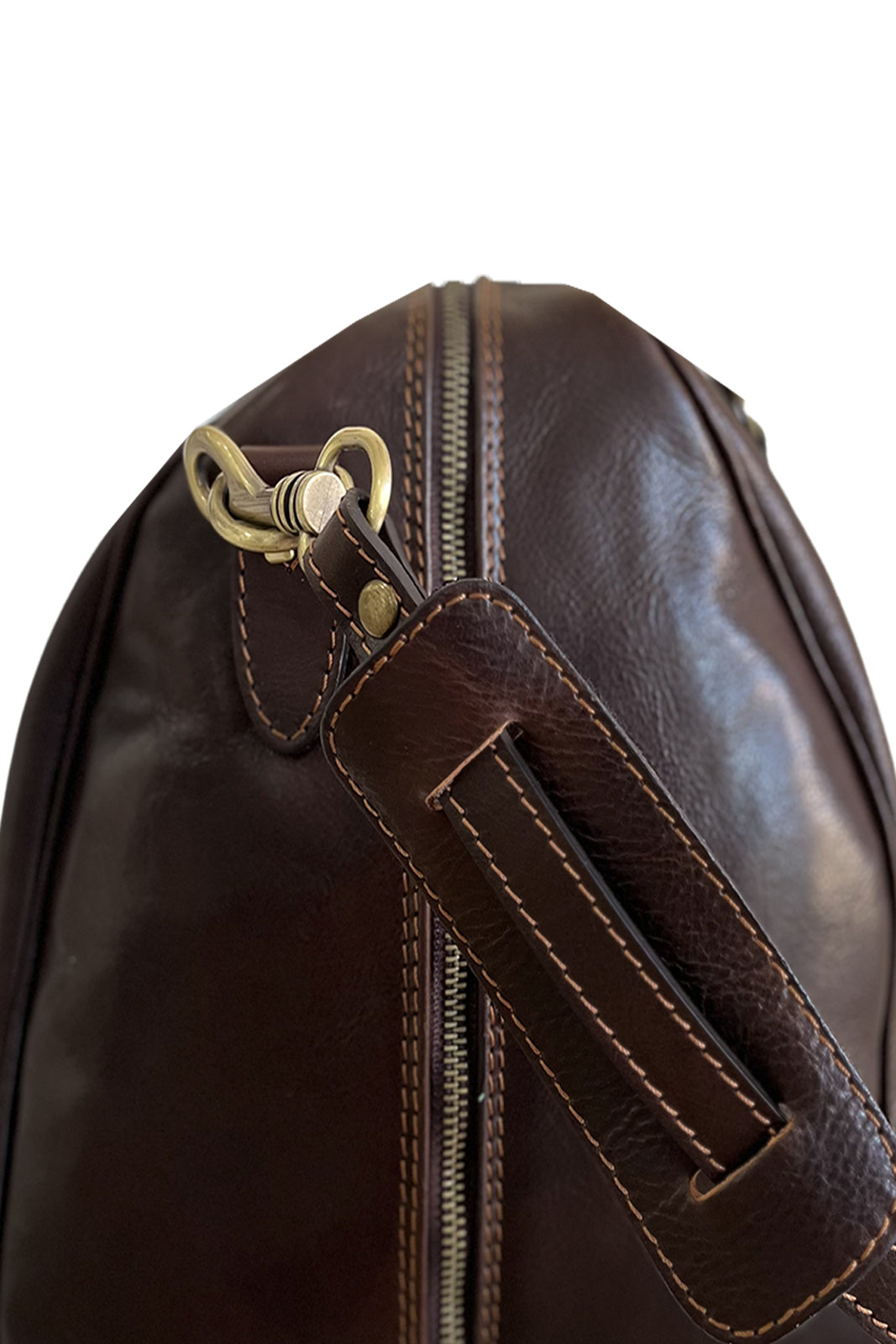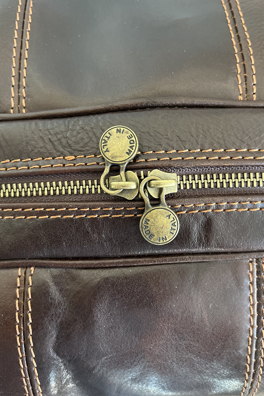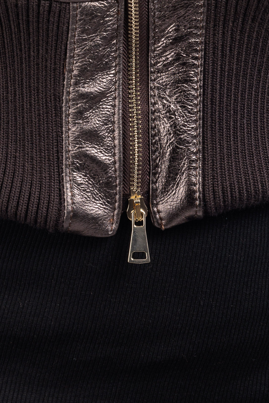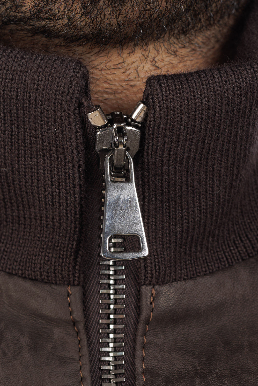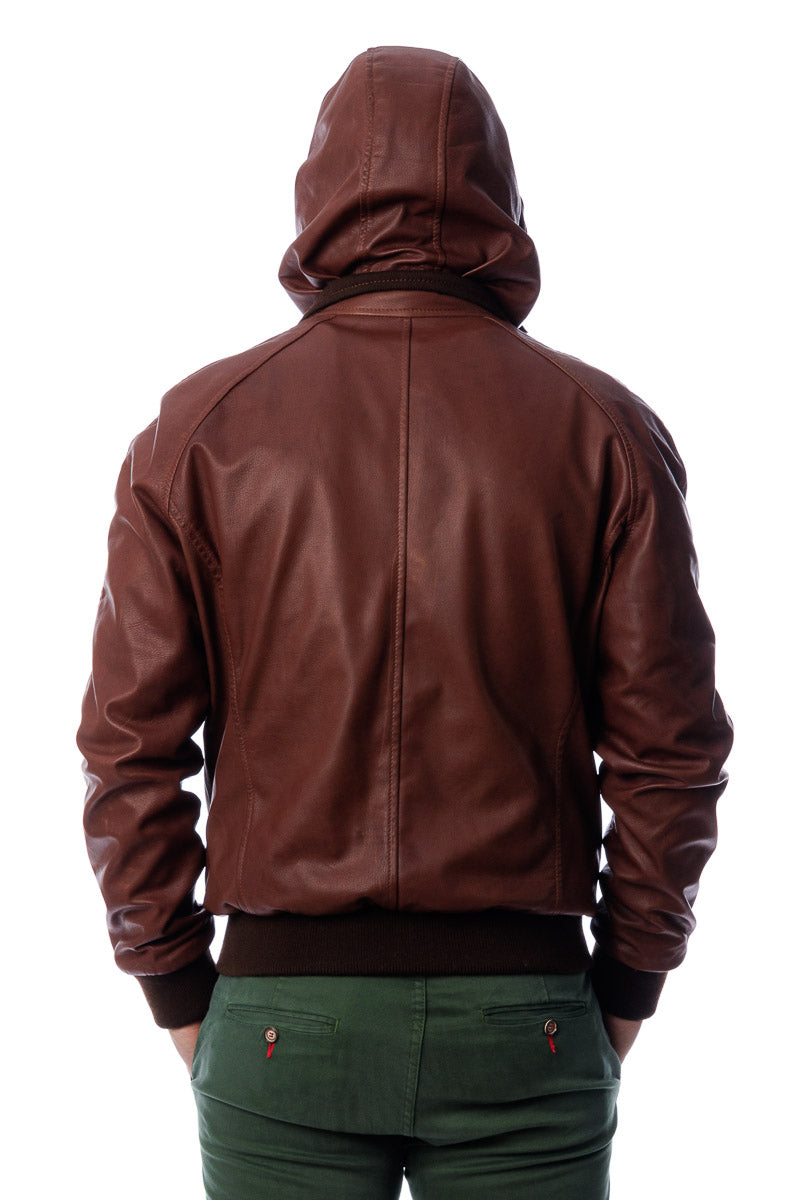 Cappottino chiodo in vera pelle uomo con zip marrone