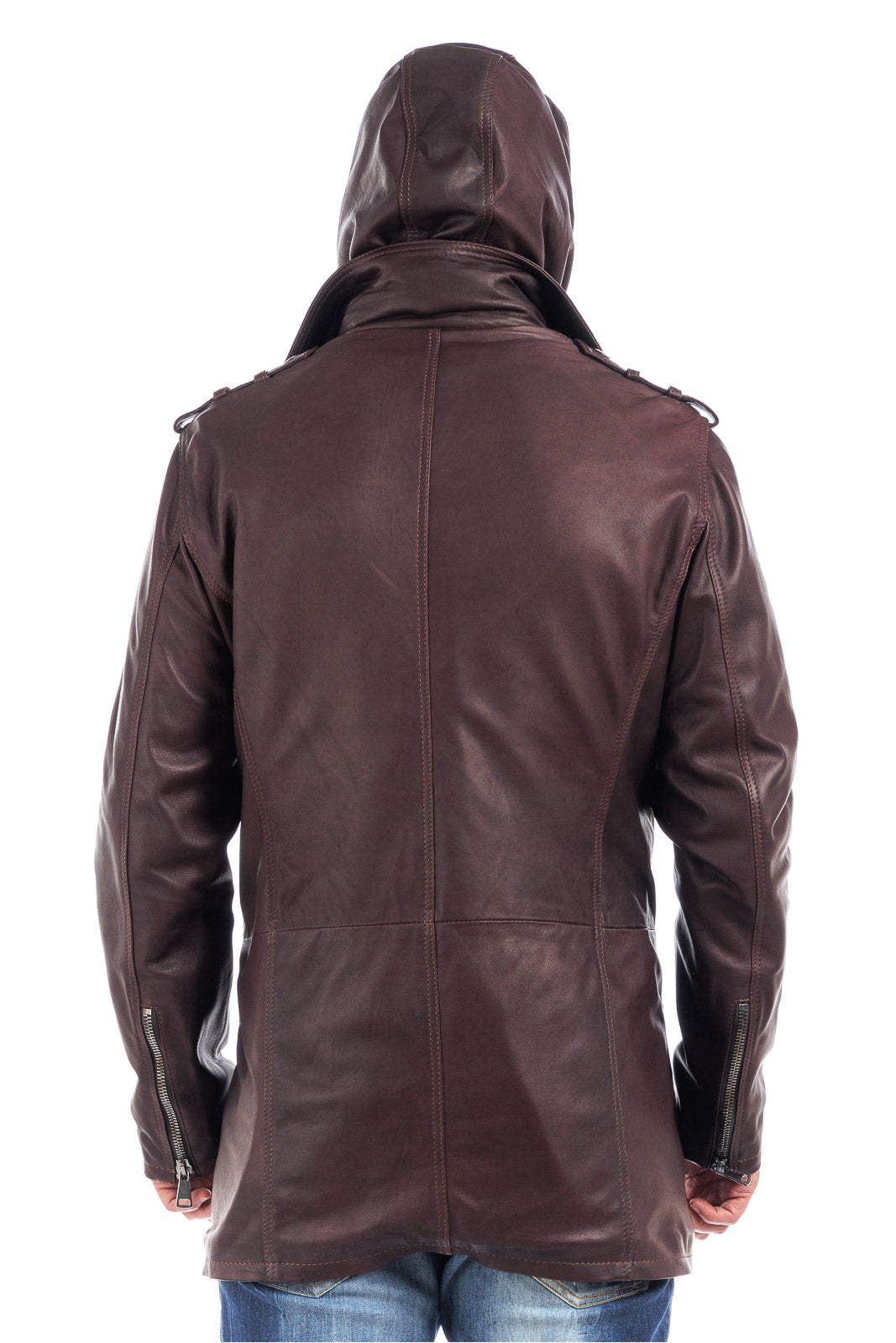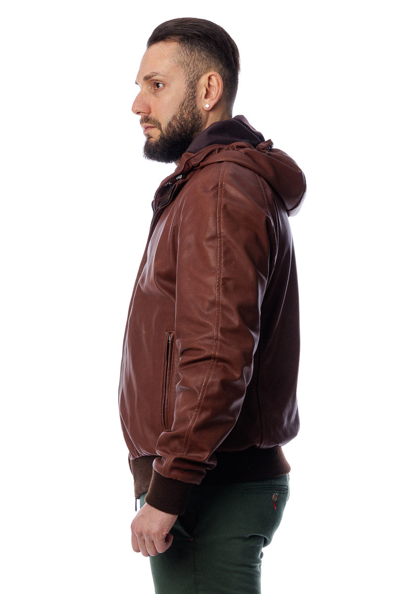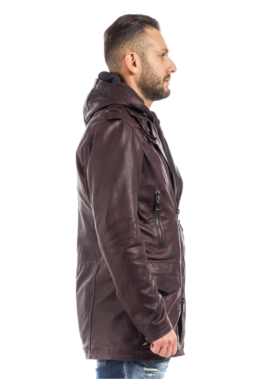 Cappottino chiodo in vera pelle uomo con zip marrone vinaccia
