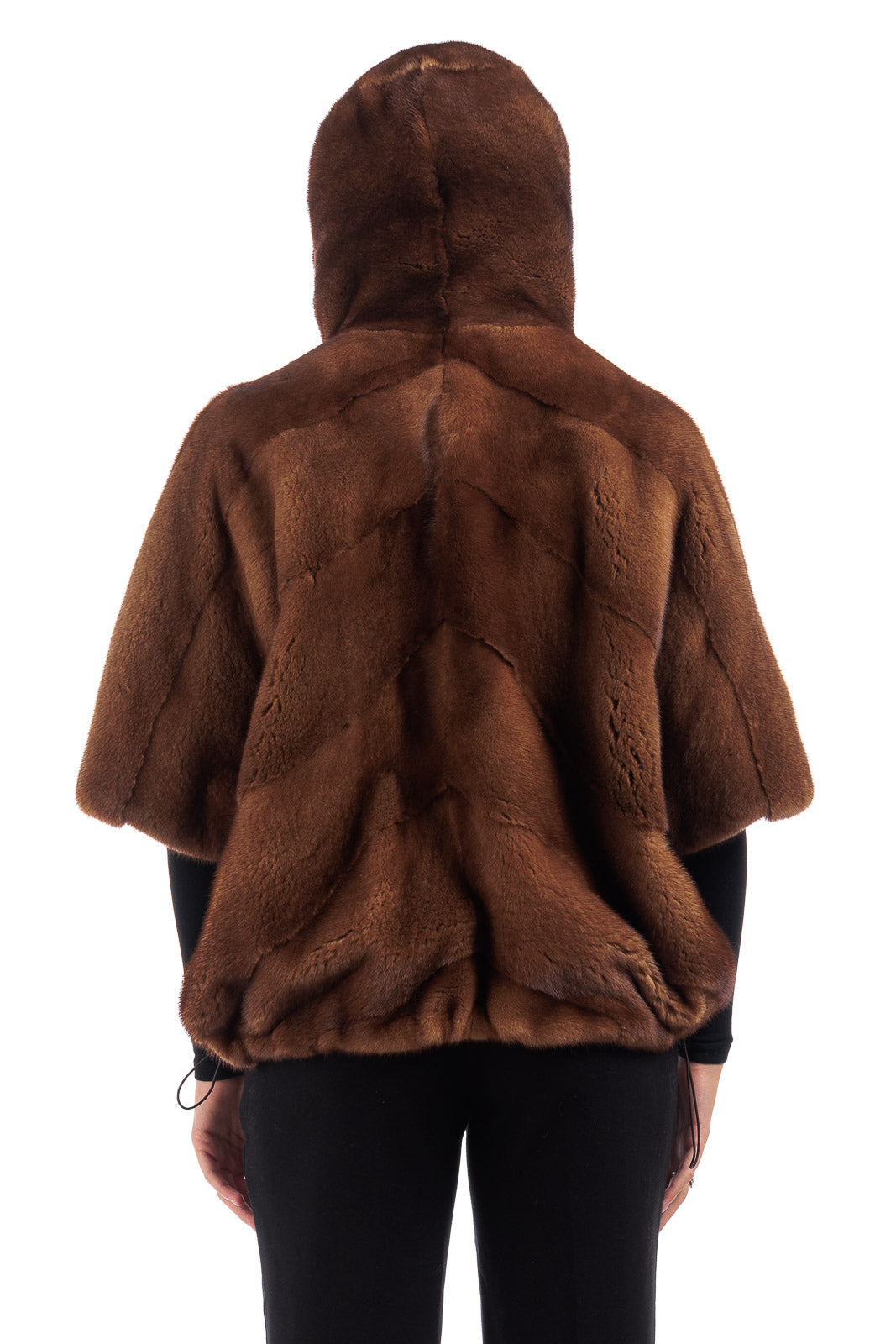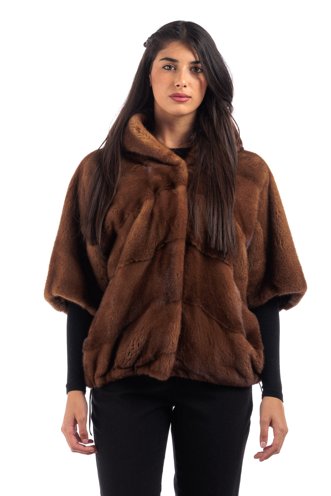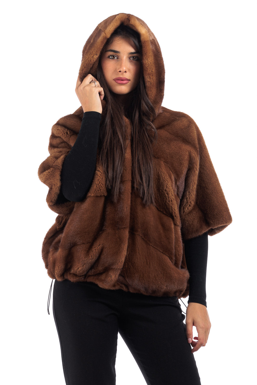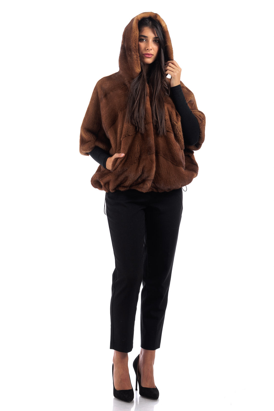 Cappa in pelliccia di Visone golden con cappuccio e manica a tre quarti