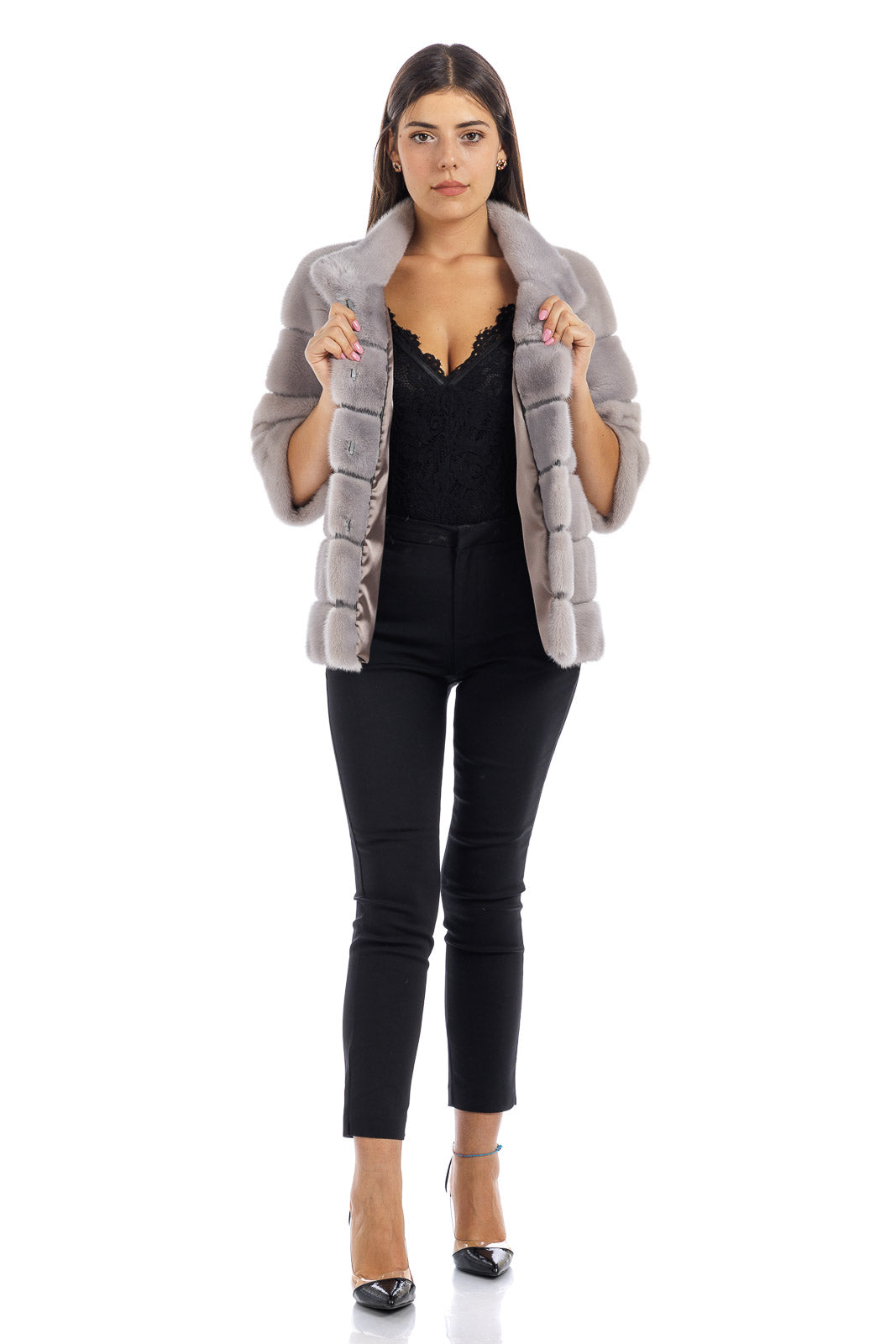 Cappa in pelliccia di Visone sapphire con collo coreano
