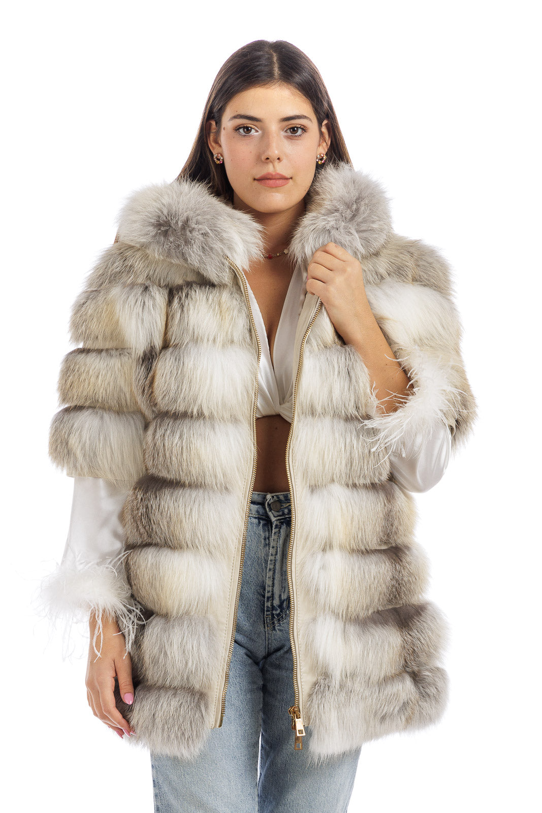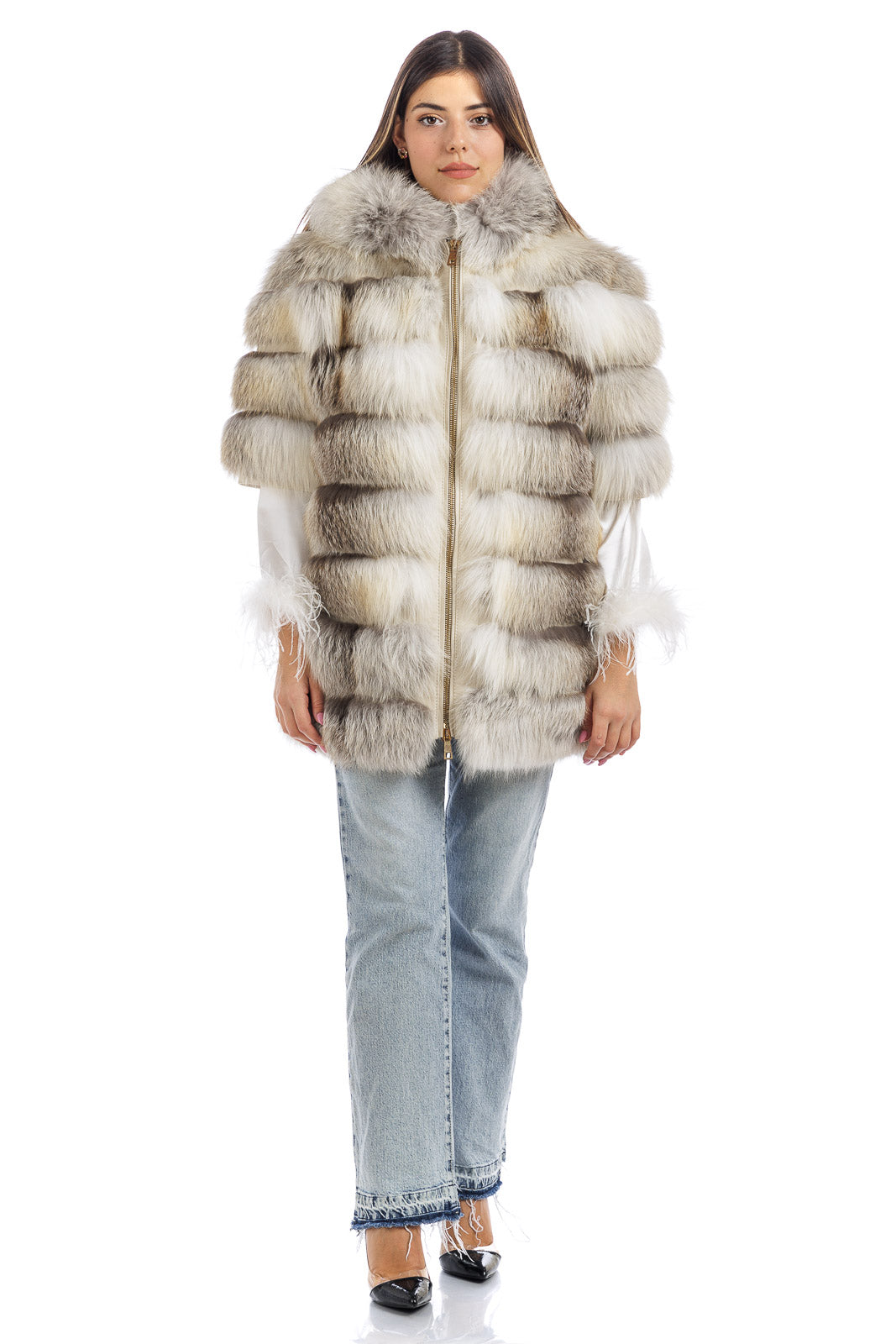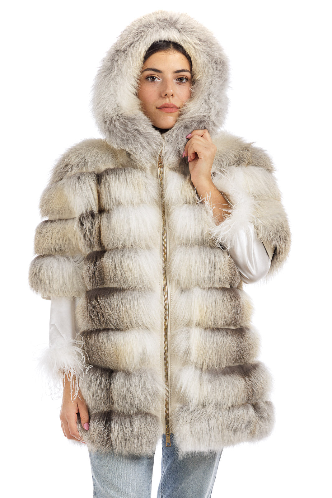 Cappottino in pelliccia di volpe argentata con manica a tre quarti
