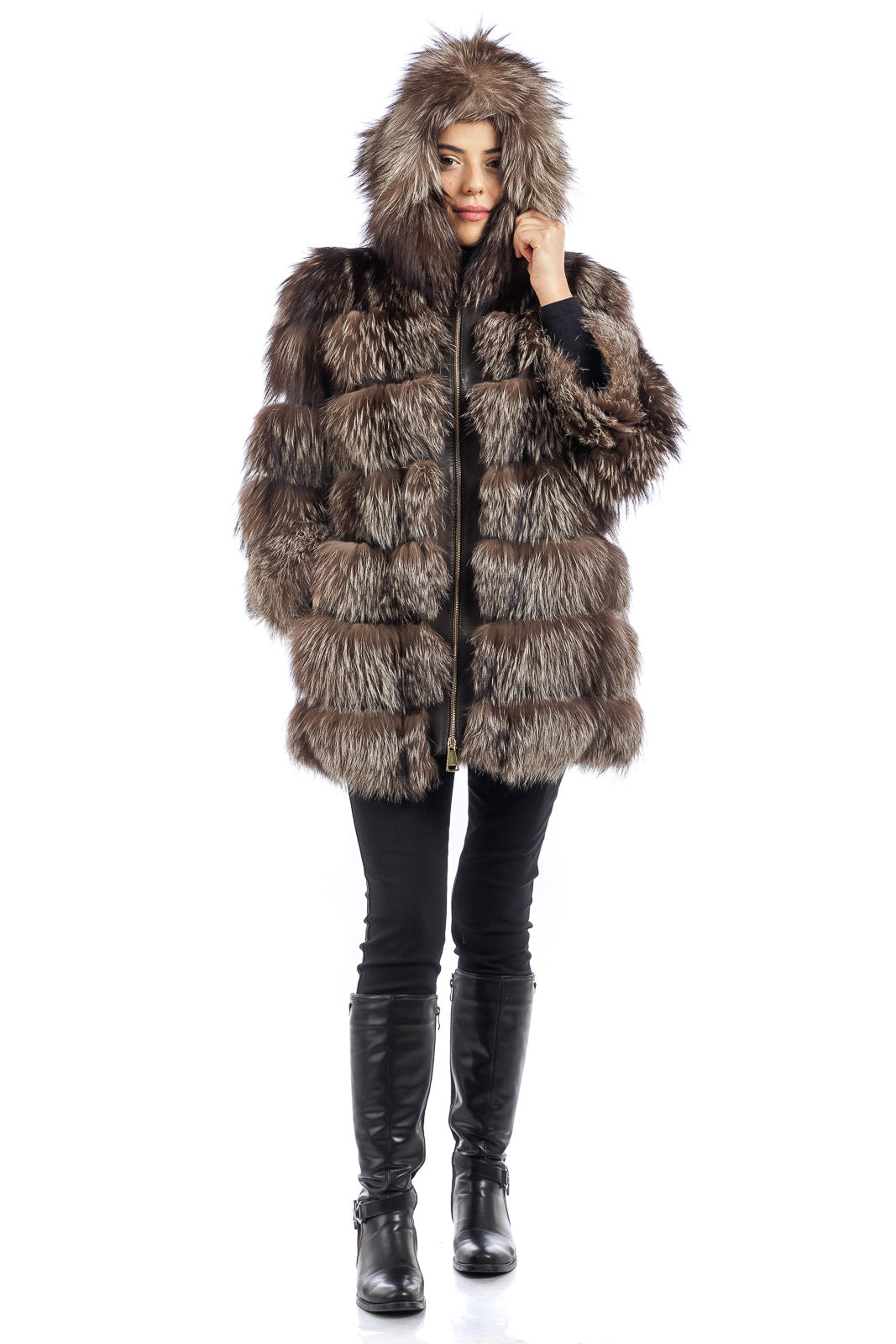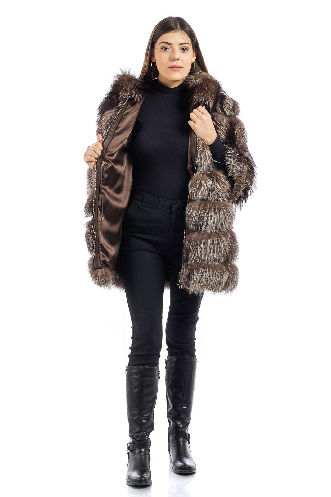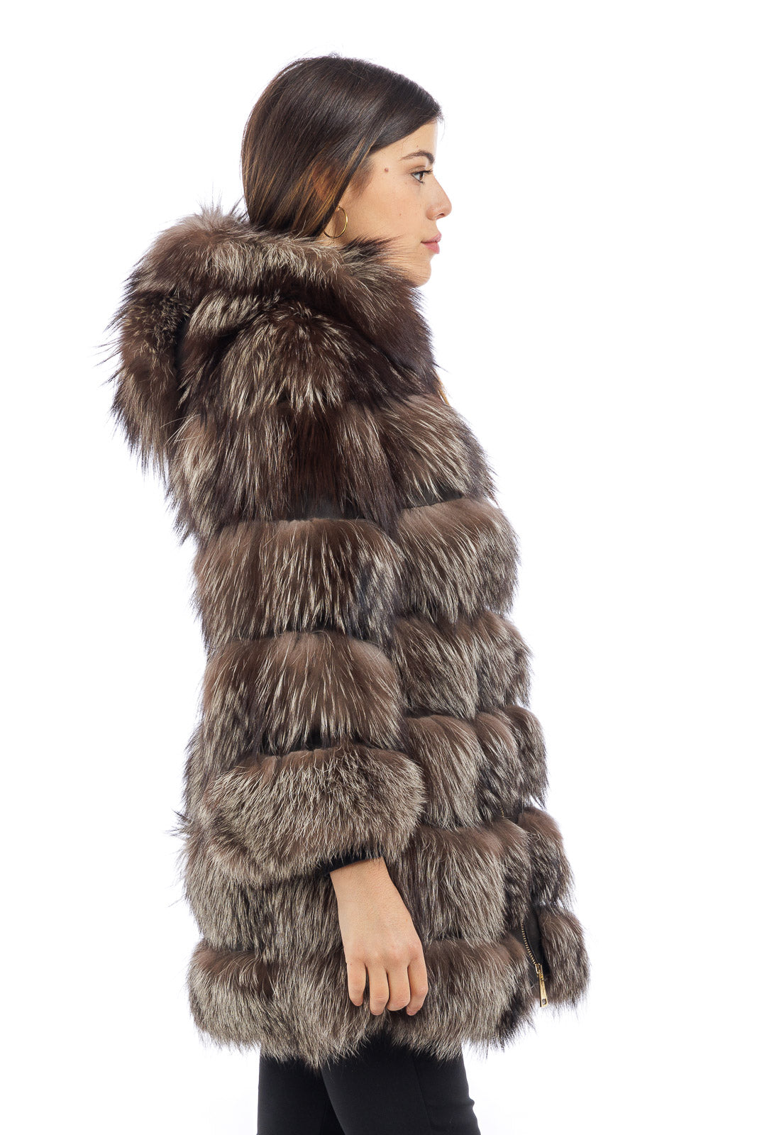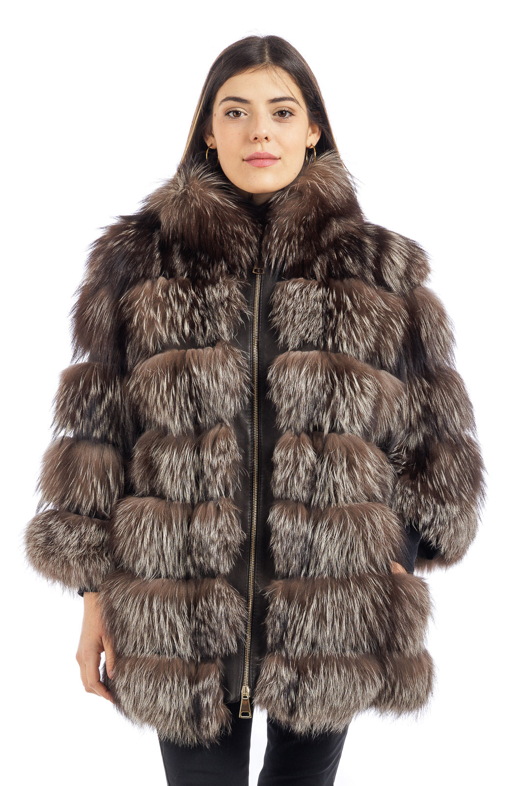 Cappottino in pelliccia di volpe argentata con manica a tre quarti