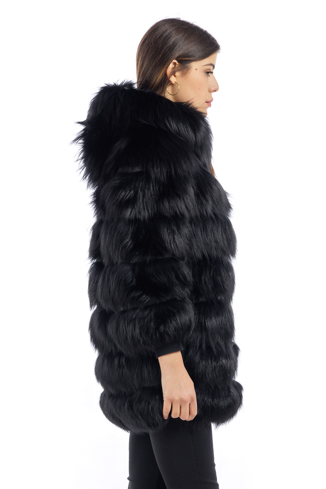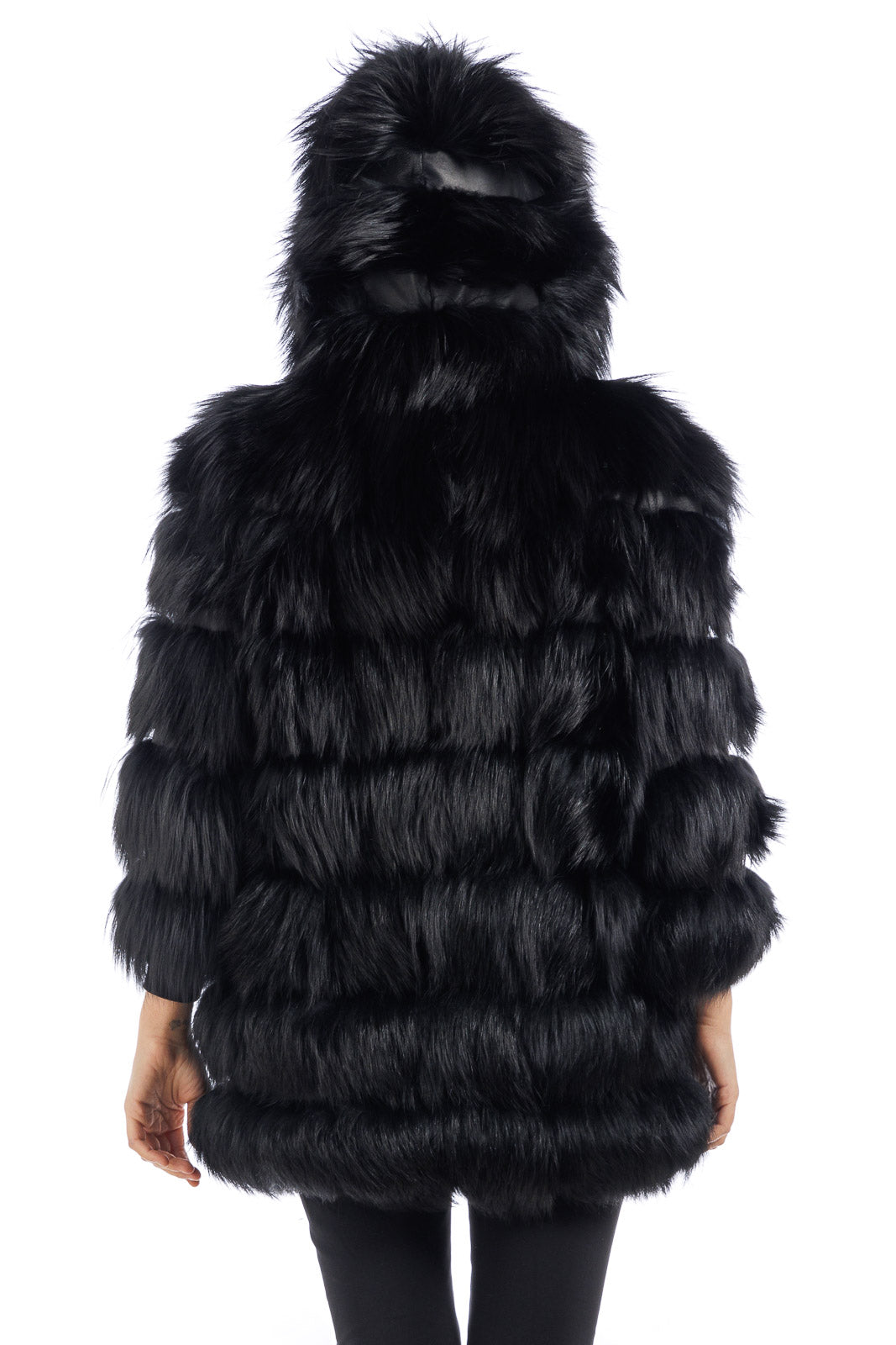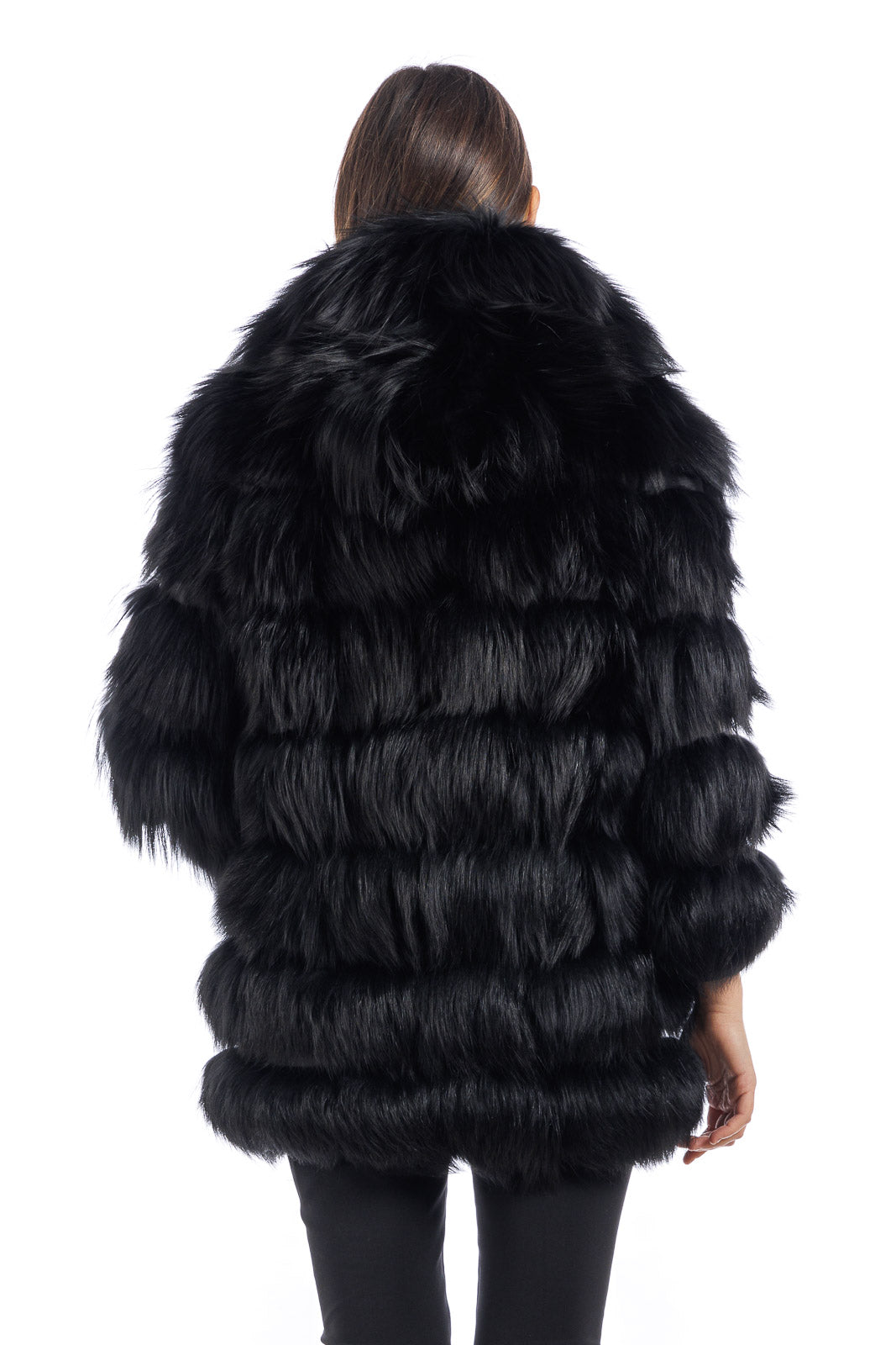 Cappottino in pelliccia di volpe nero con manica a tre quarti
