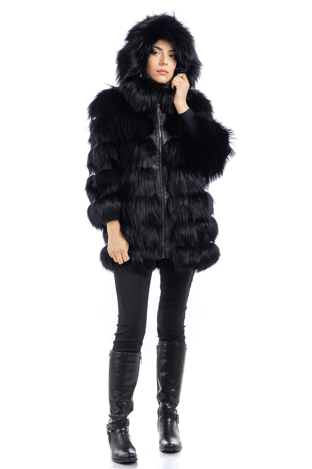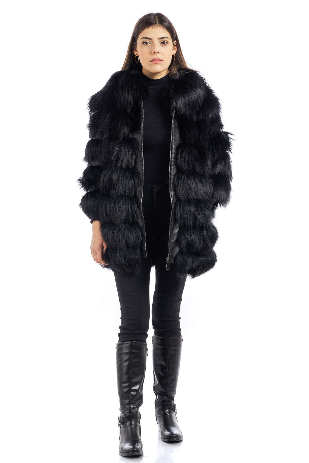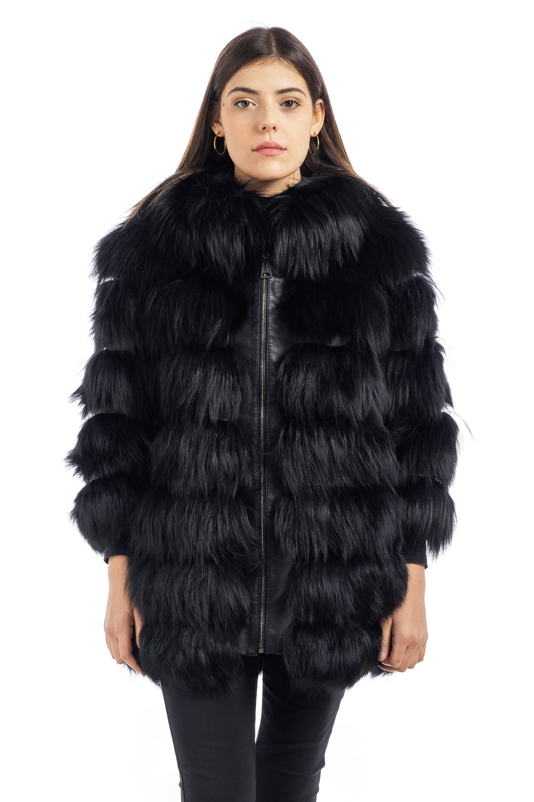 Cappottino in pelliccia di volpe nero con manica a tre quarti