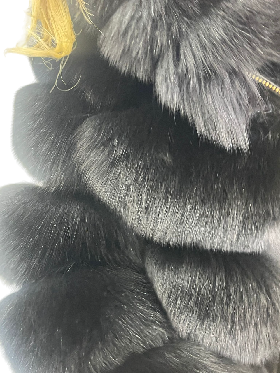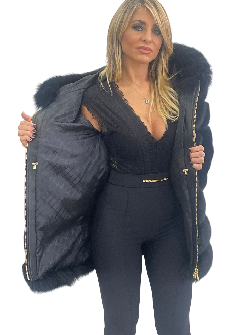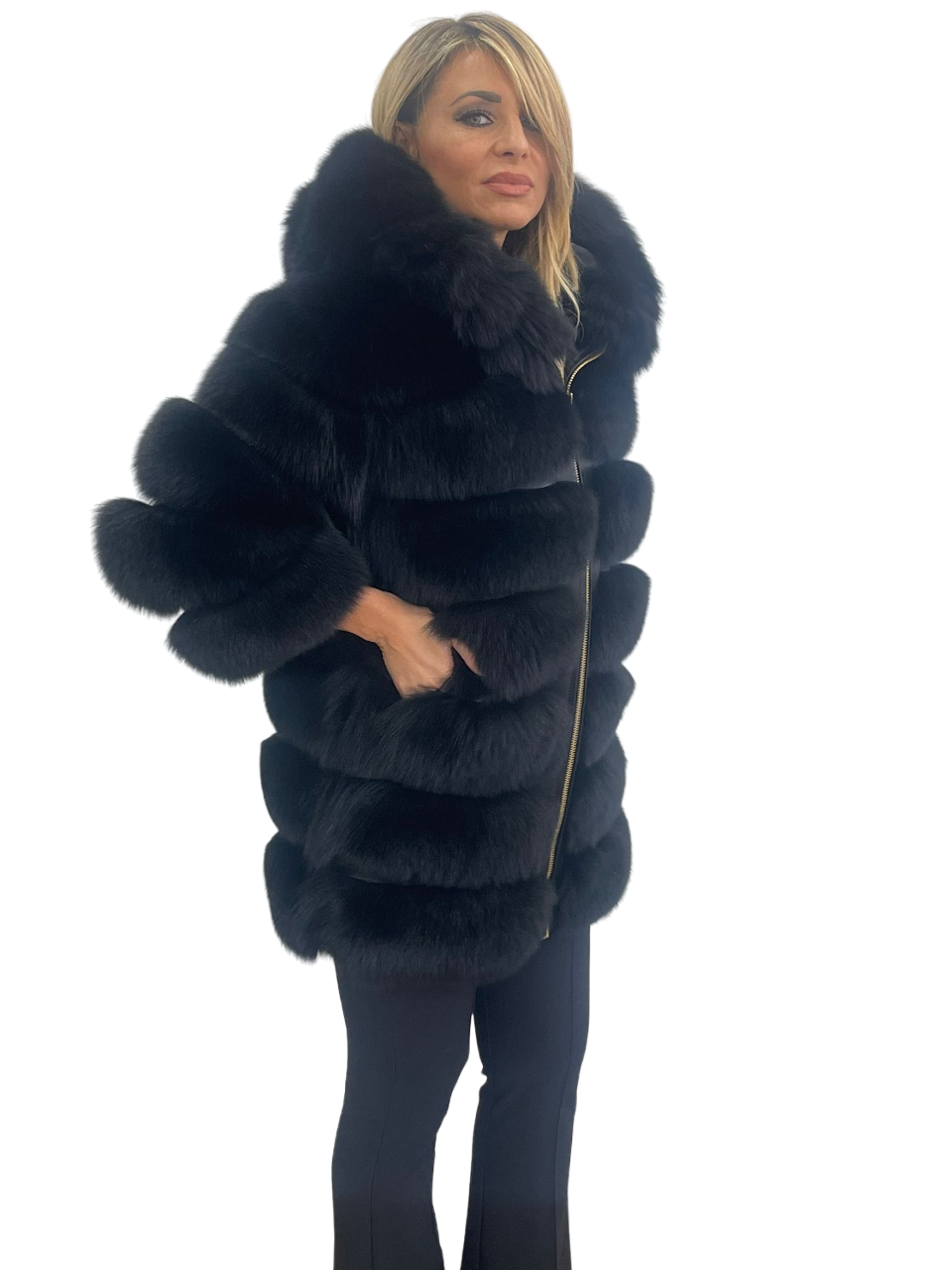 Cappottino in pelliccia di volpe nero saga royal con manica a tre quarti