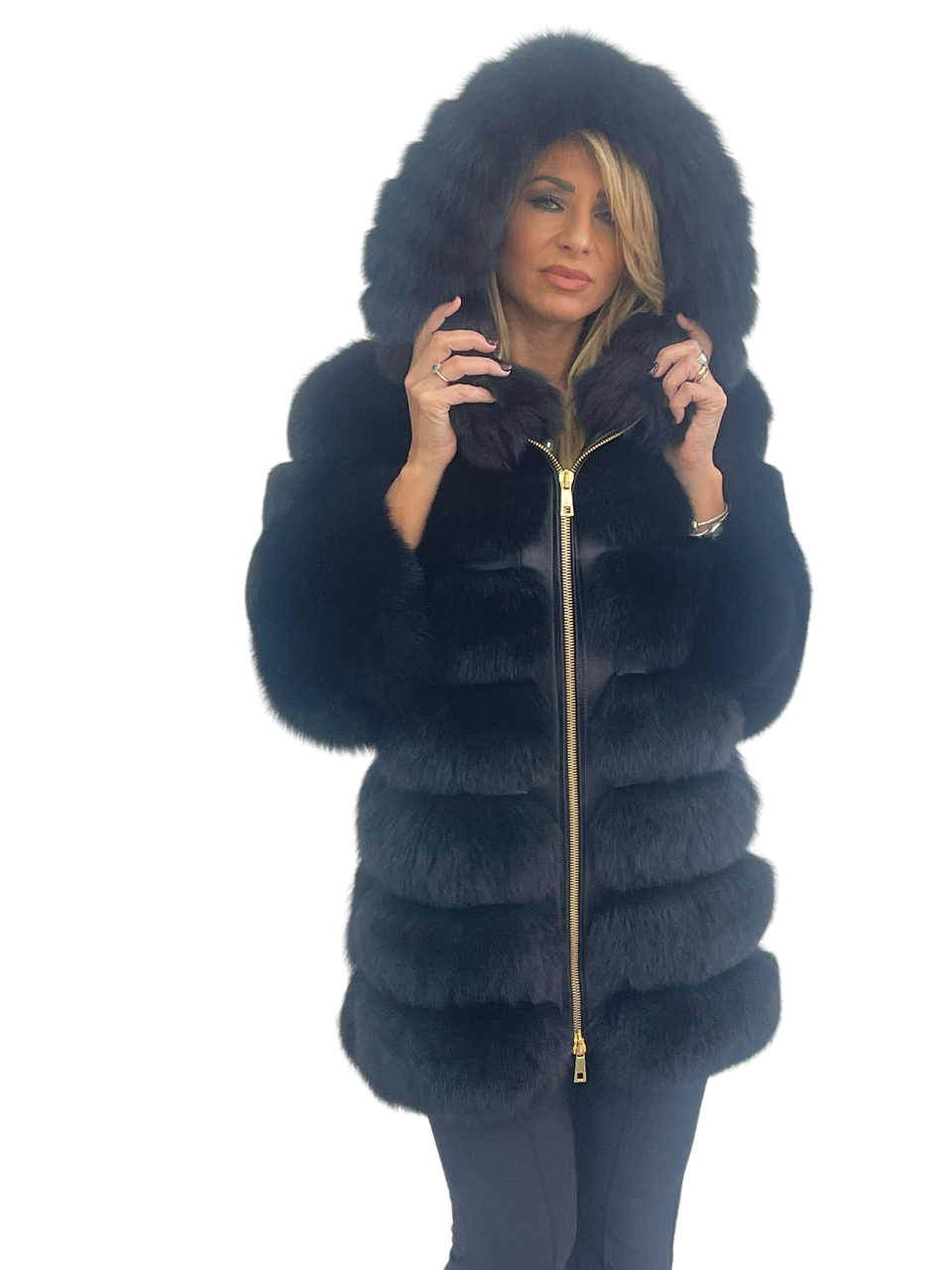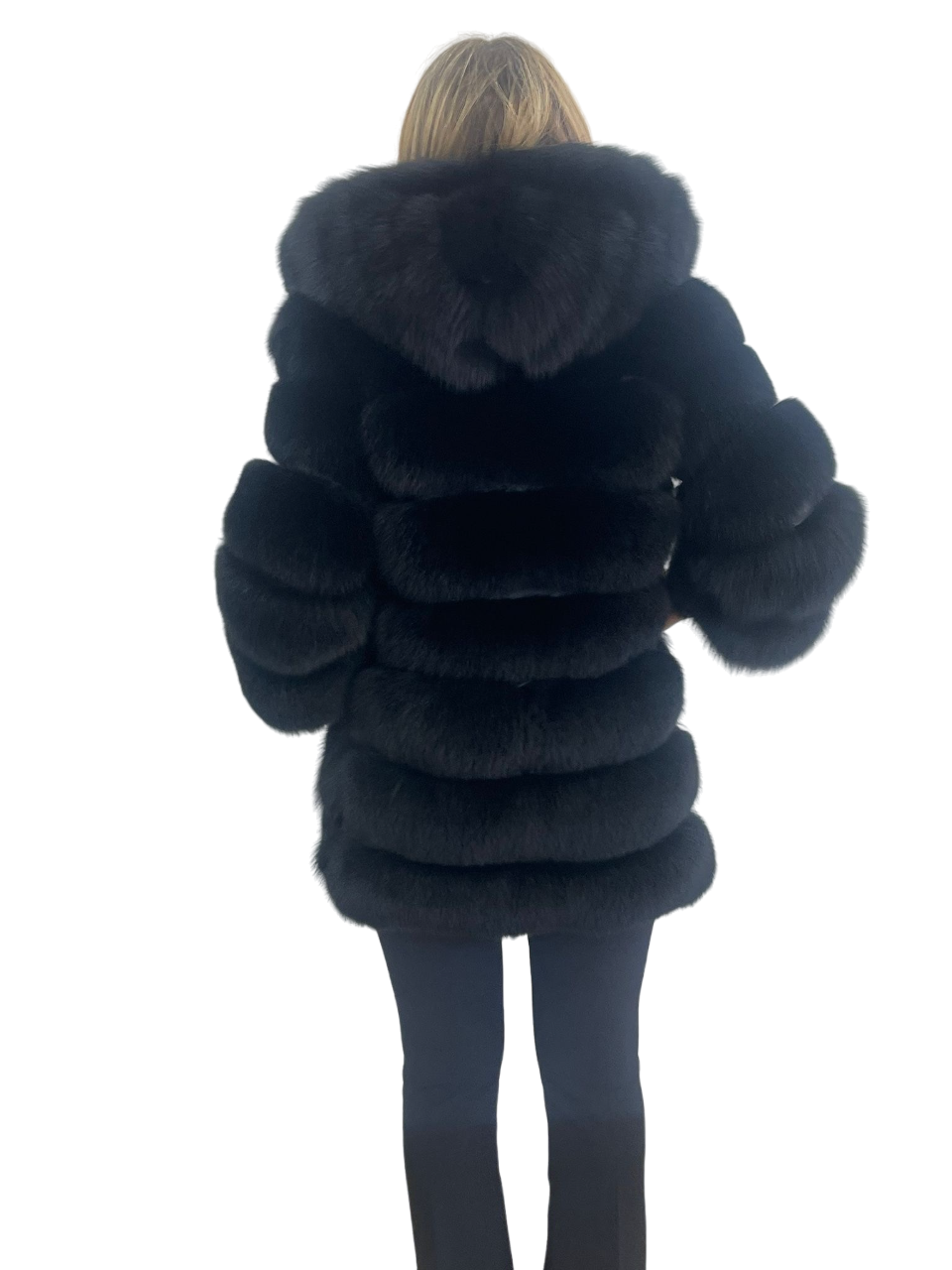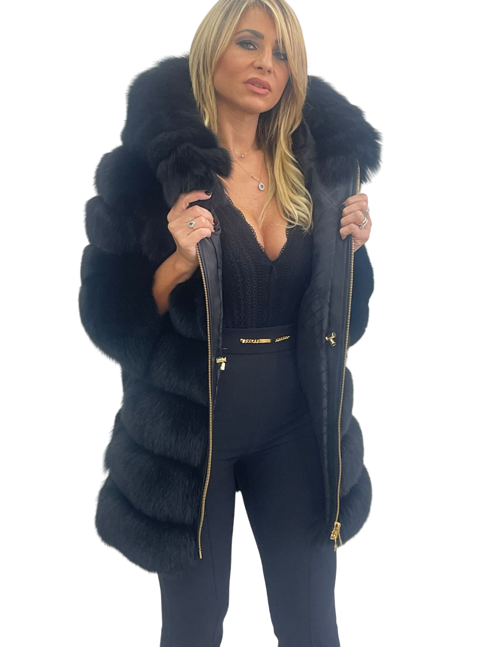 Cappottino in pelliccia di volpe nero saga royal con manica a tre quarti