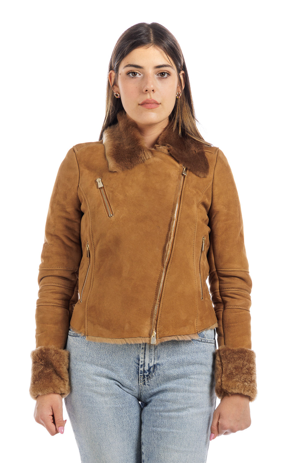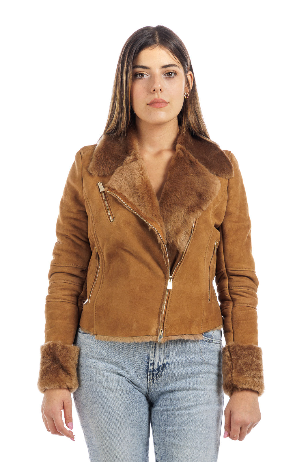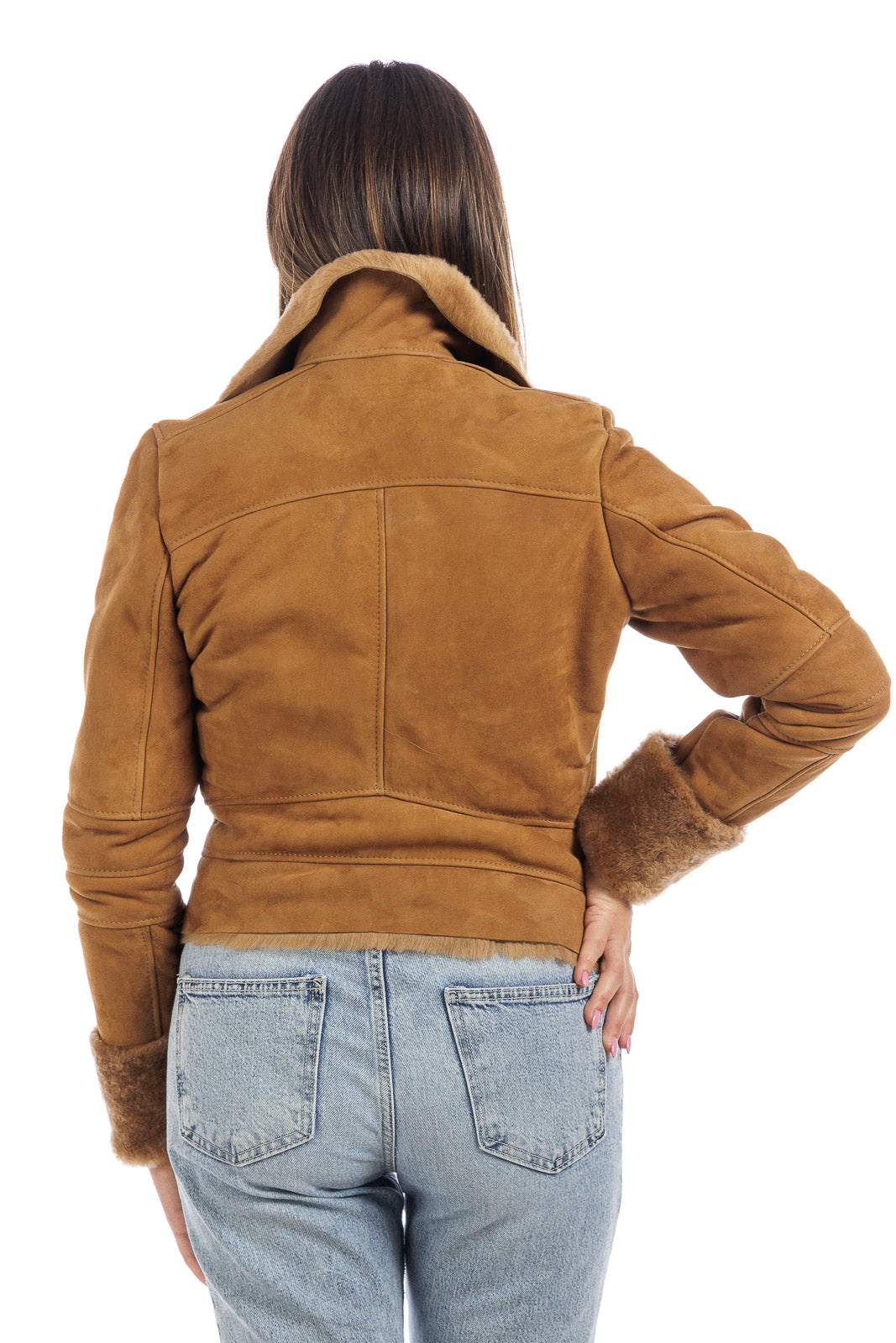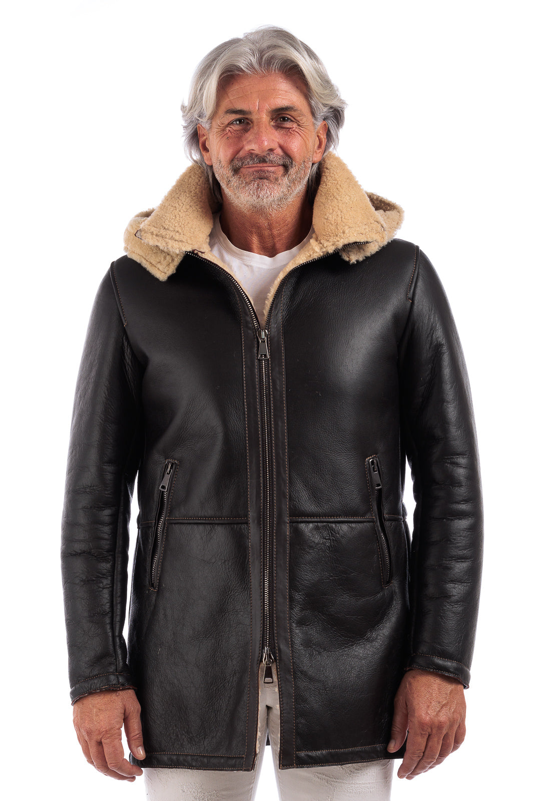 Cappottino in vero montone marrone con pelo bianco e bottoni