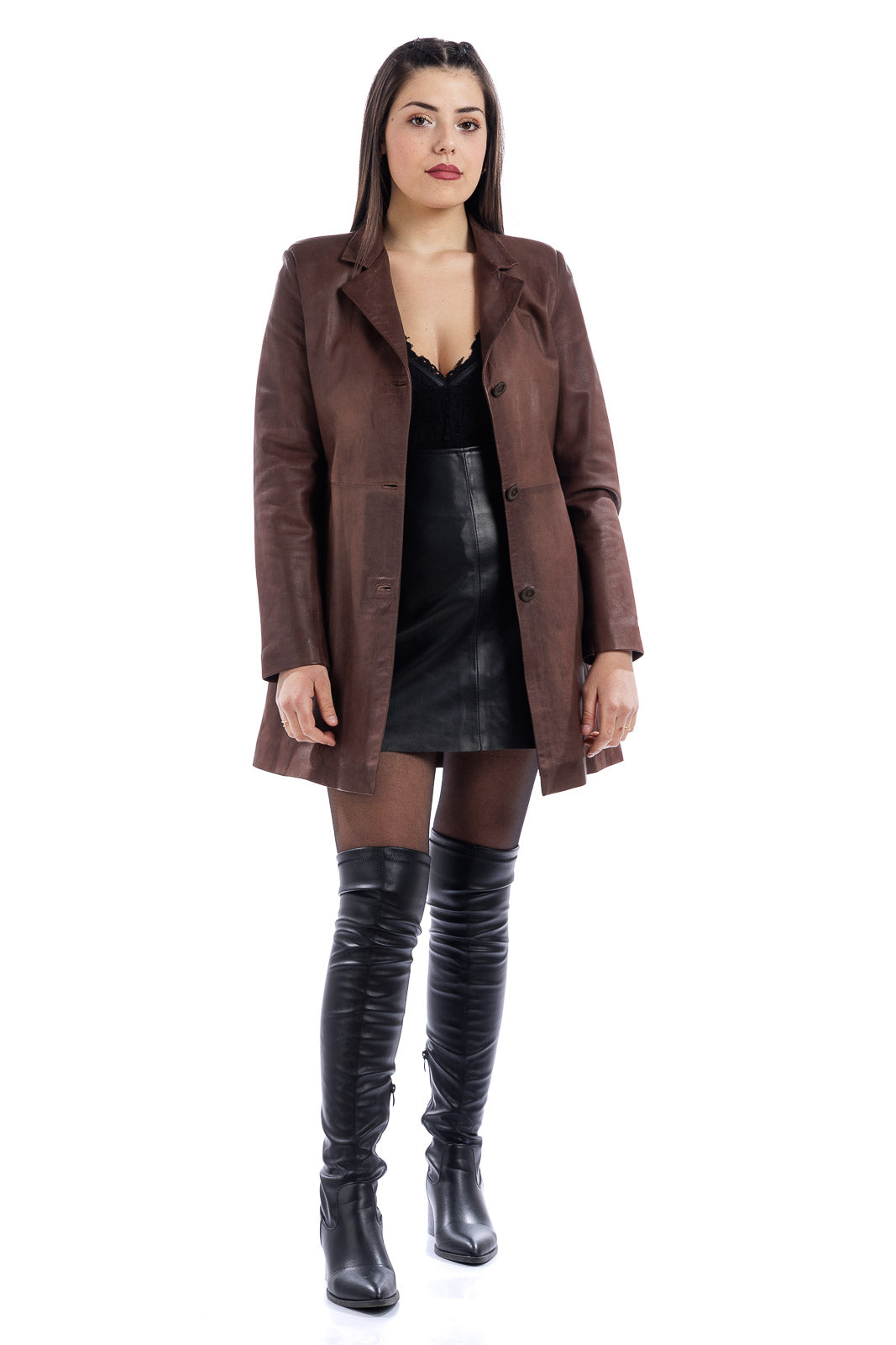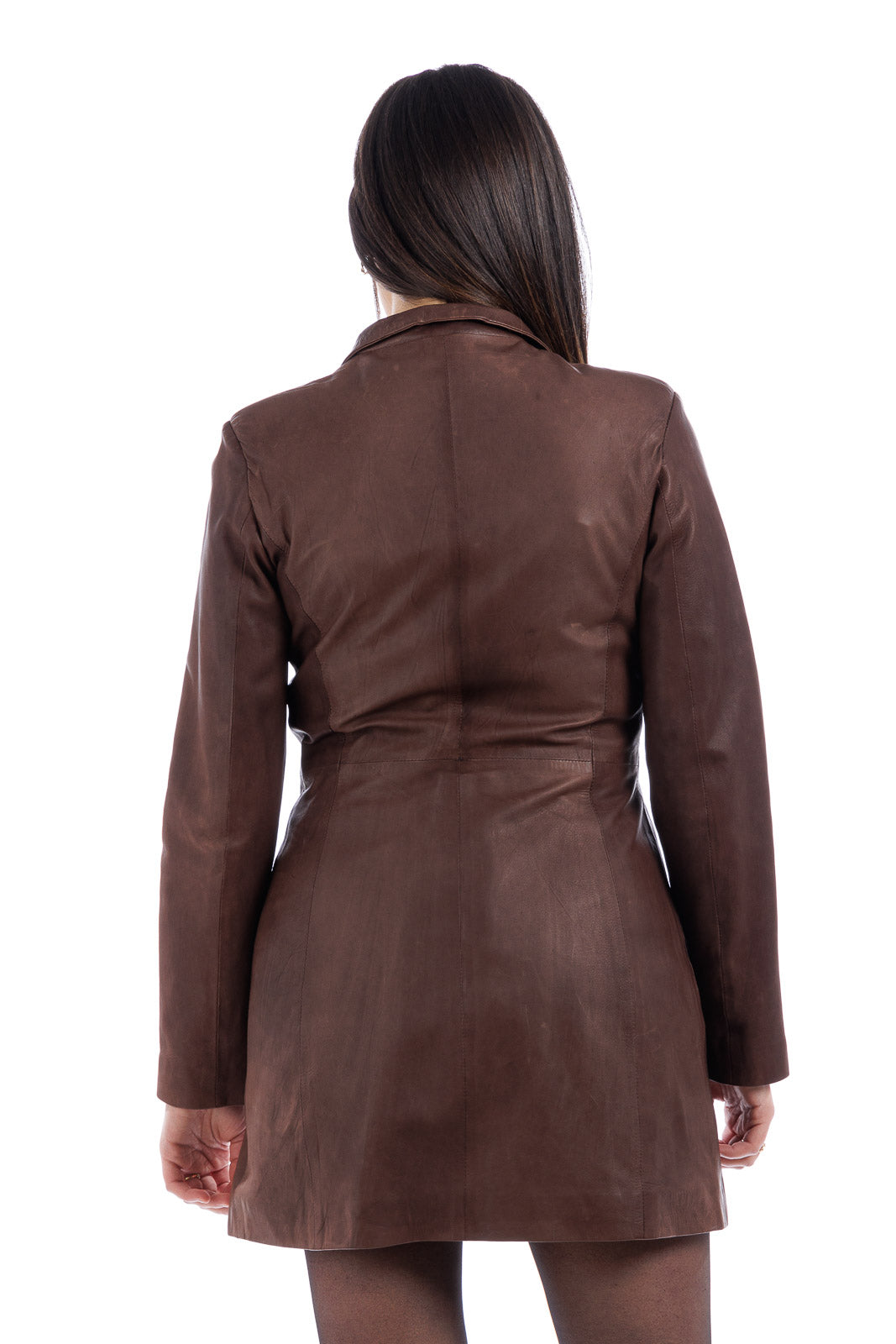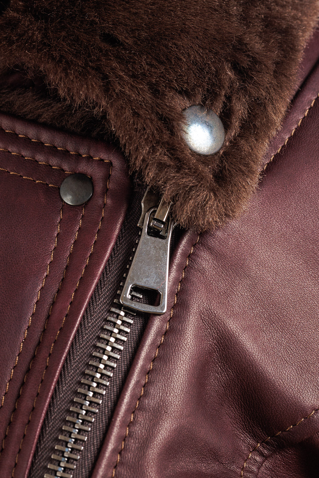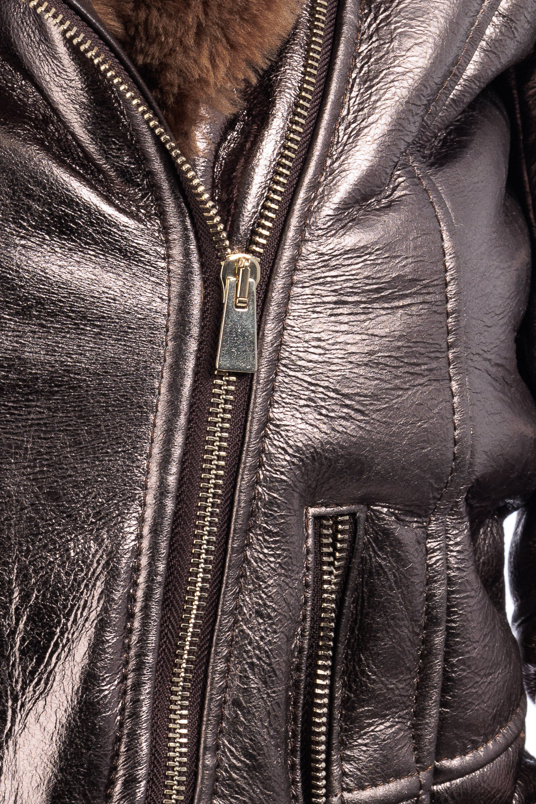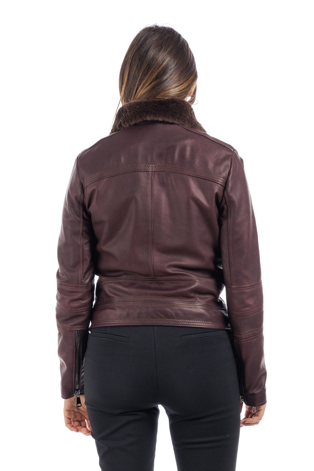 Cappottino in vero montone marrone con pelo bianco e bottoni