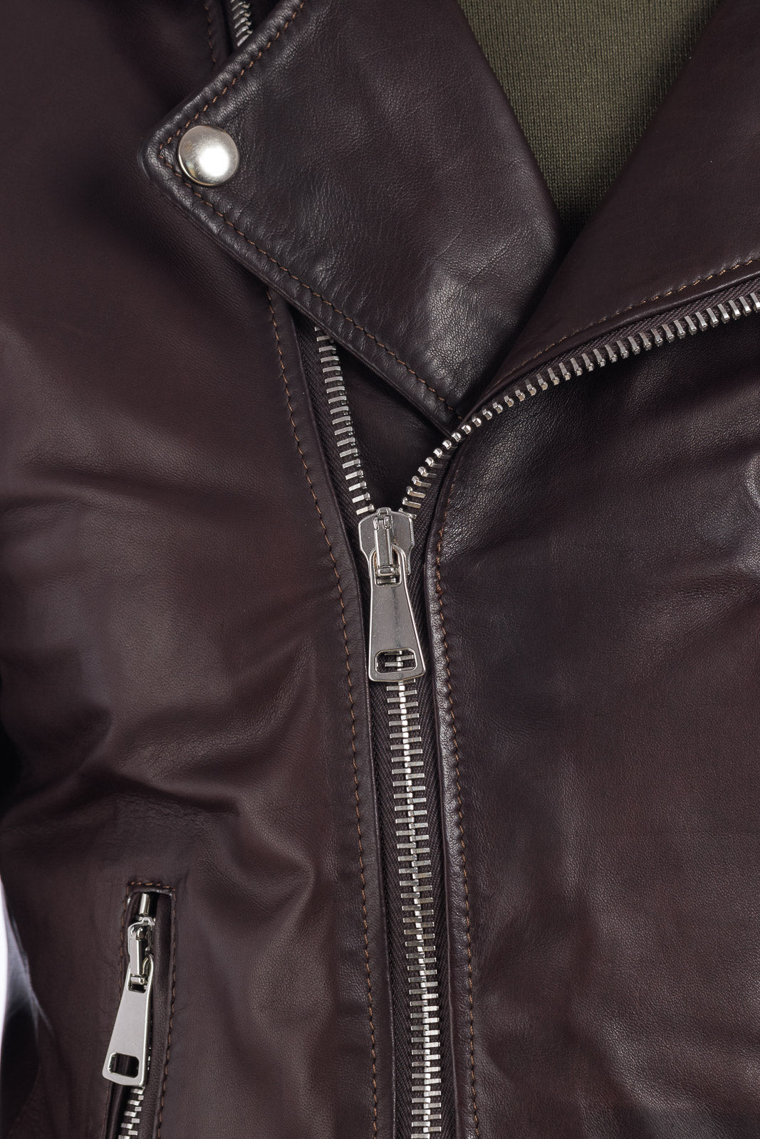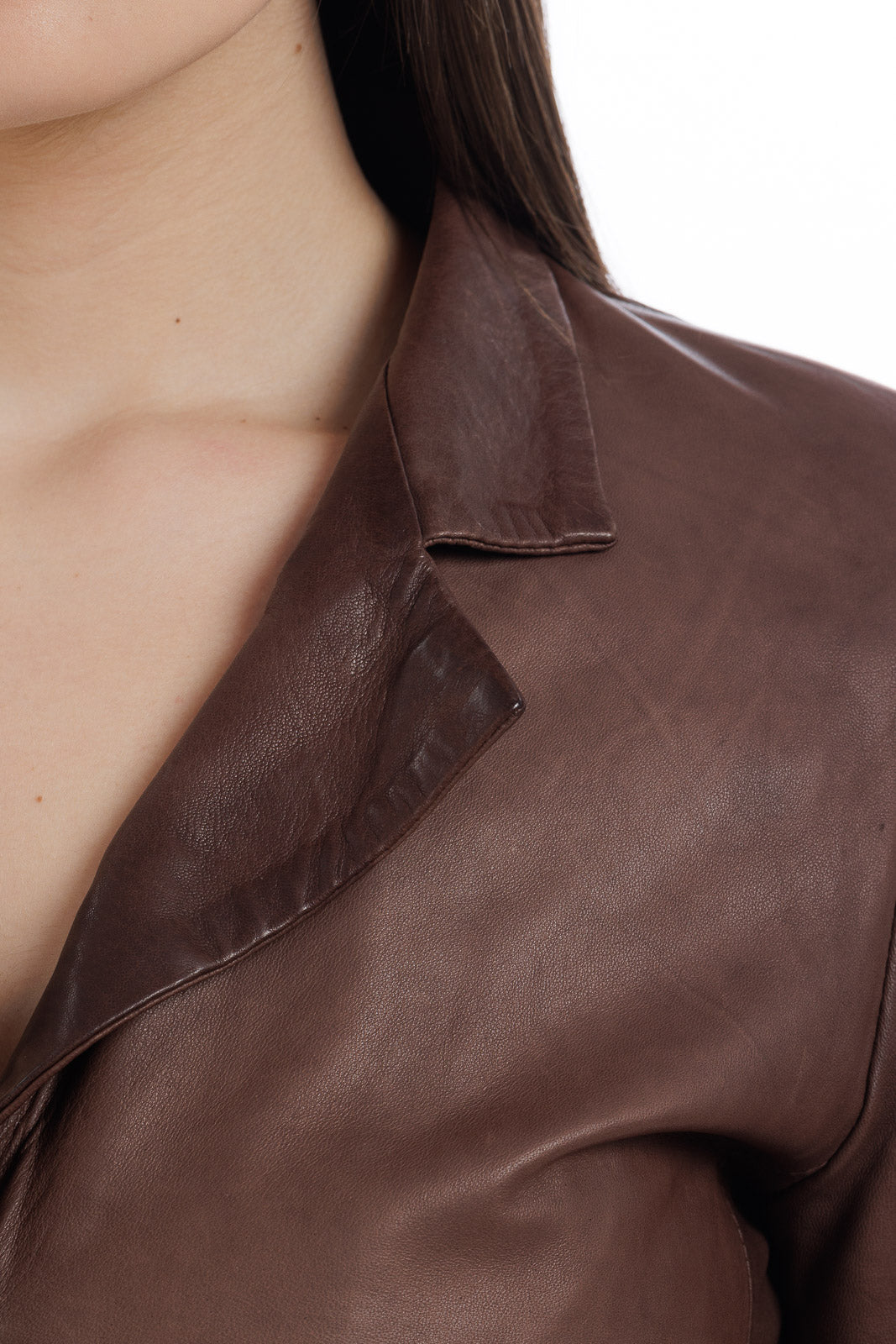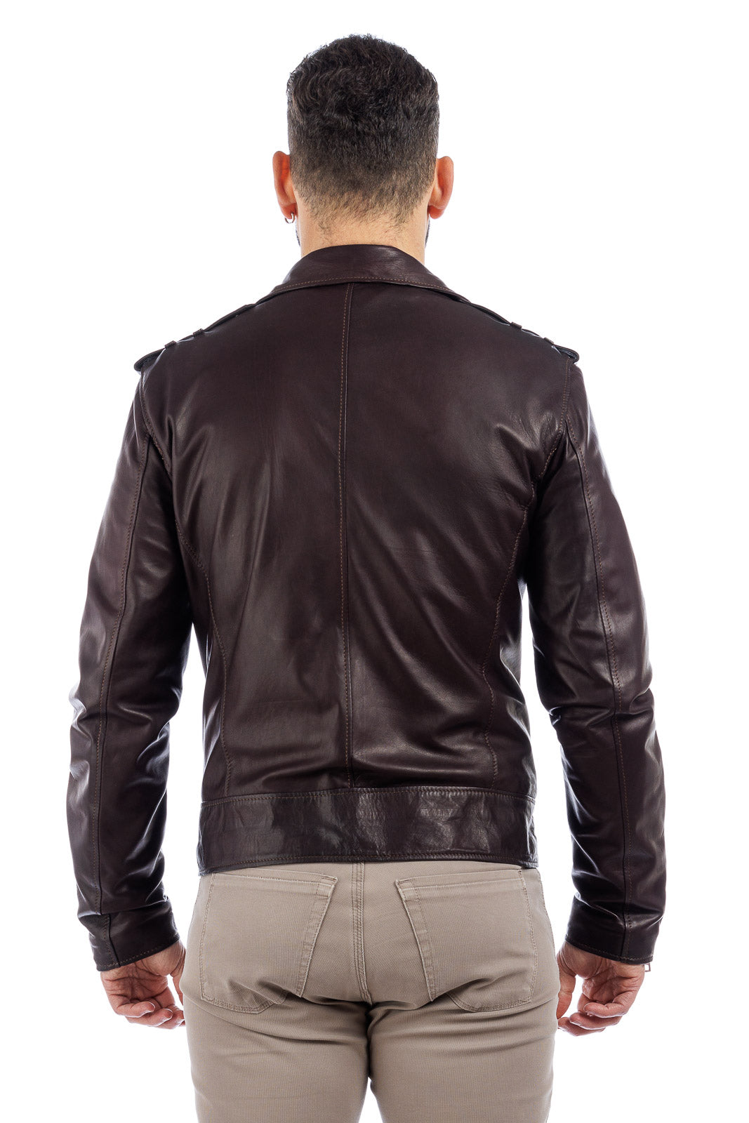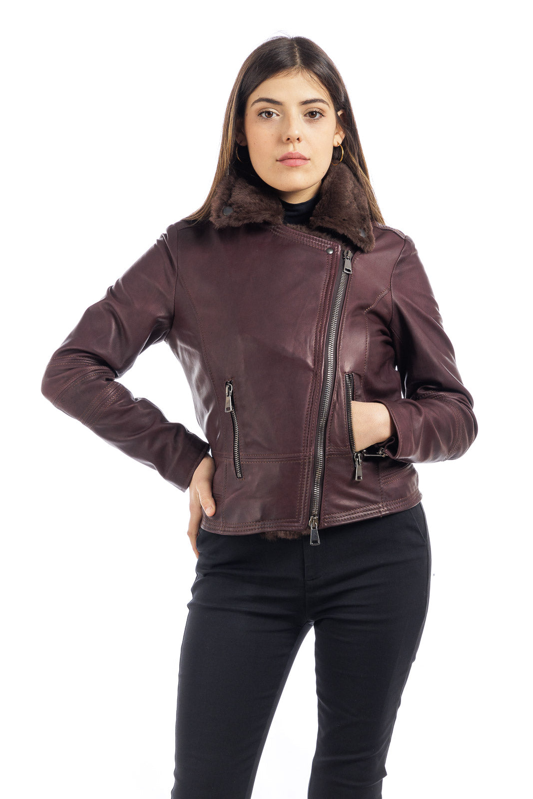Cappottino in vero montone marrone con pelo bianco e bottoni