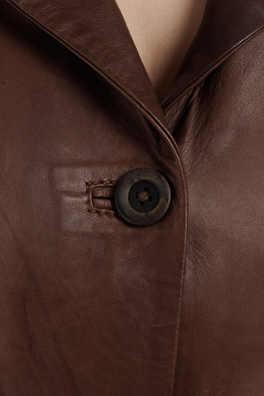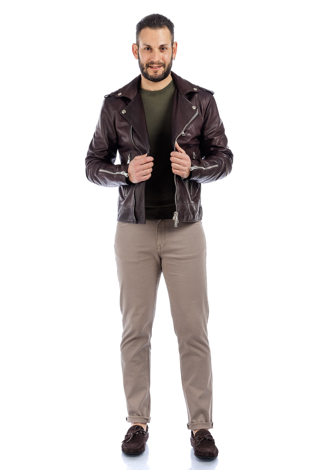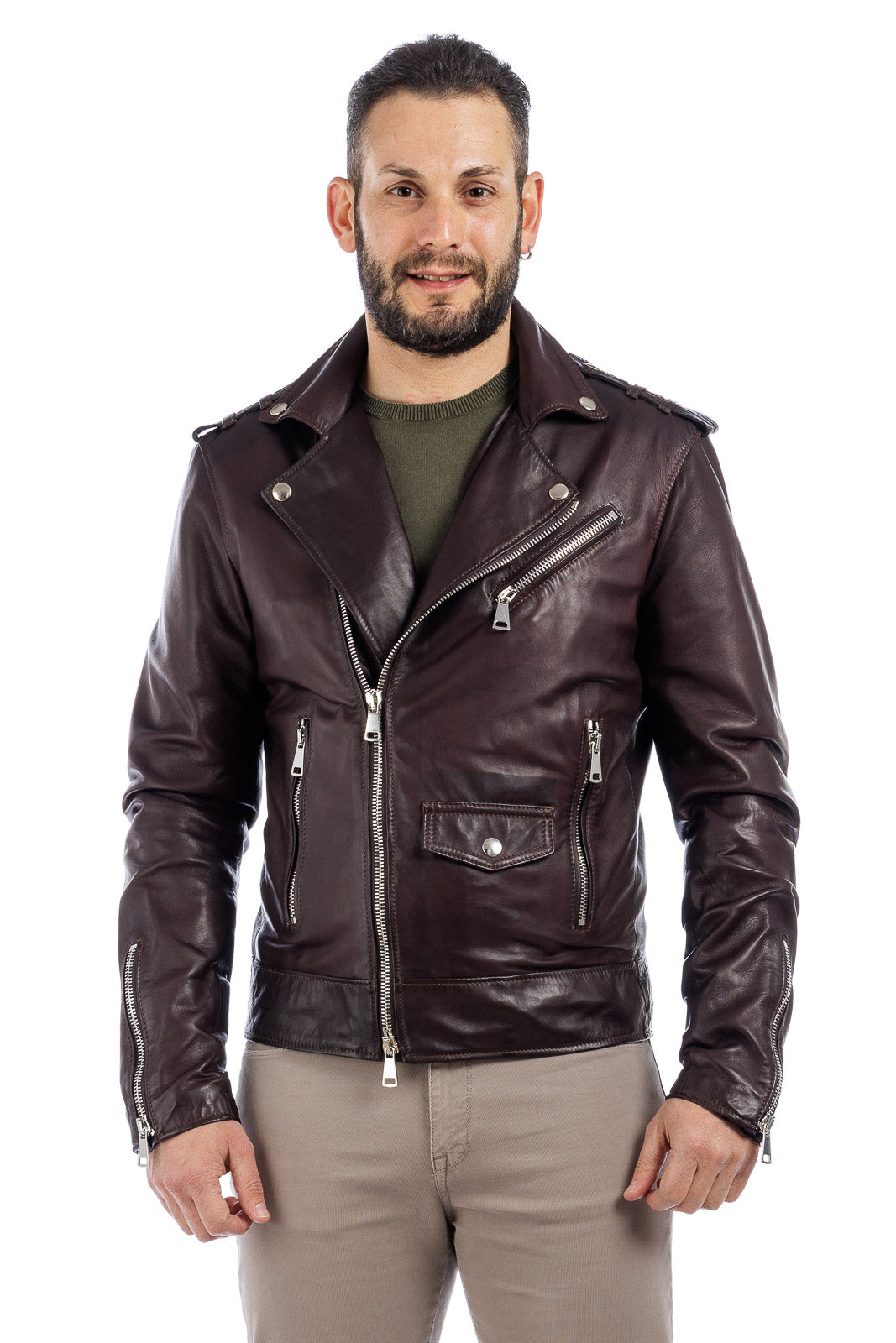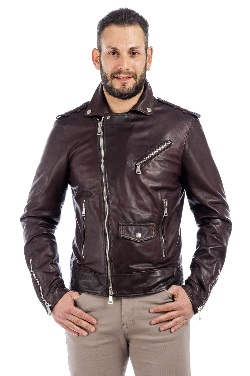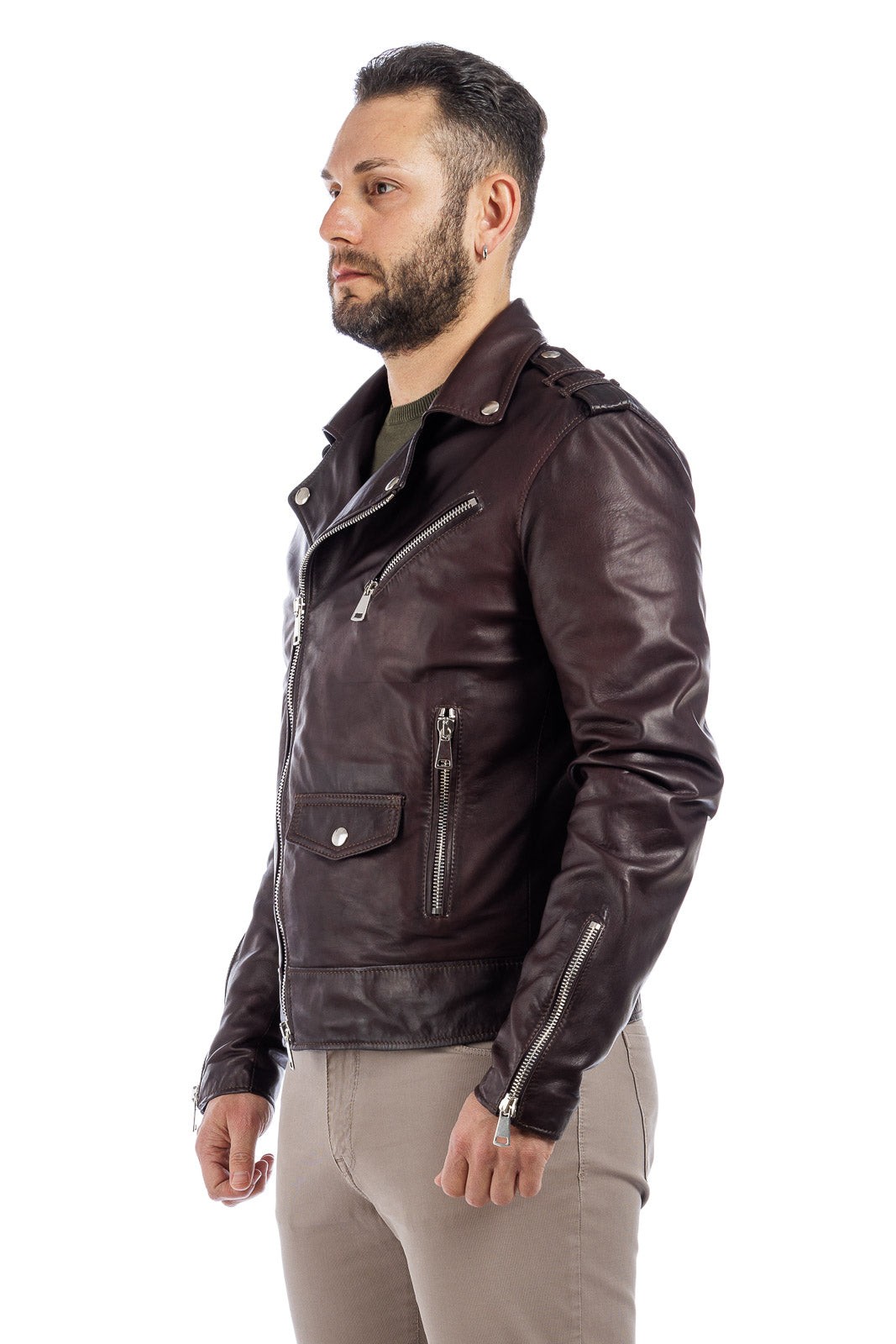 Cappottino in vero montone marrone con pelo bianco e bottoni