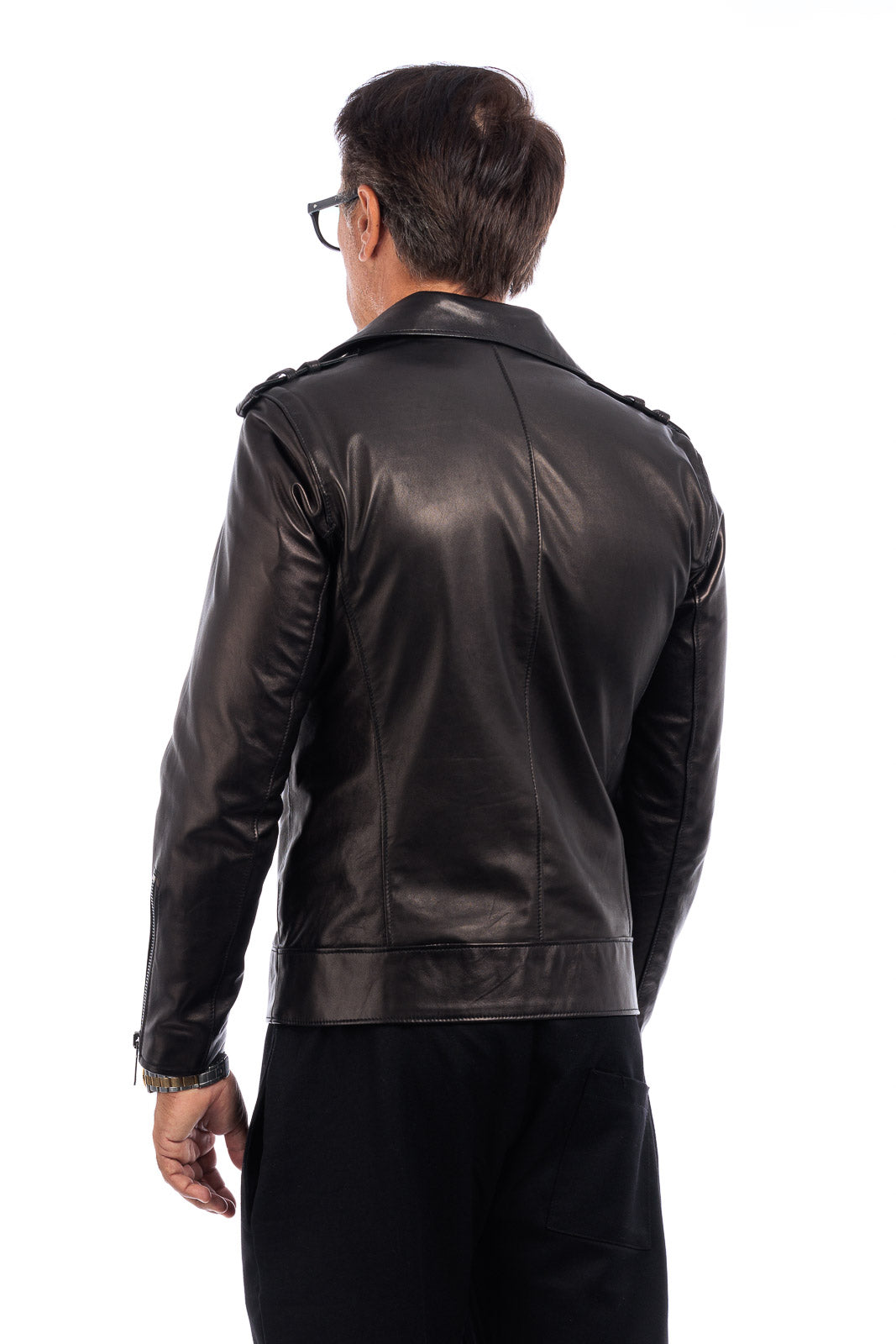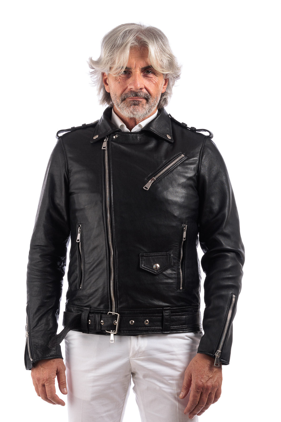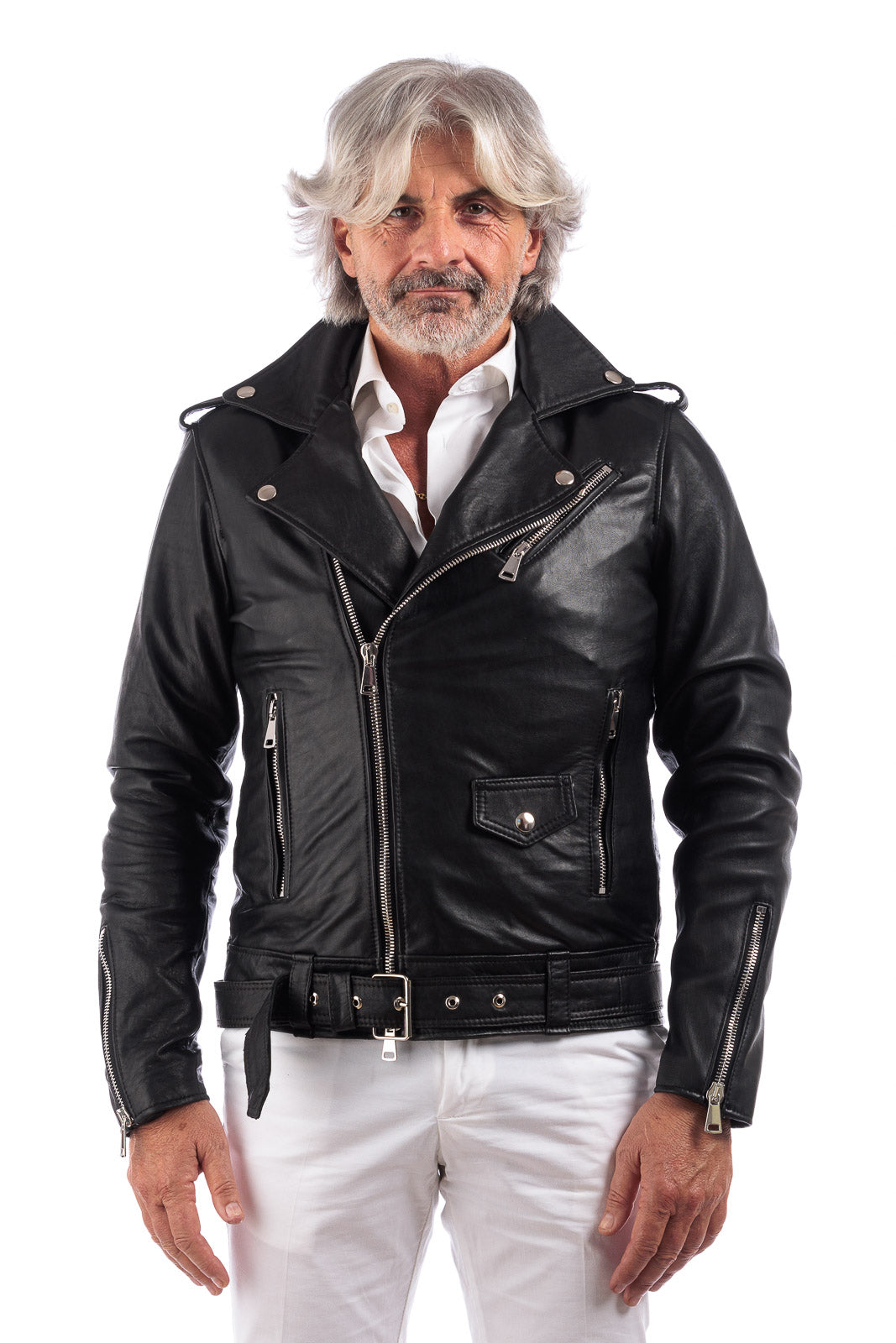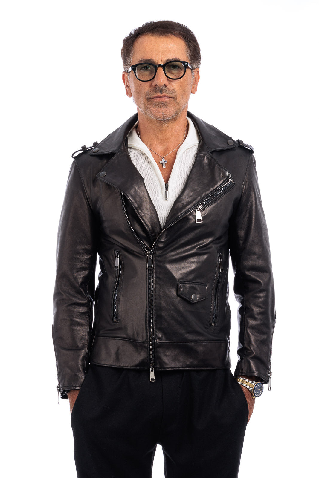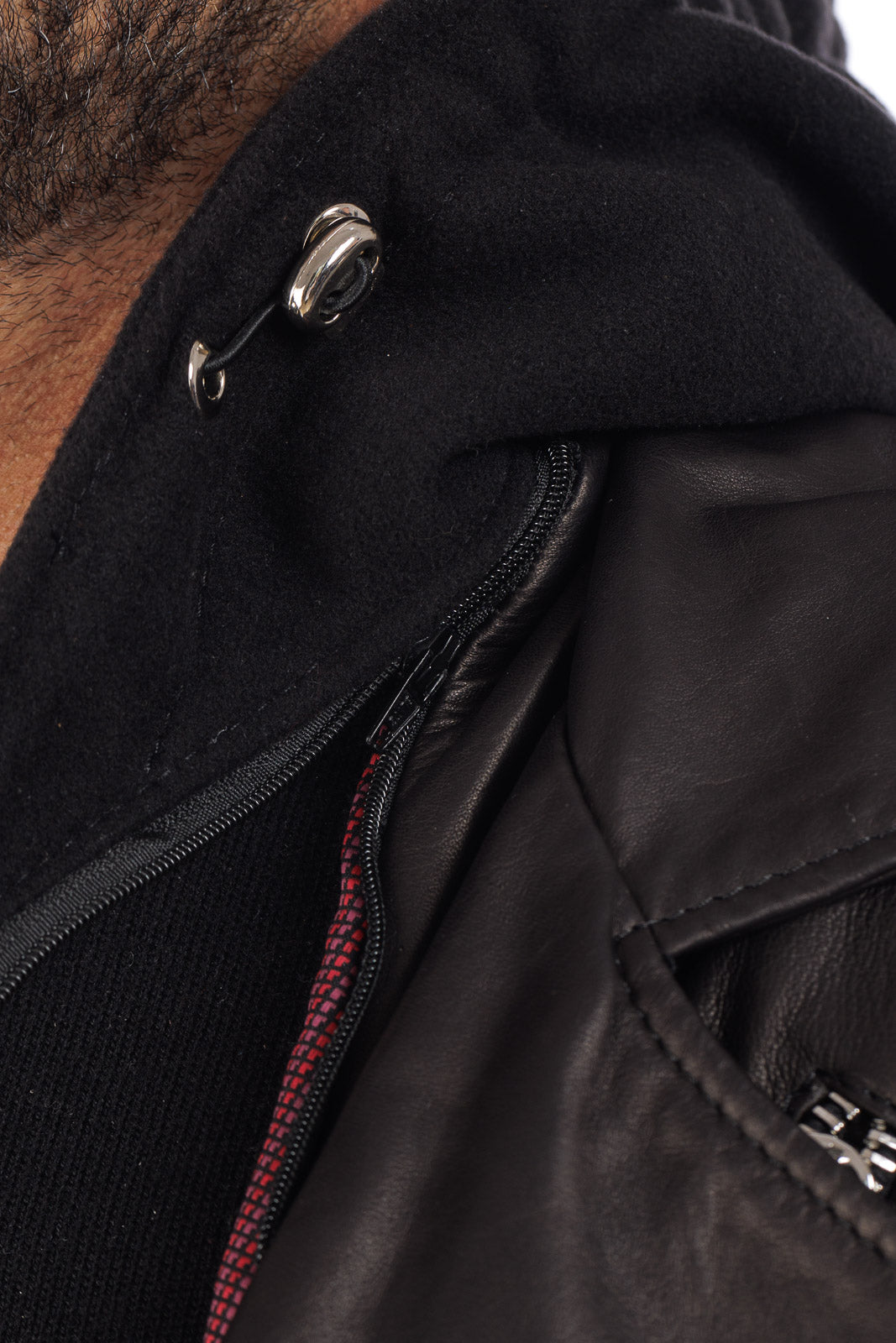 Cappottino in vero montone nero con pelo nero e cappuccio