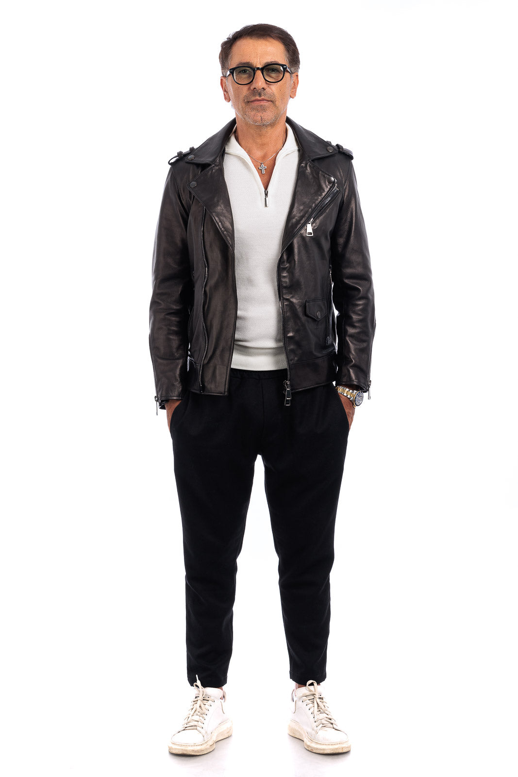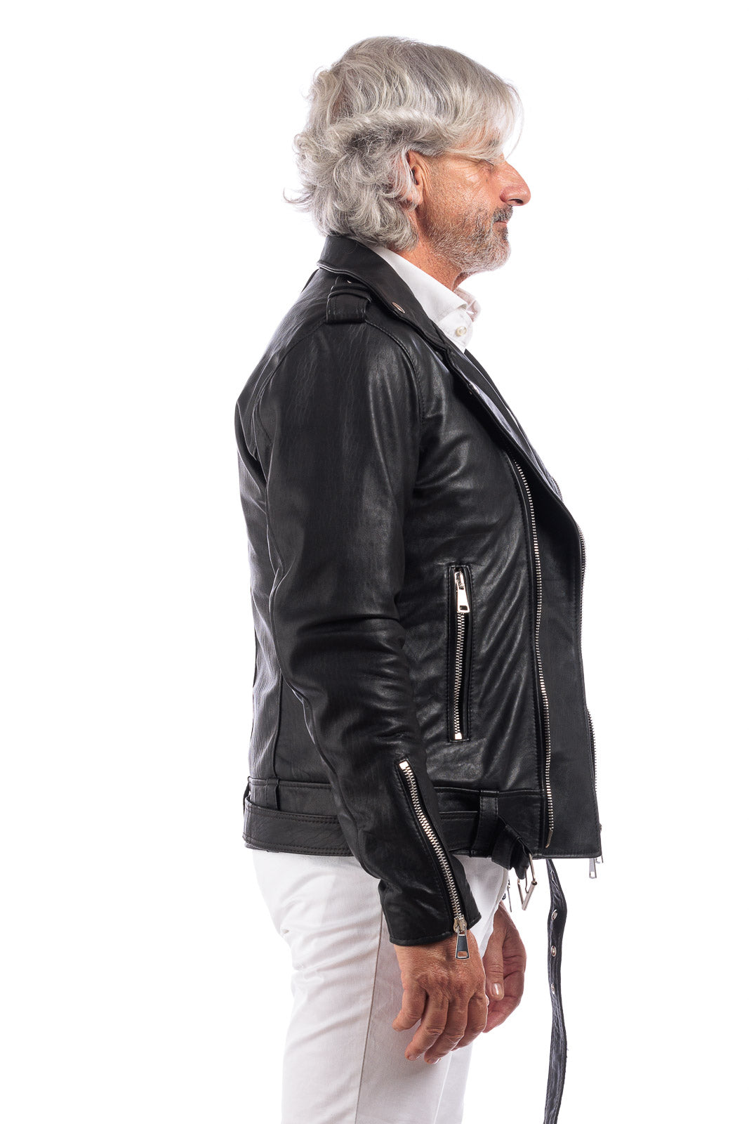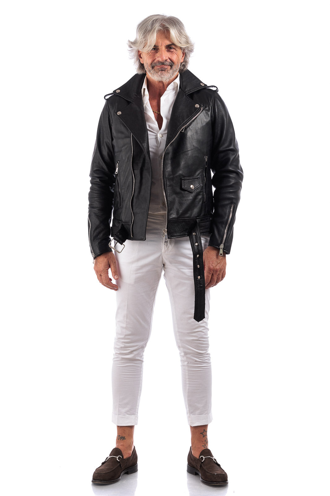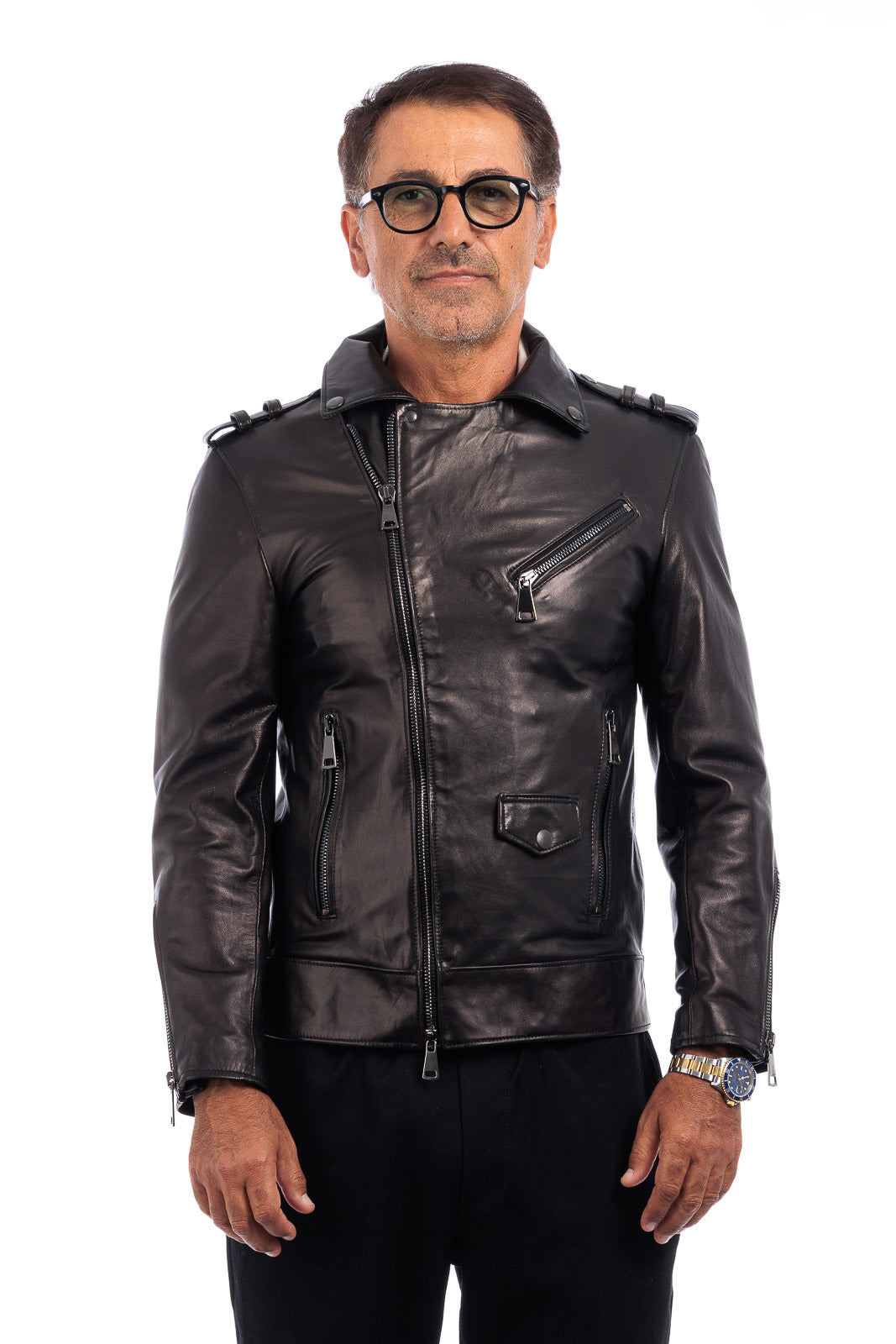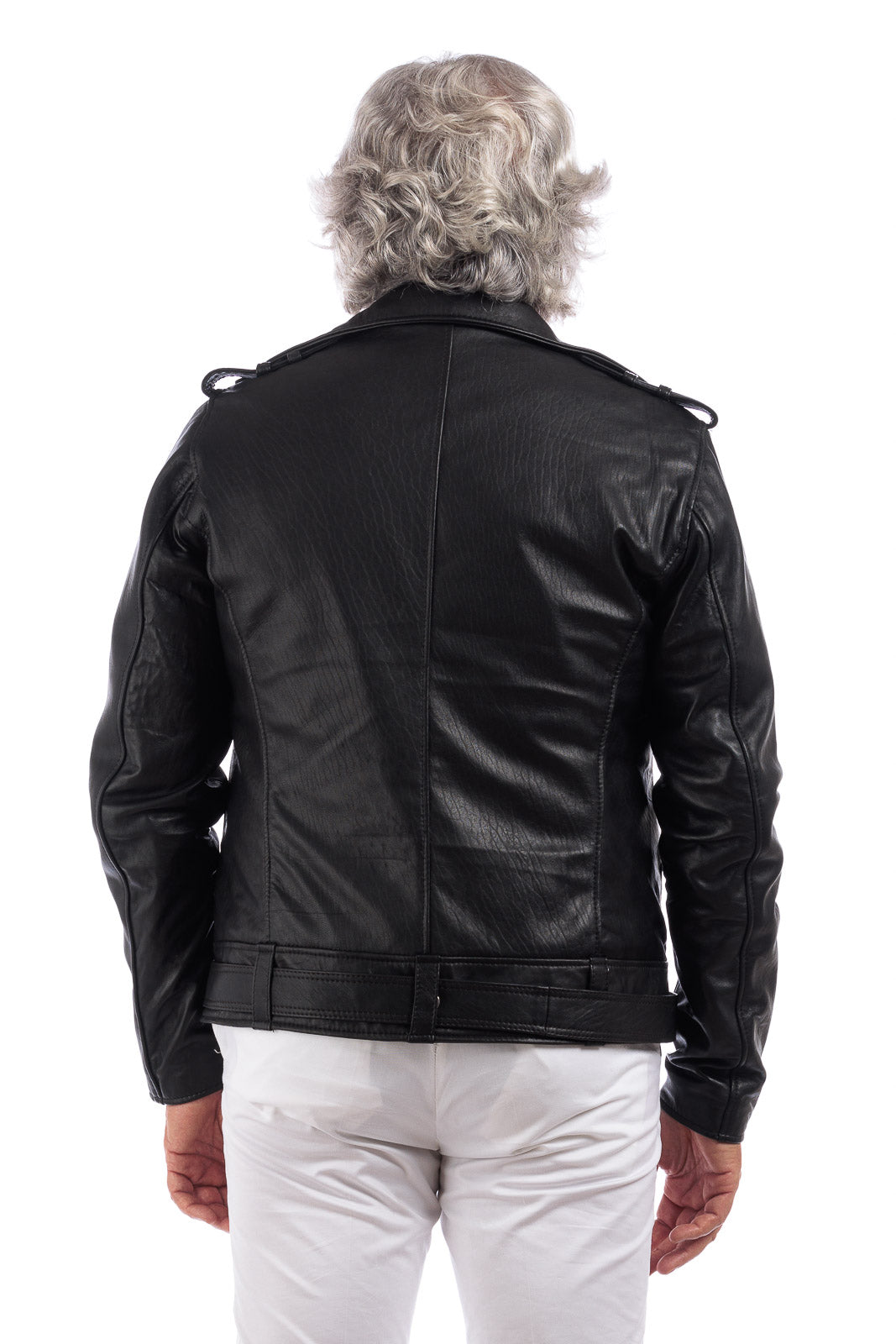 Cappottino in vero montone nero con pelo nero e cappuccio