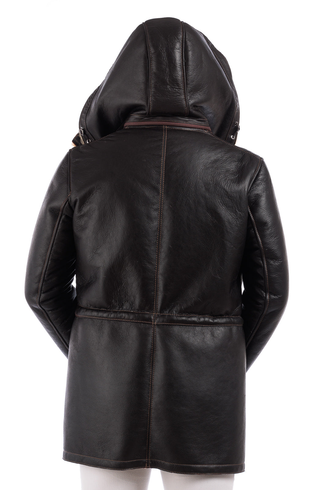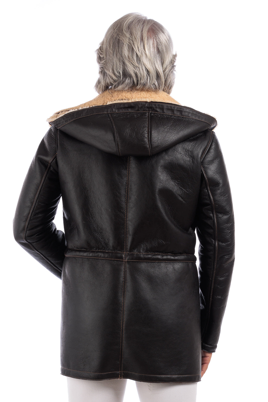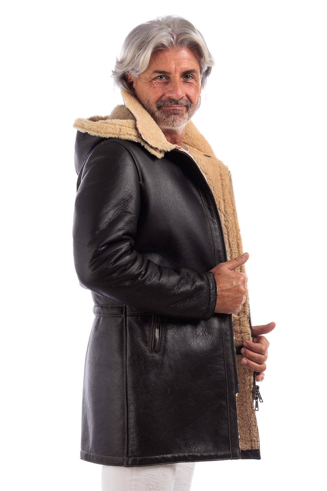 Cappottino in vero montone testa di moro con pelo beige e cappuccio