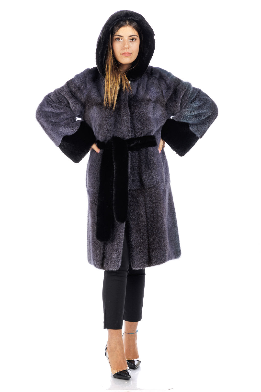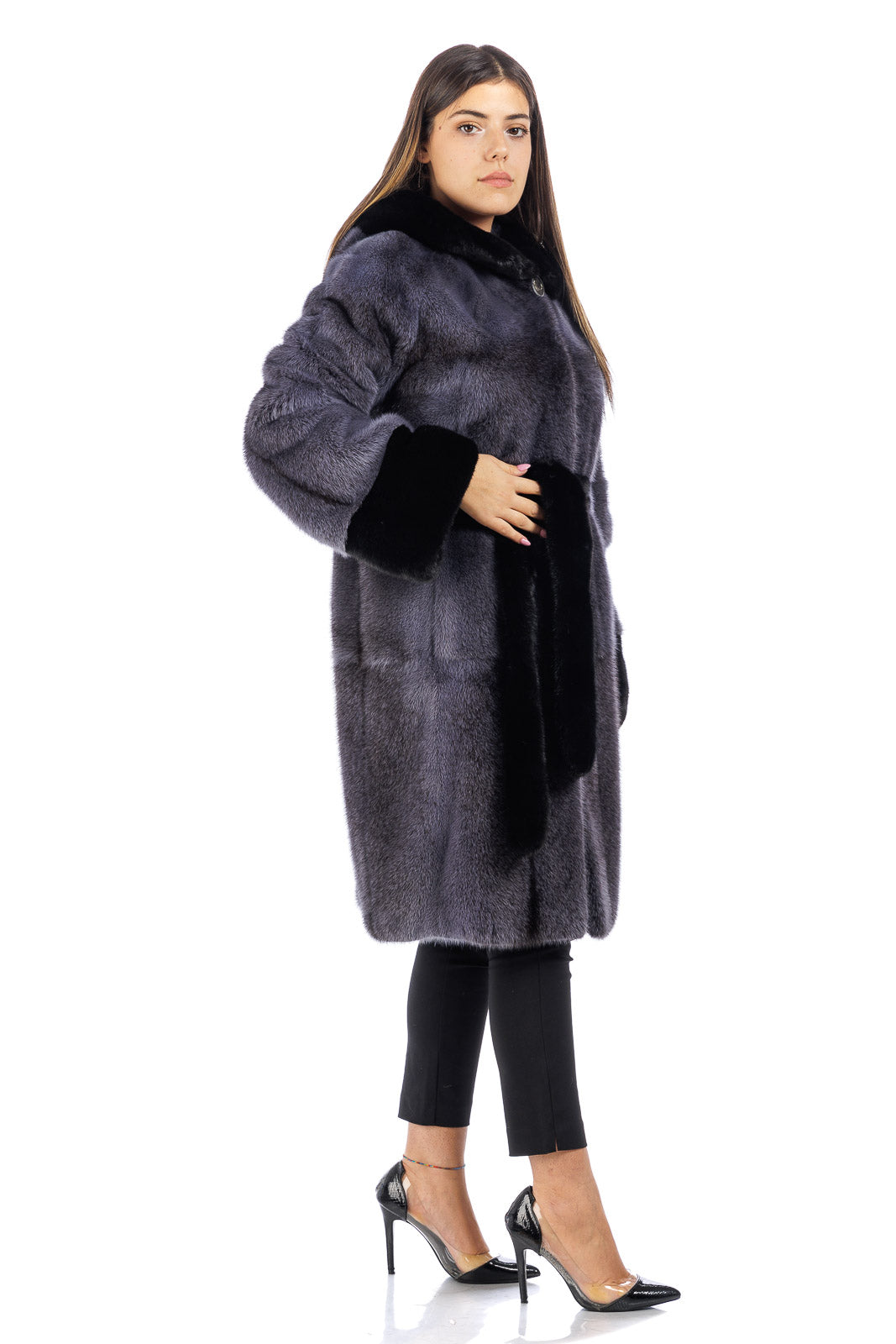 Cappotto di pelliccia di visone demi buff lungo con cappuccio