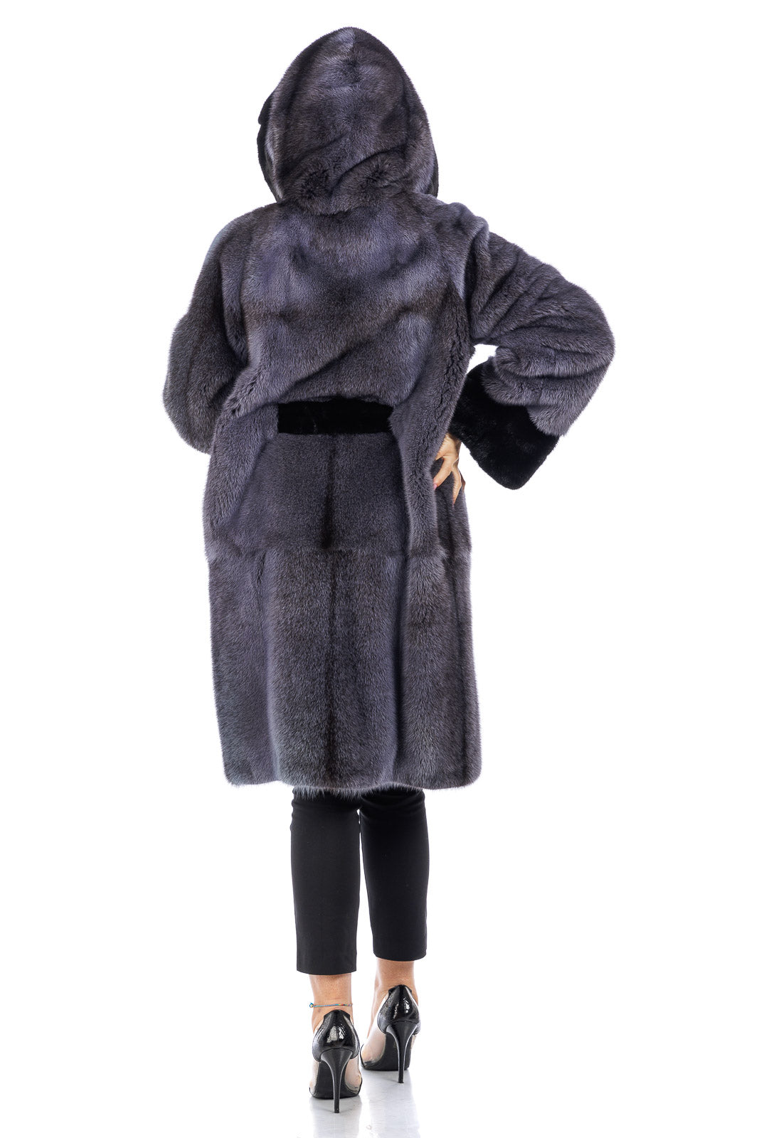 Cappotto di pelliccia di visone blackglama lungo con cappuccio